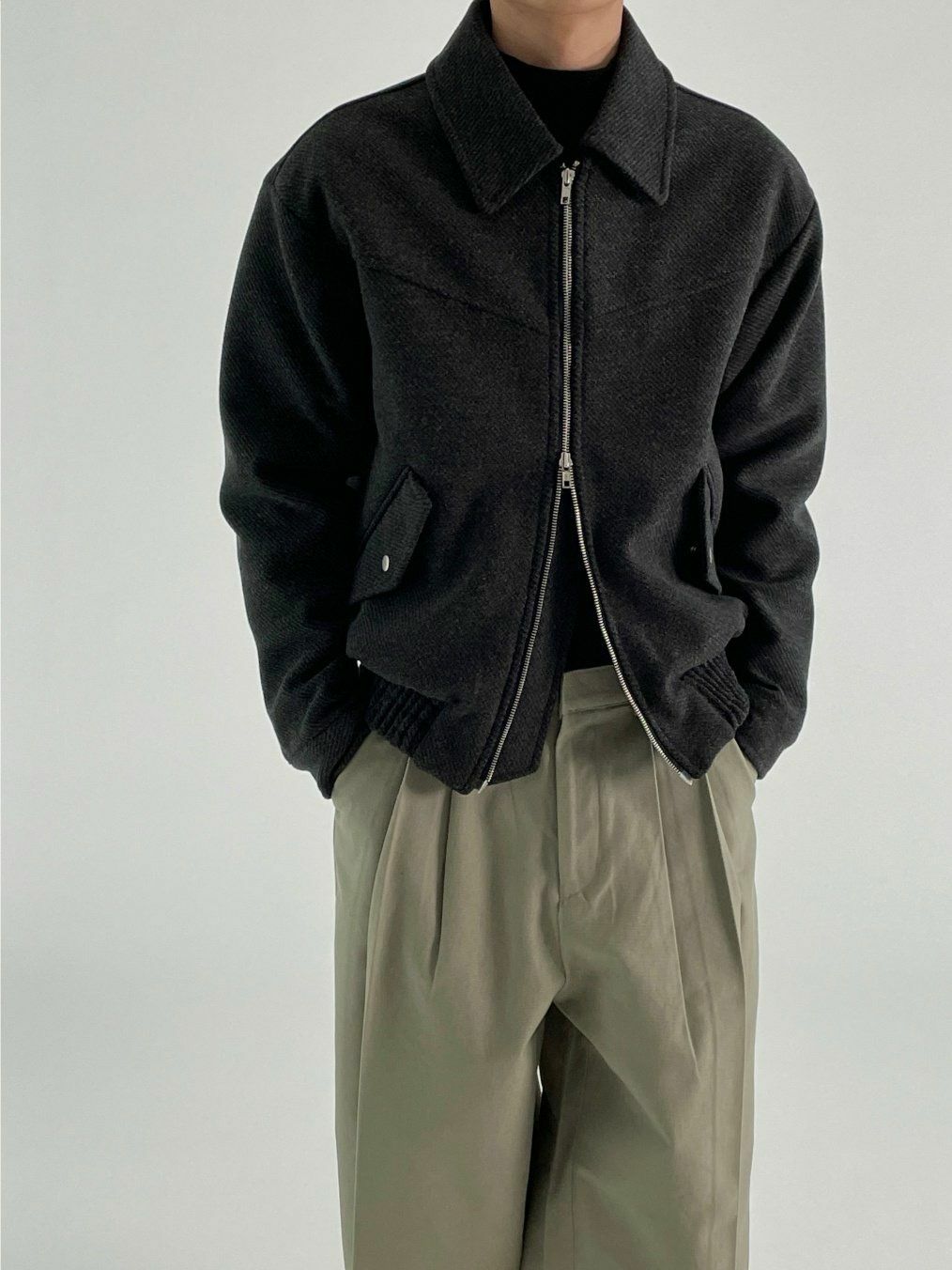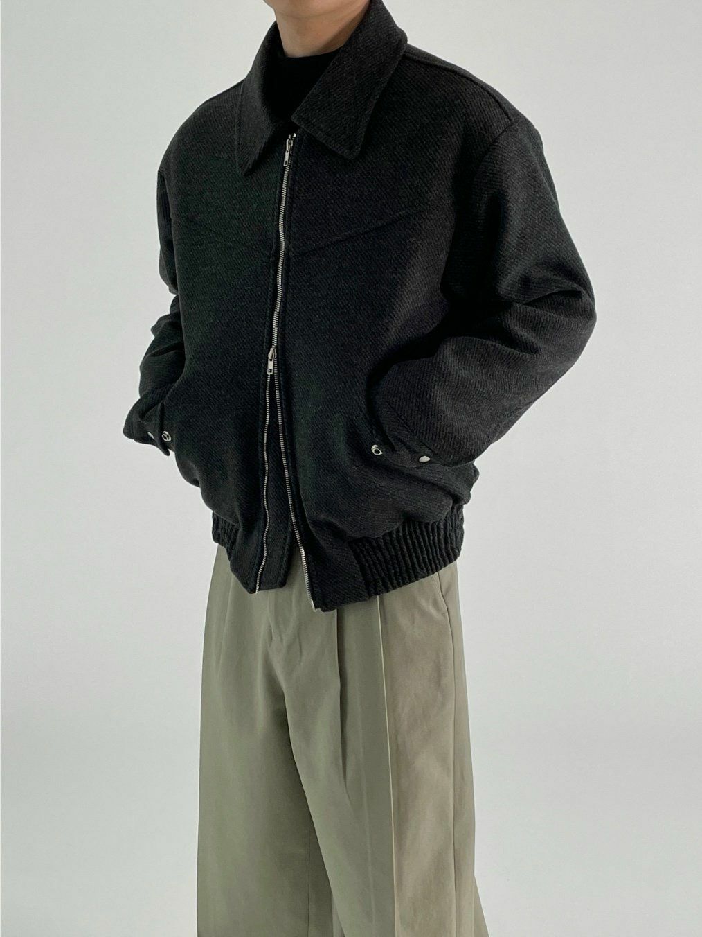 淨色反領拉鍊外套(薄夾棉) RUN-019JK