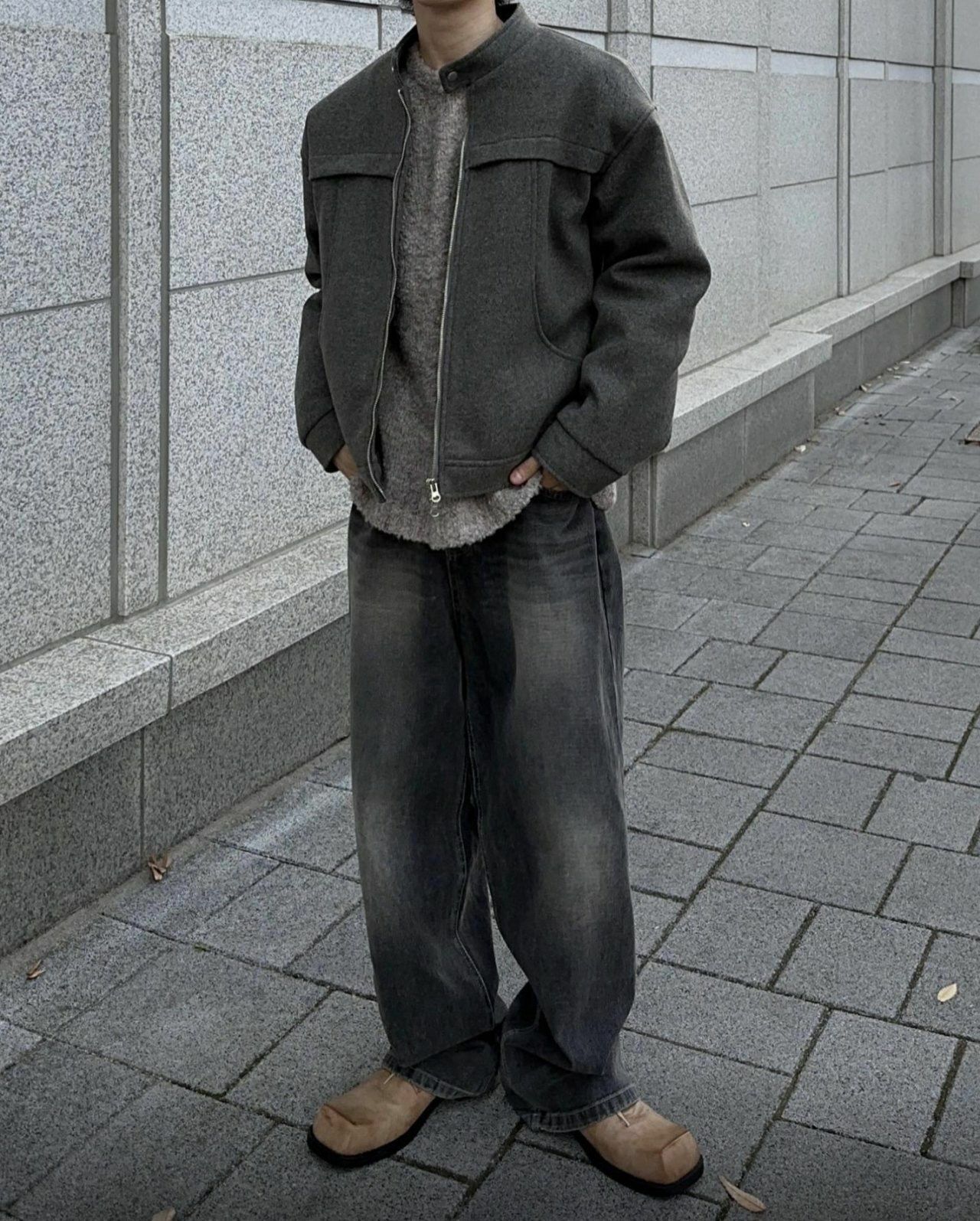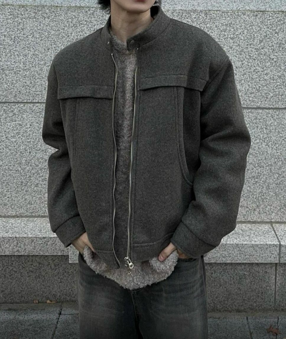 淨色企領拉鍊外套(薄夾棉) RUN-024JK