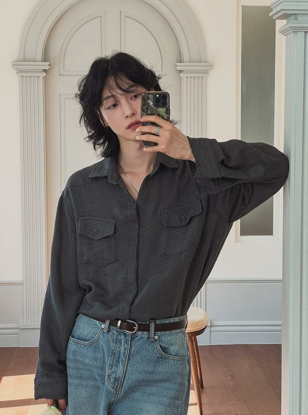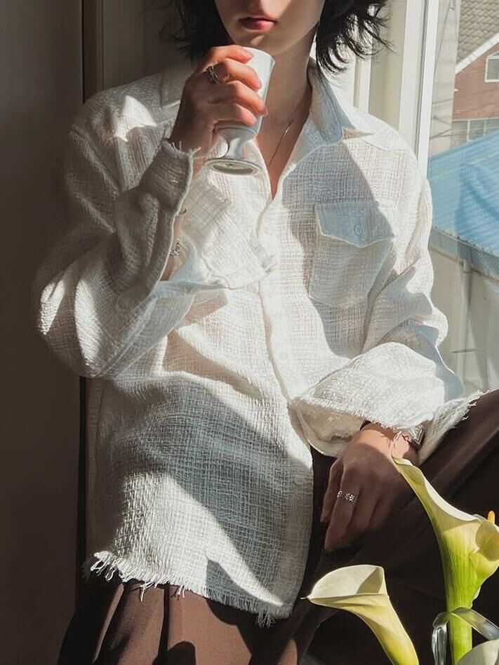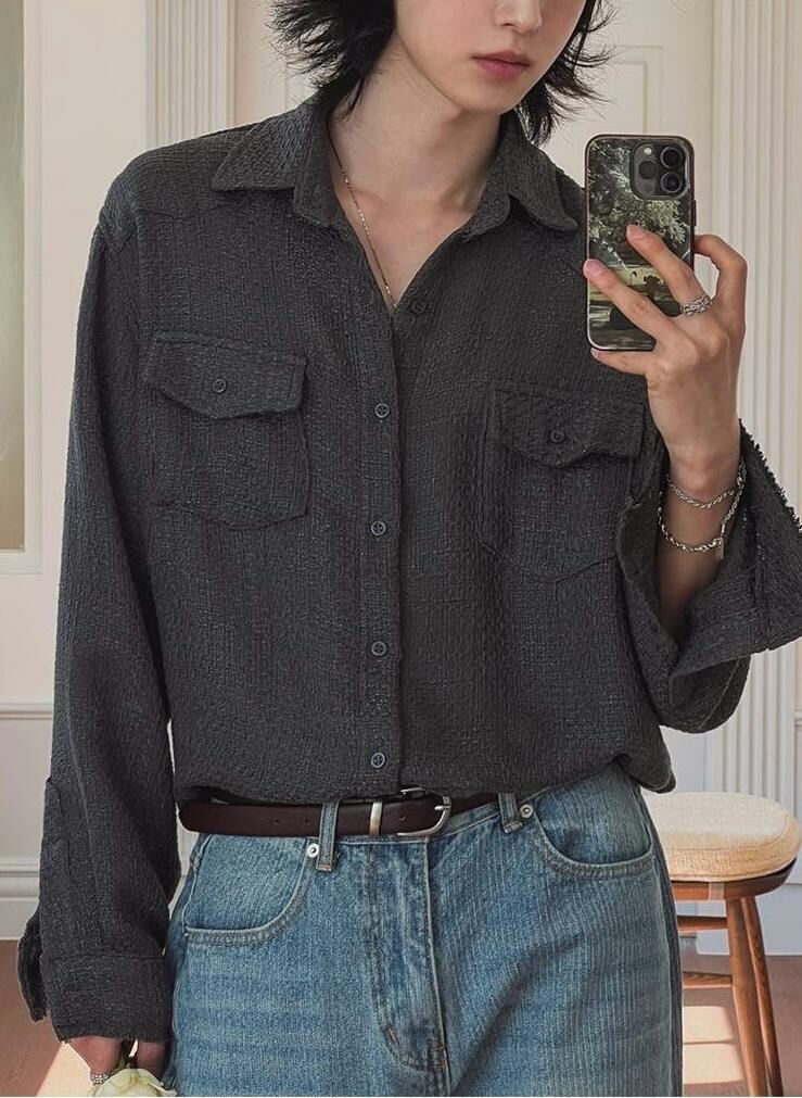 淨色暗紋長袖恤衫 S2306