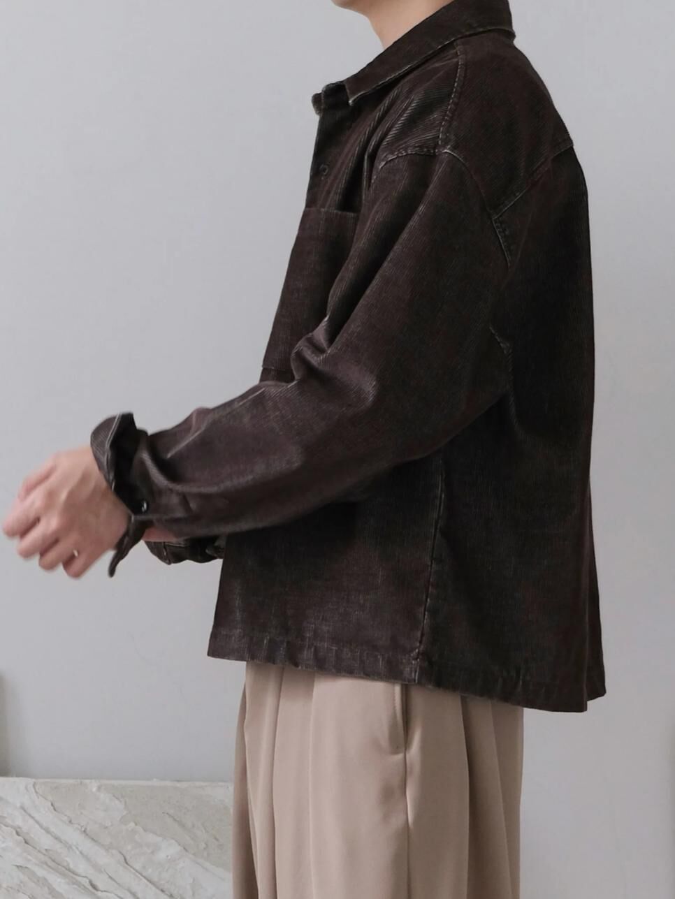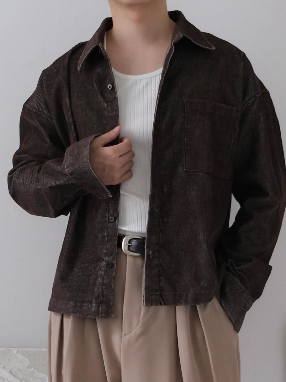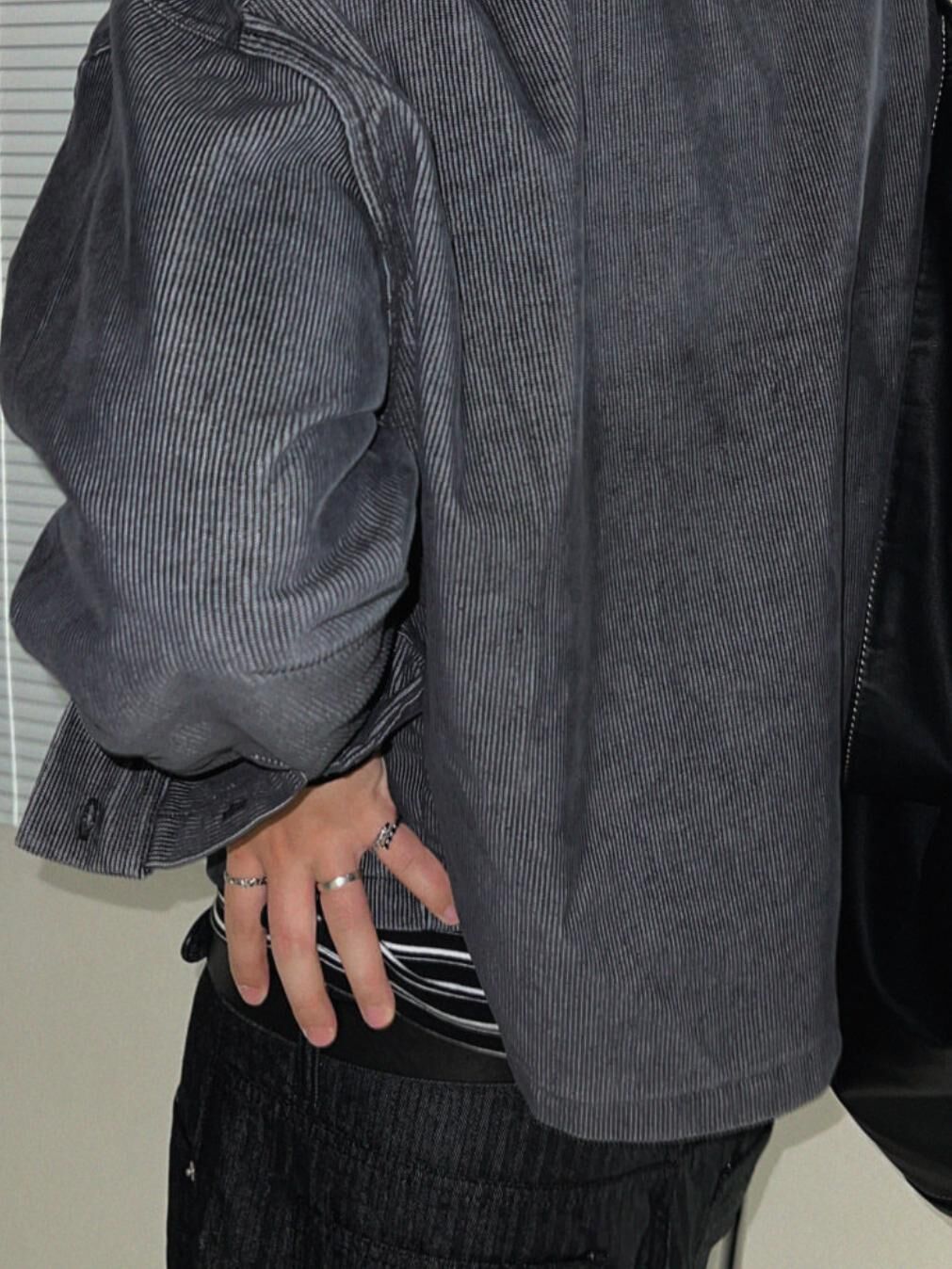 淨色暗直紋長袖恤衫 S2463