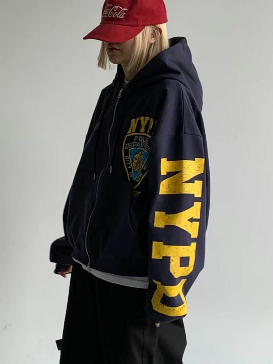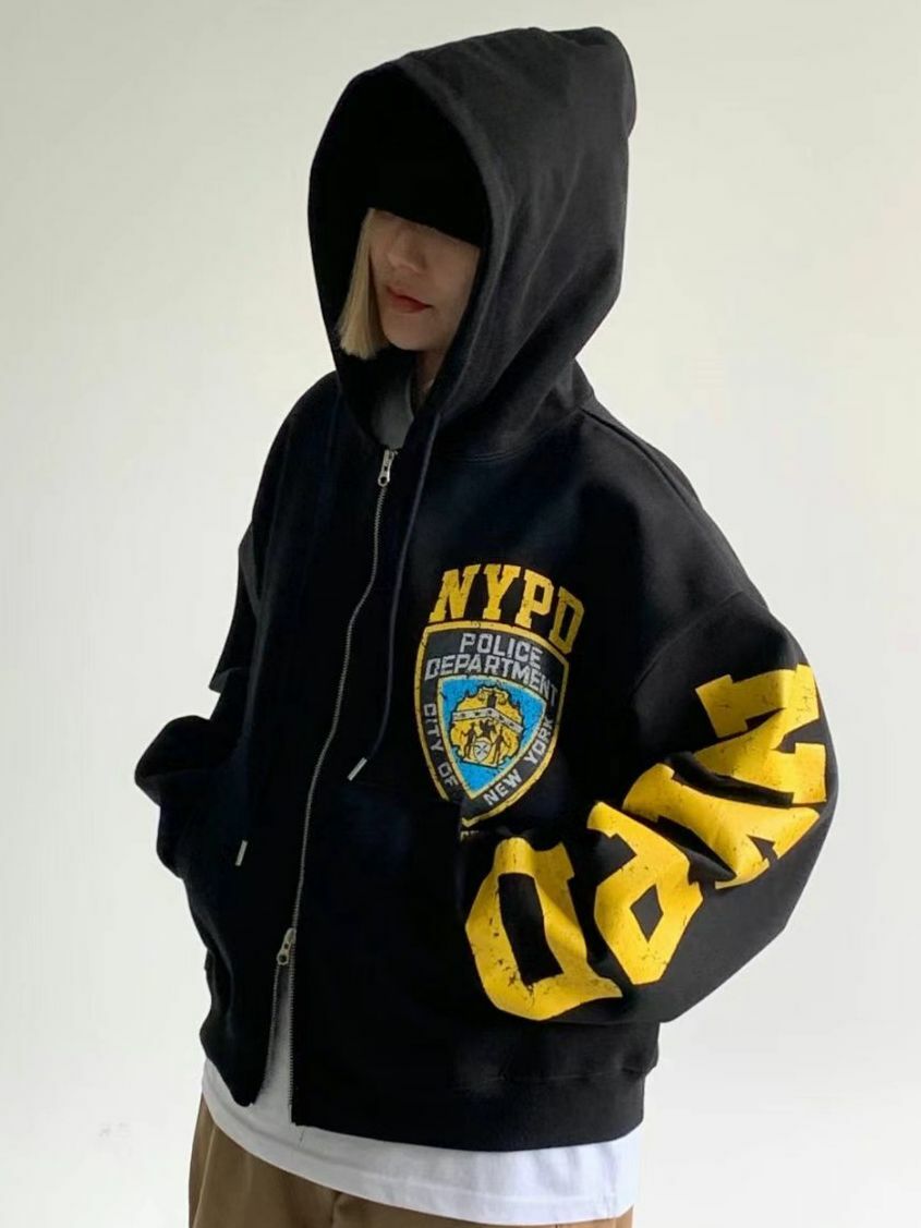 英文字圖案連帽拉鍊外套(薄抓毛底) SCOPE-079JK