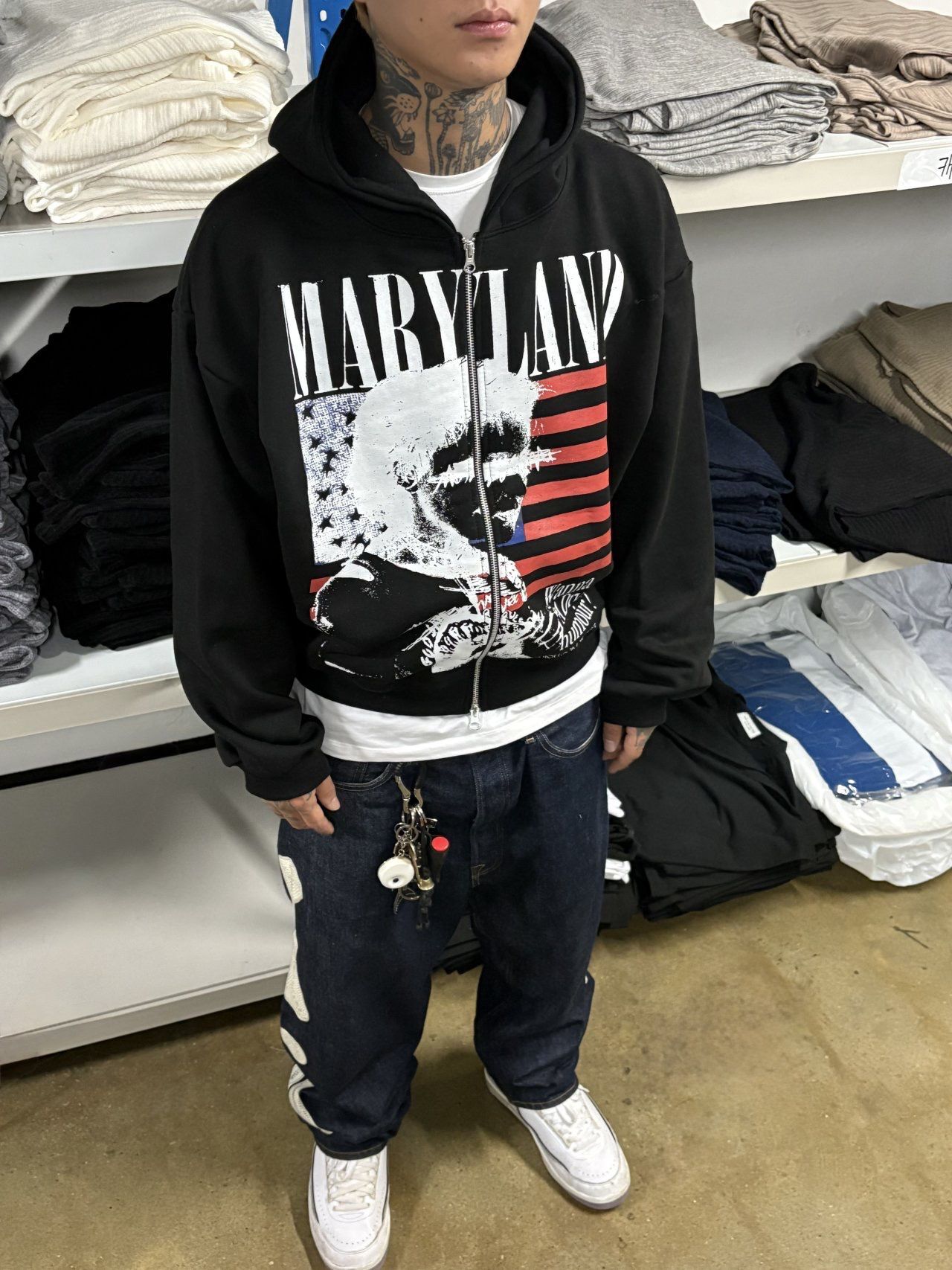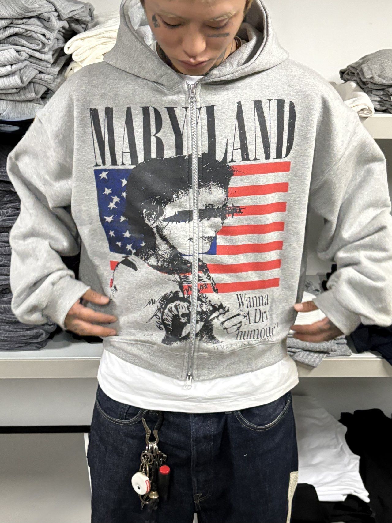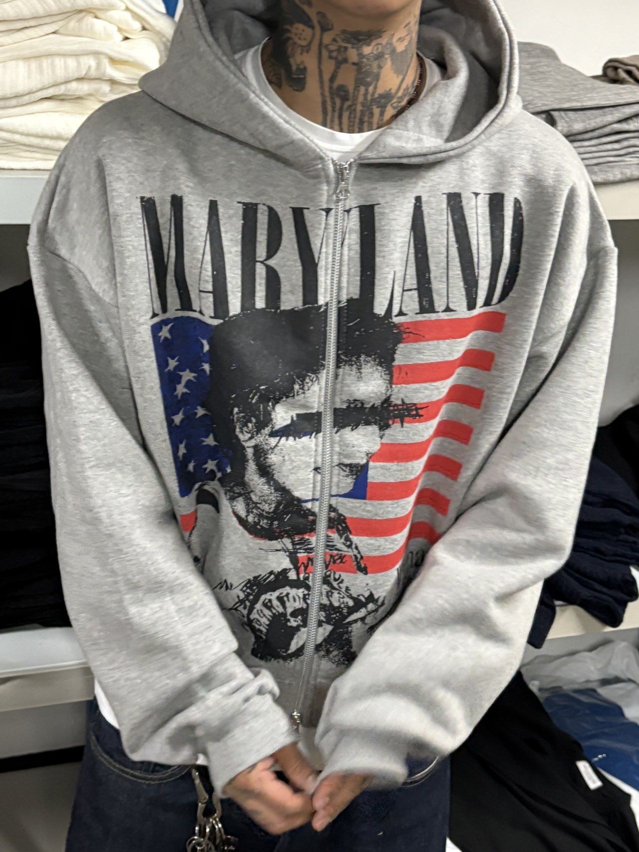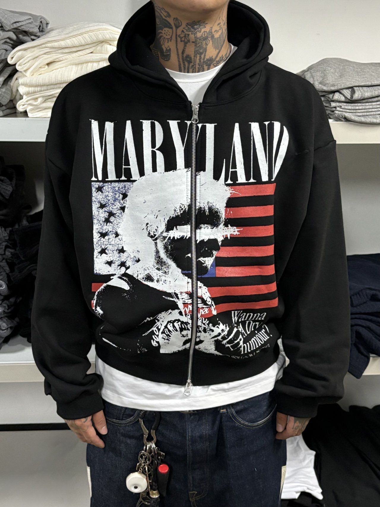 英文字圖案連帽拉鍊Boxy外套 SCOPE-127JK