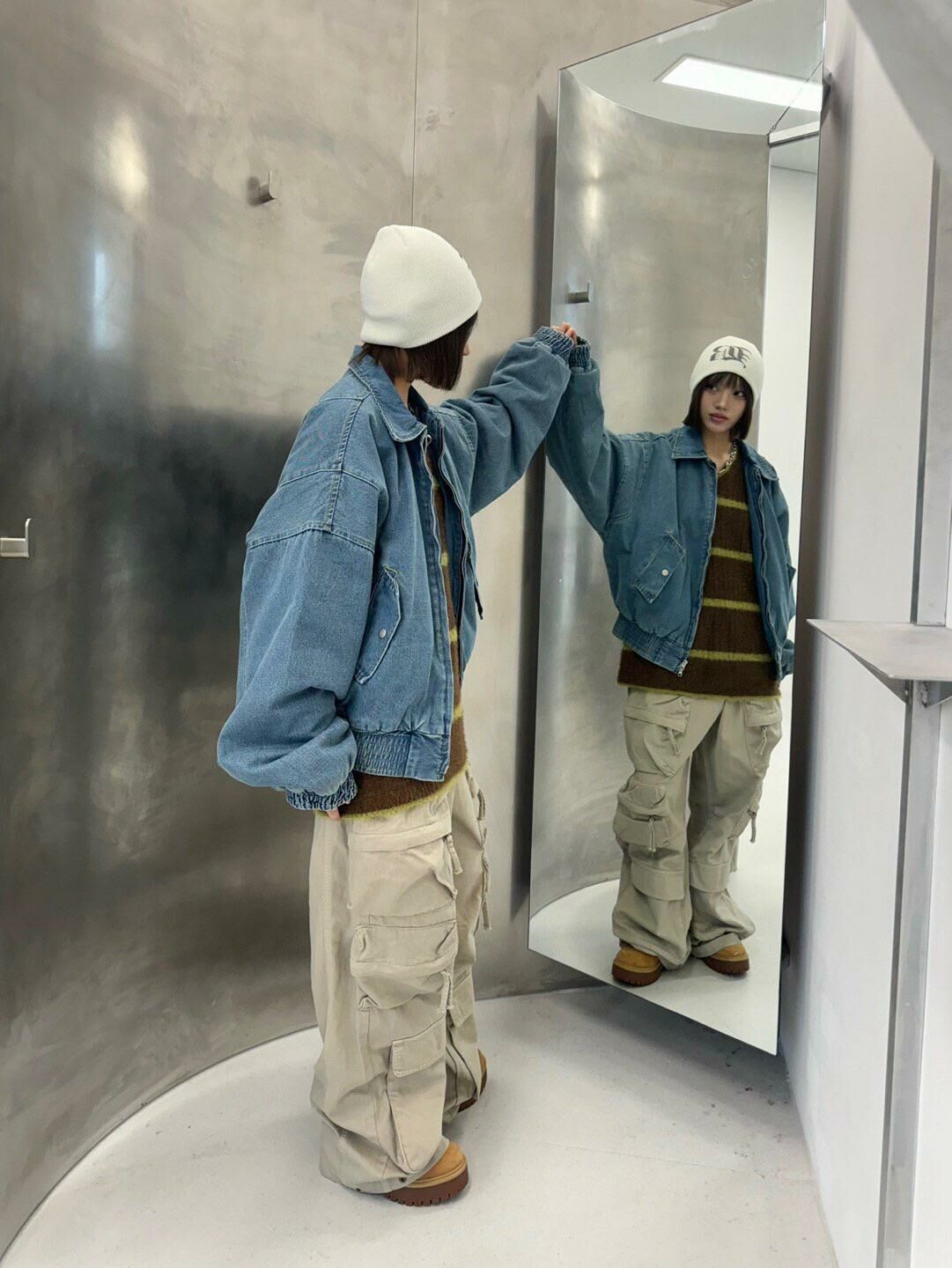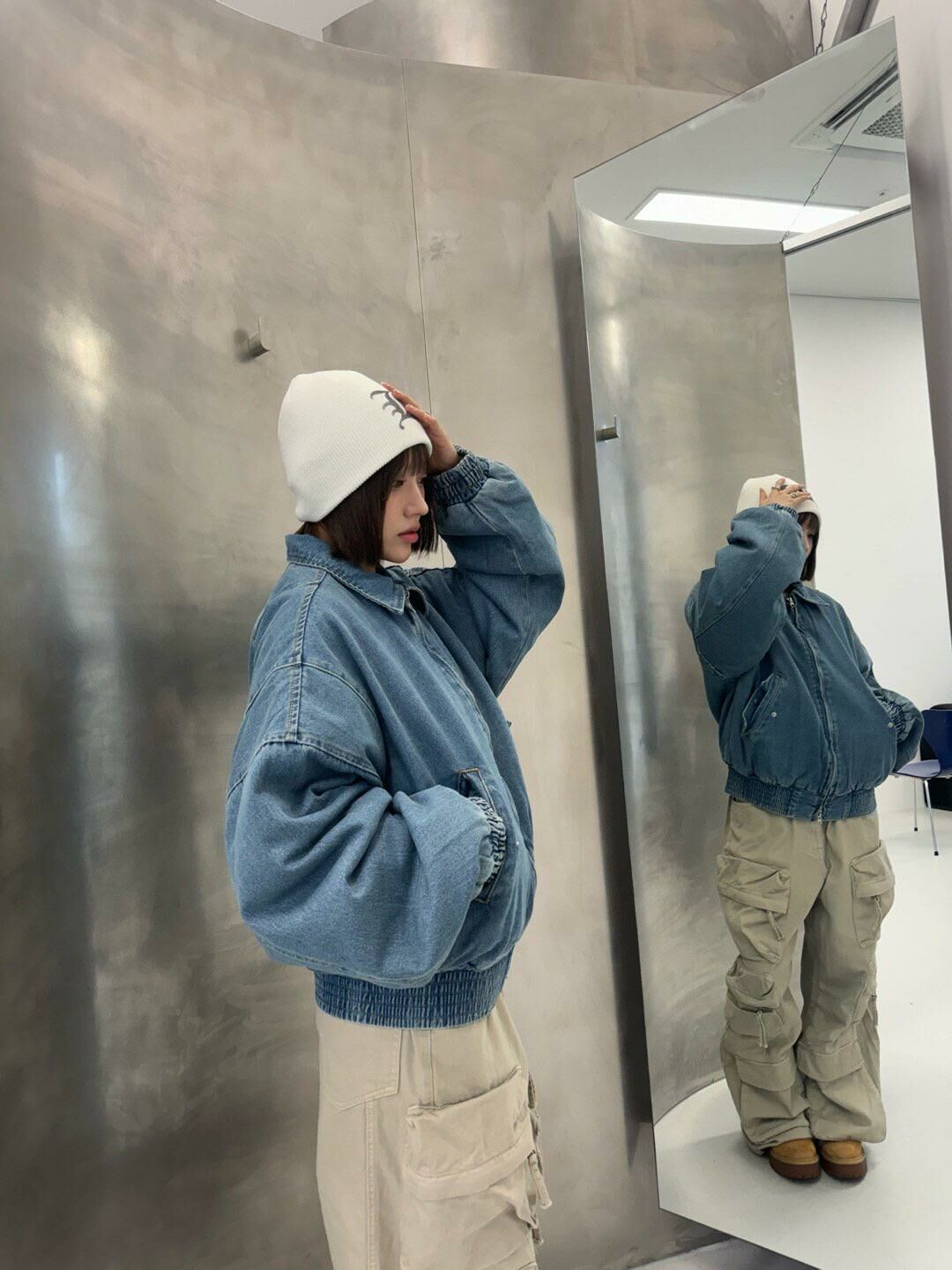 洗水反領拉鍊牛仔褸 Seeot-023JK