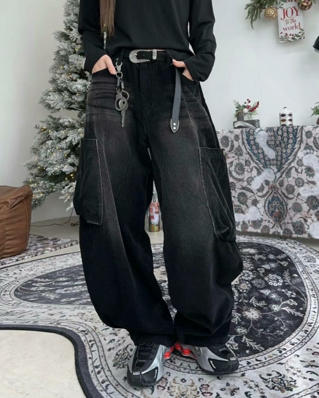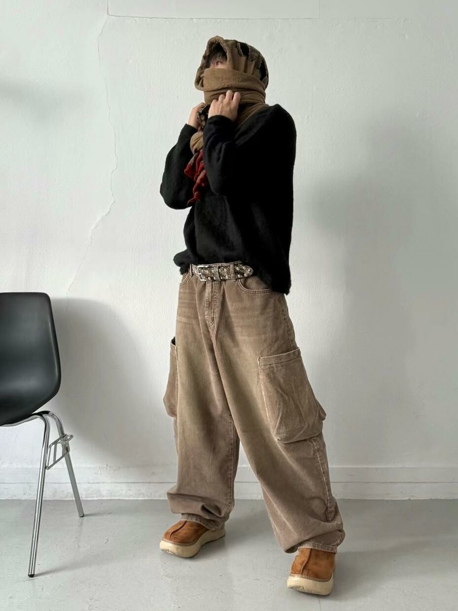 淨色燈心絨工裝鬆身褲 Seeot-028P