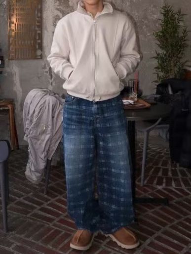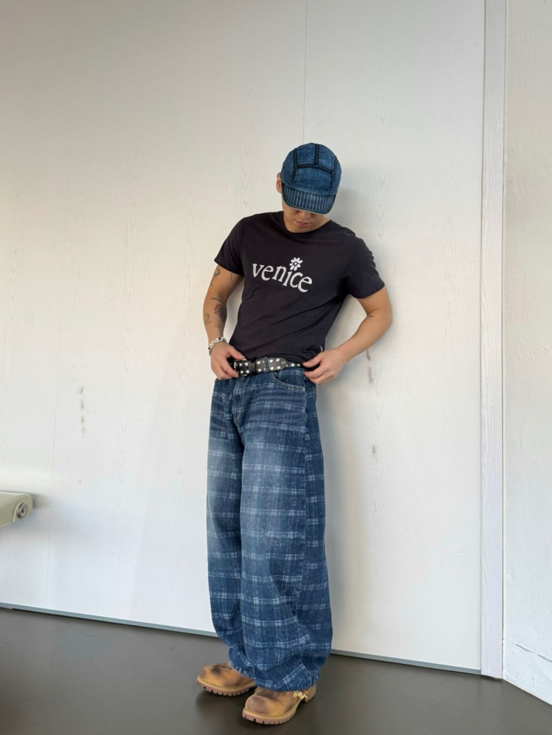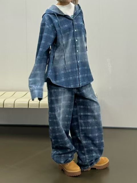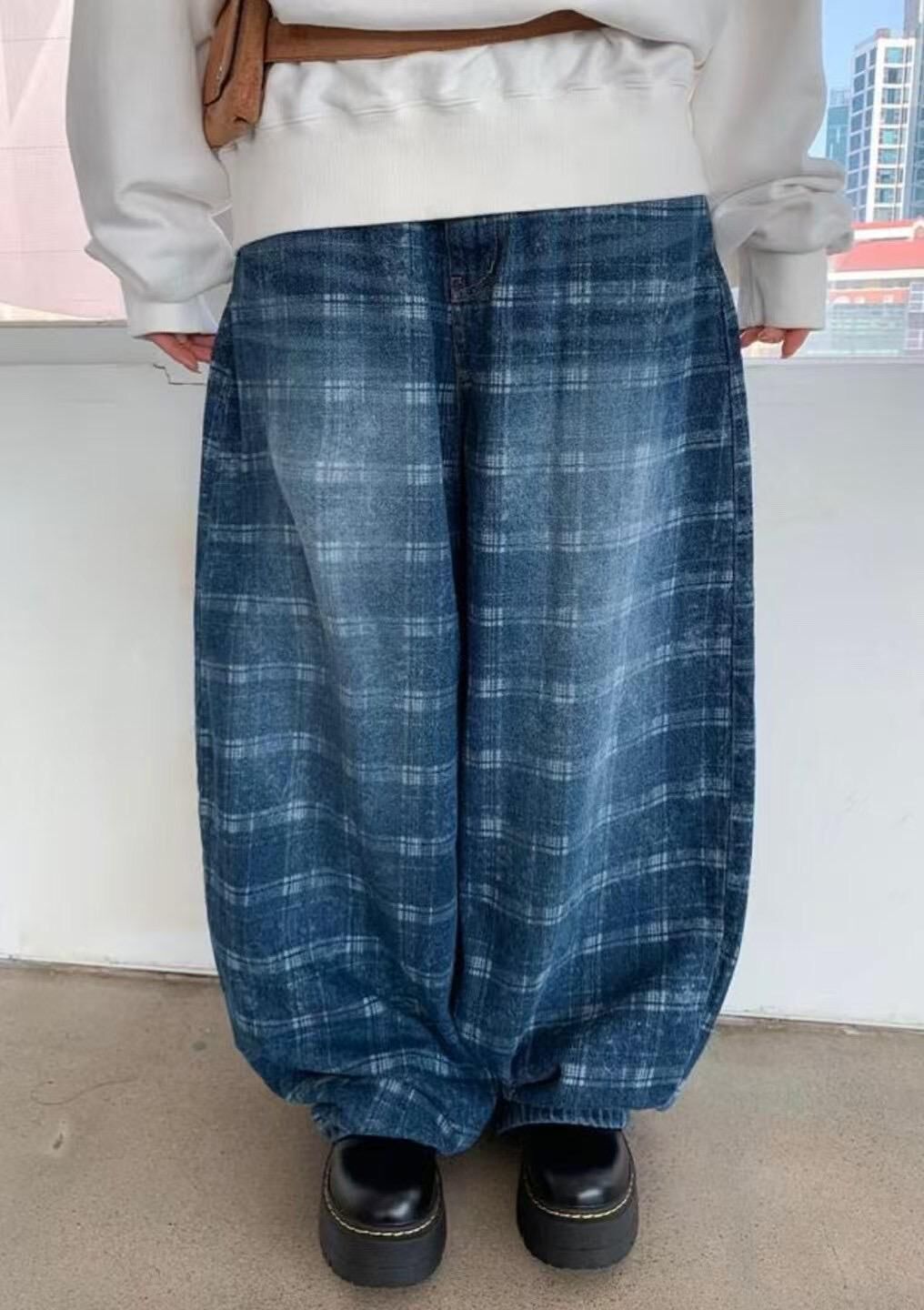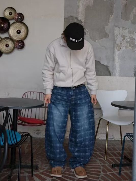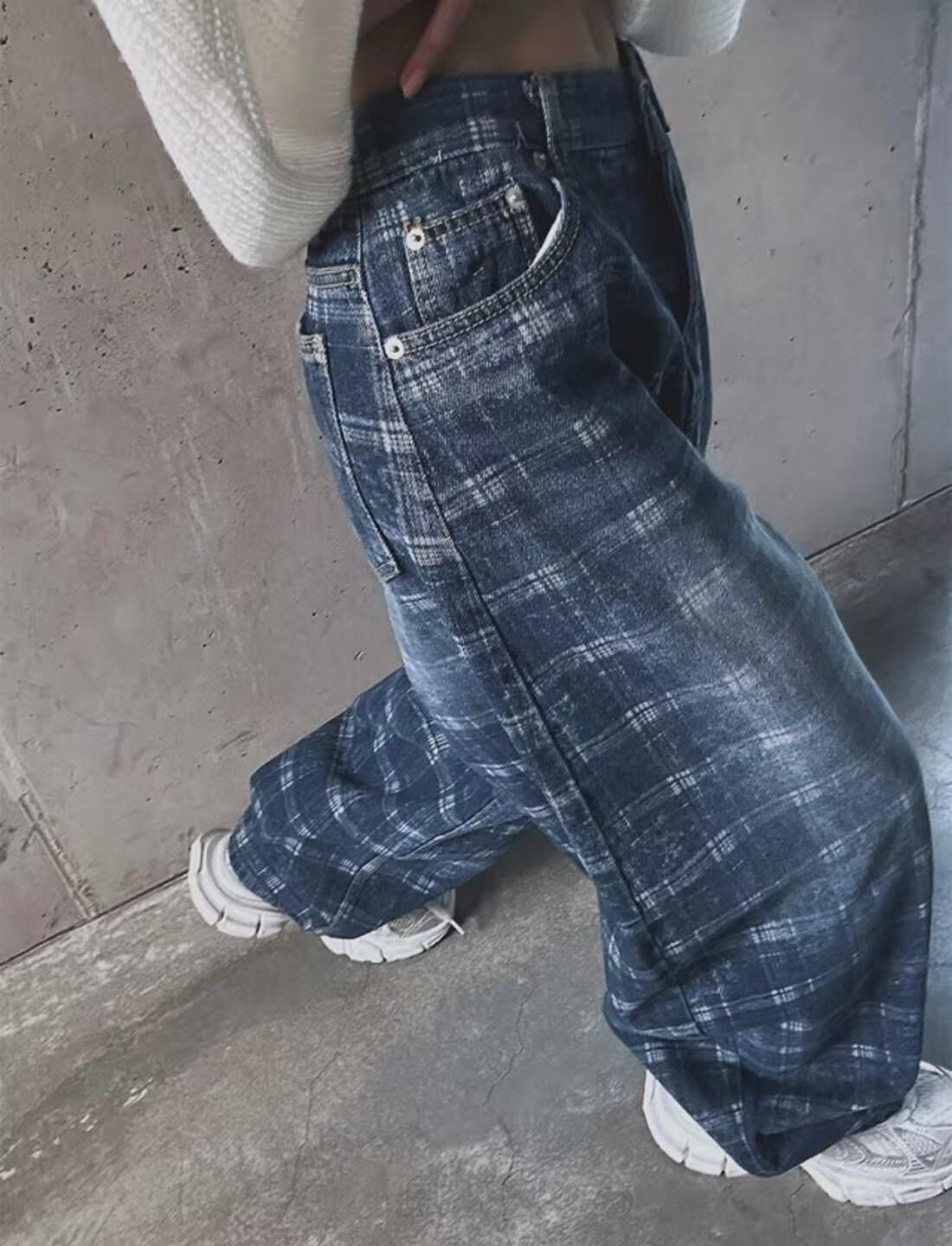 洗水格紋鬆身牛仔褲 Seeot-030P