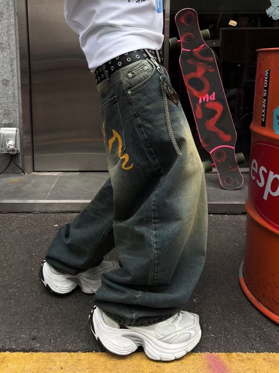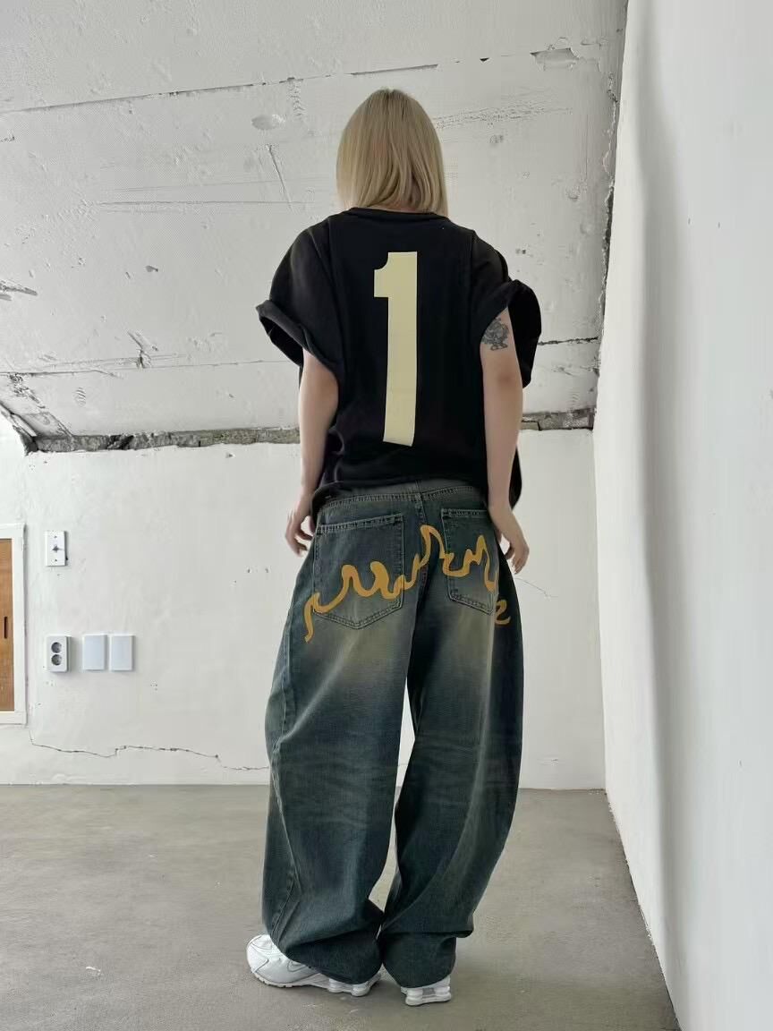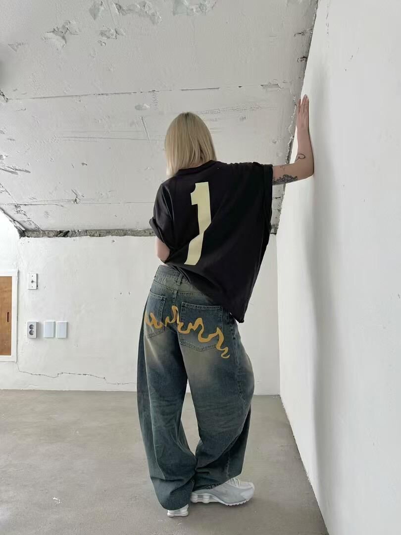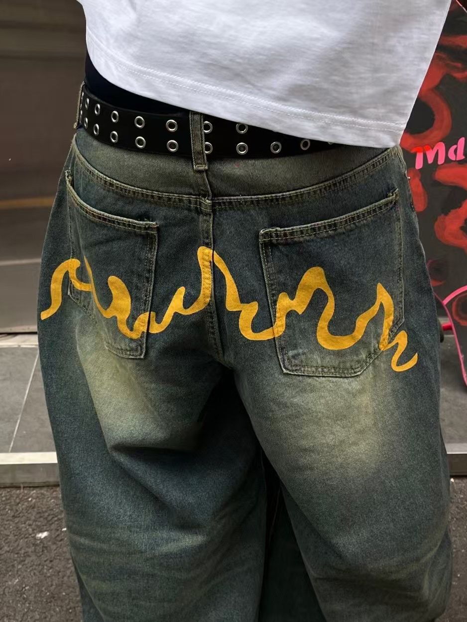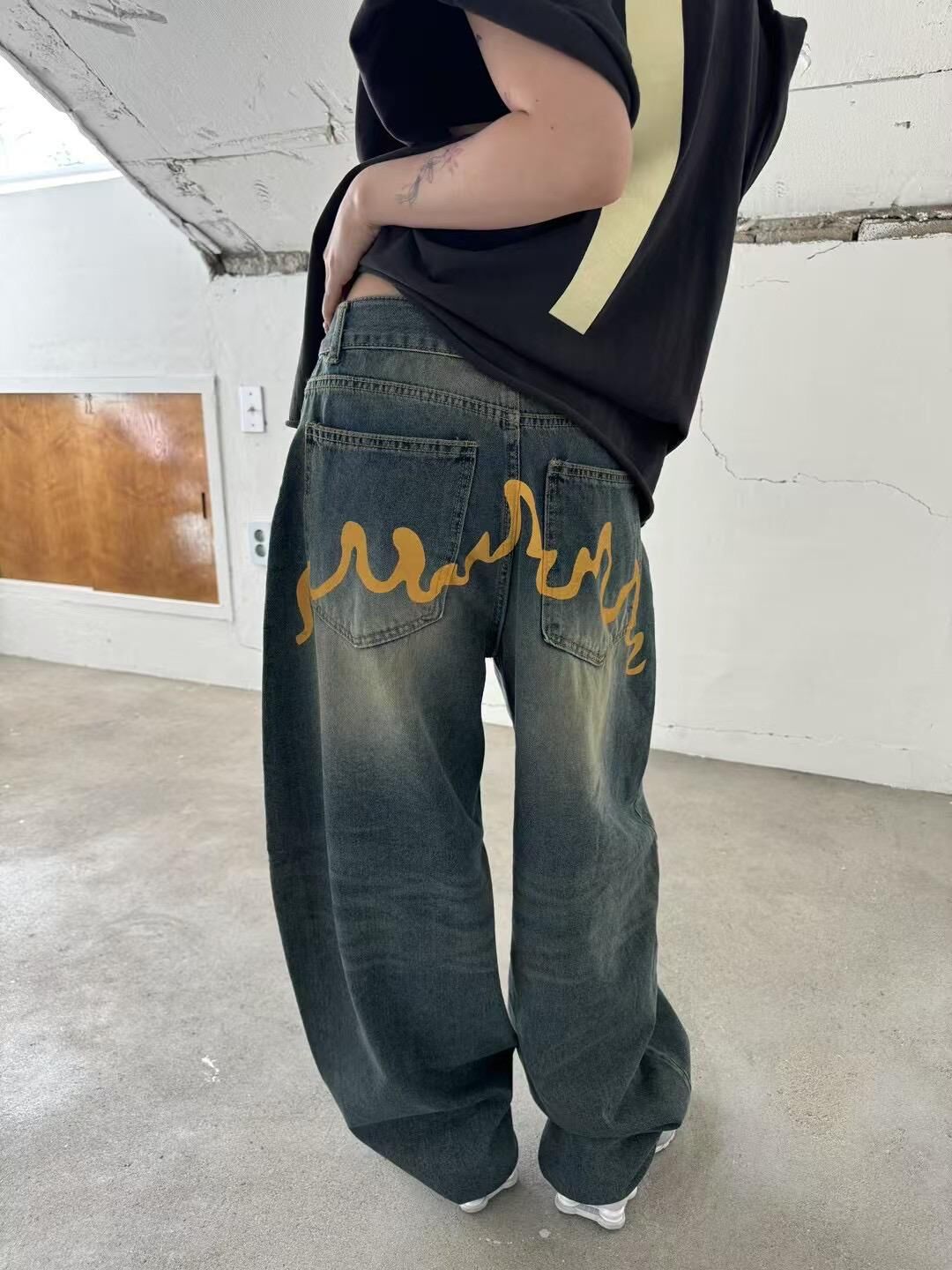 洗水黃線鬆身牛仔褲 Seeot-037P