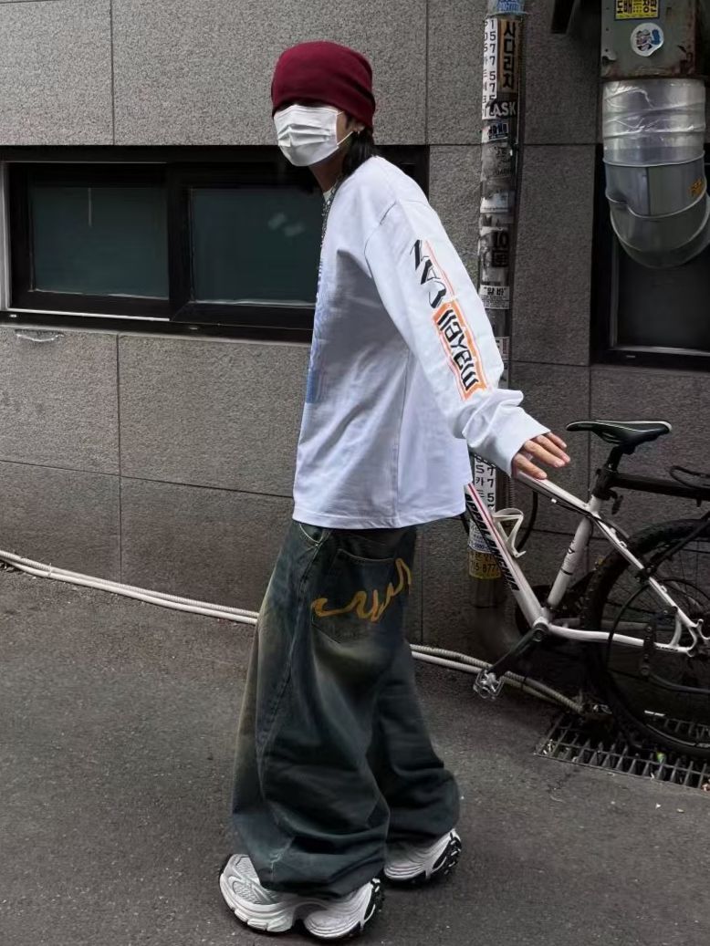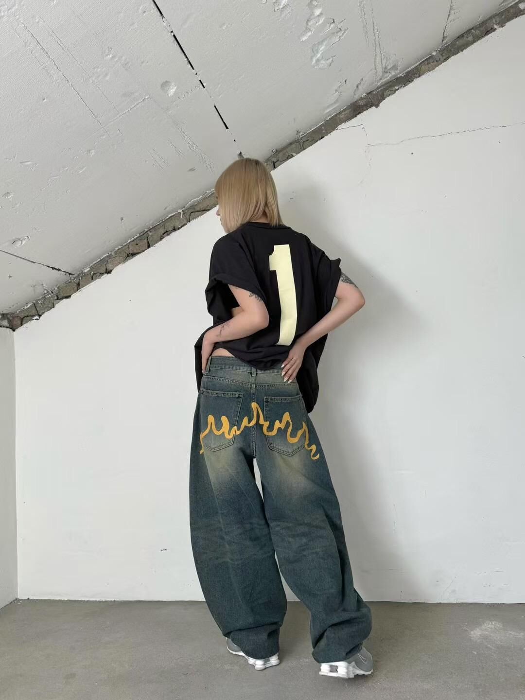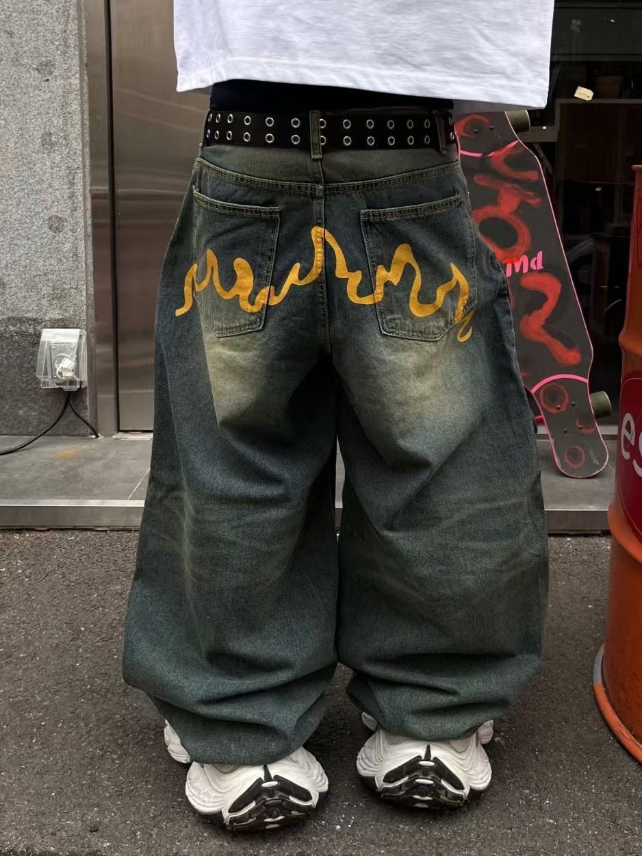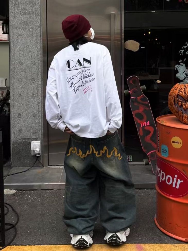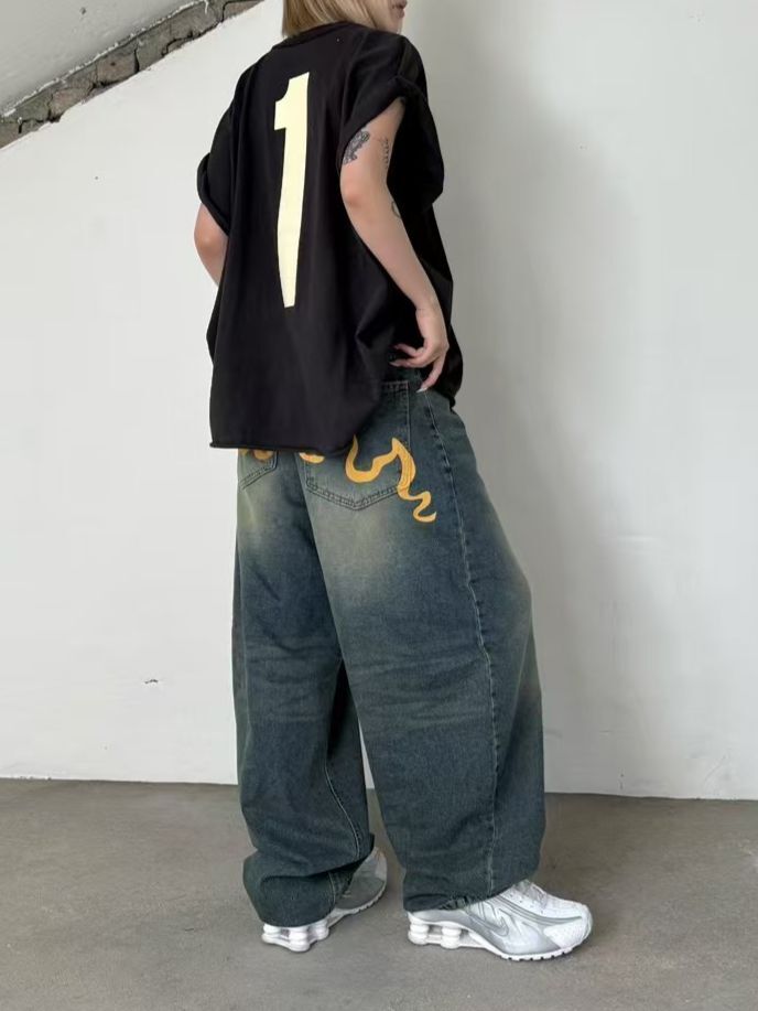 洗水黃線鬆身牛仔褲 Seeot-037P