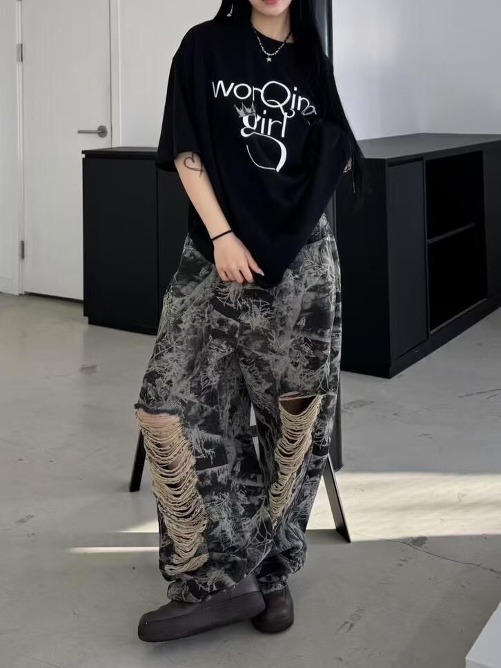 樹葉圖案鬆身褲 Seeot-057P