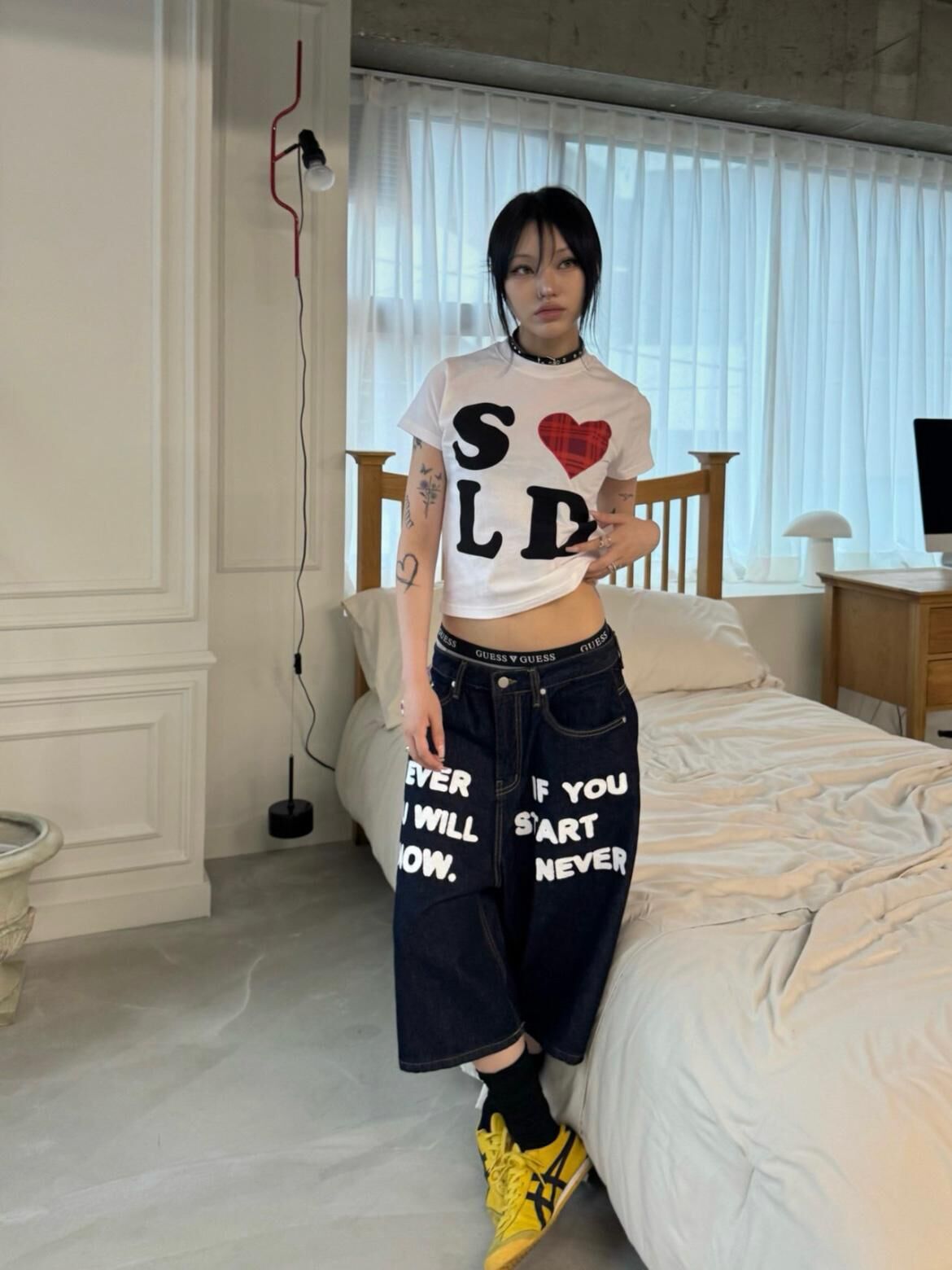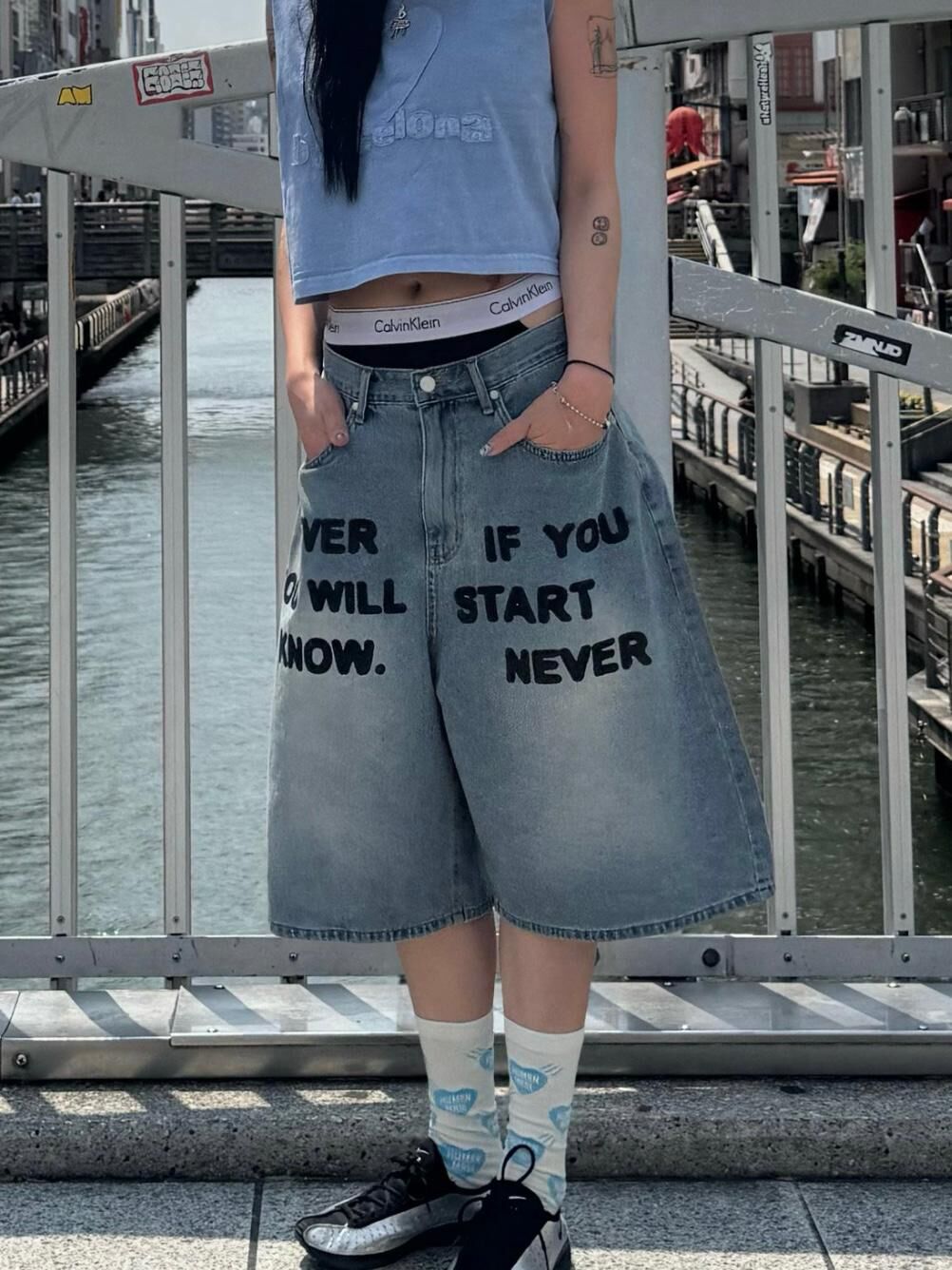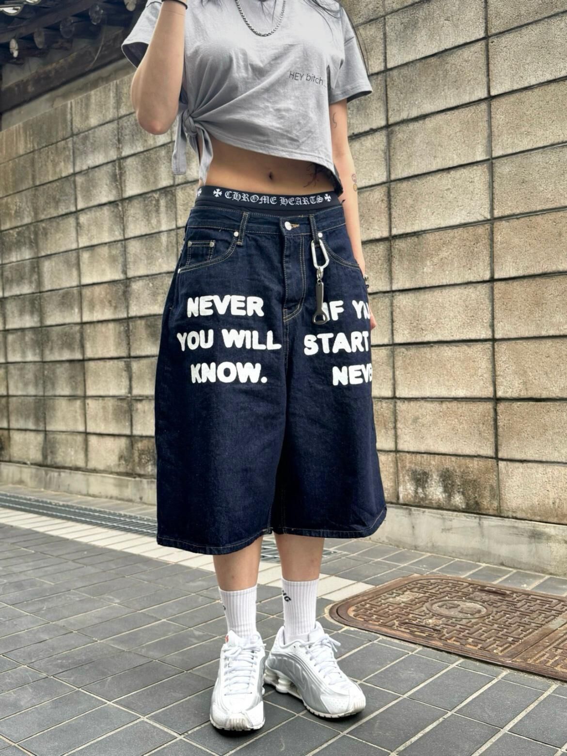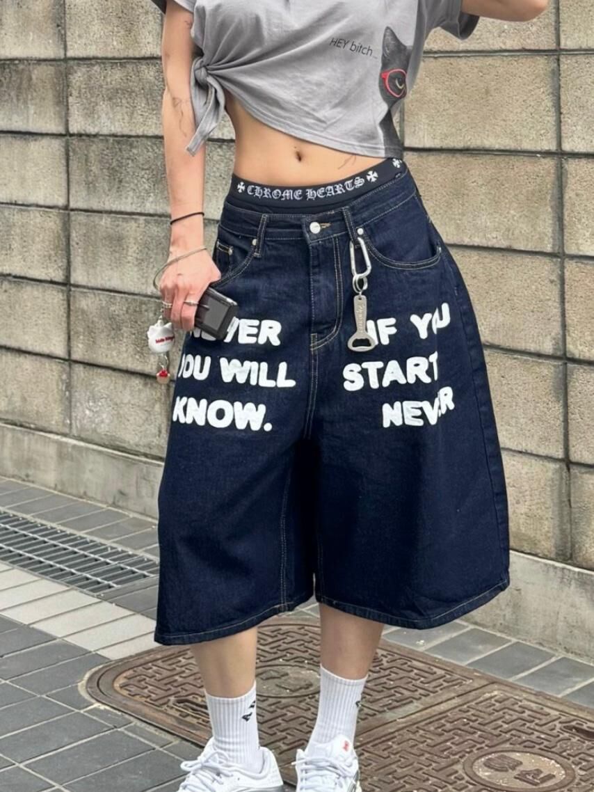 英文字牛仔短褲 Seeot-063P