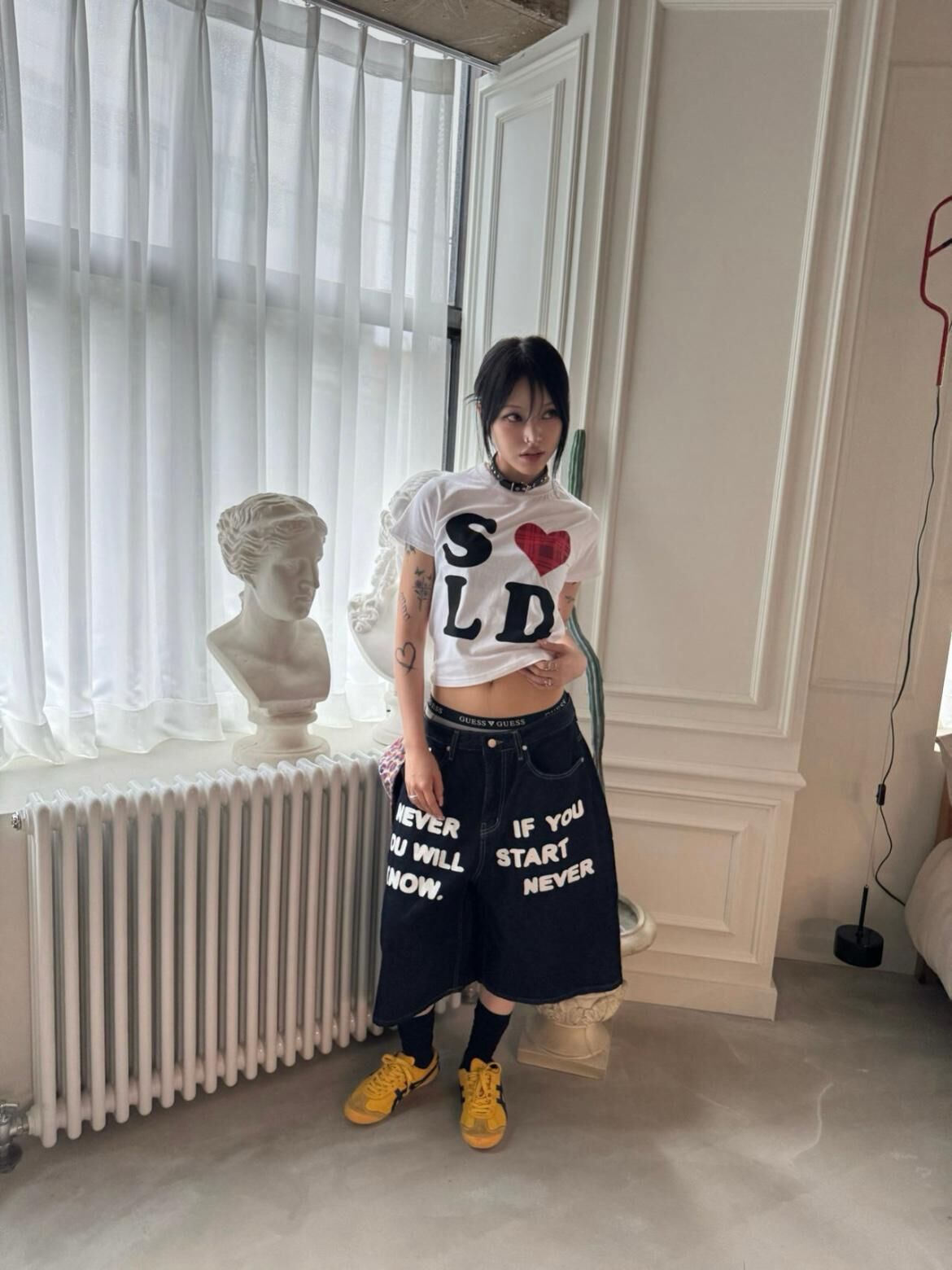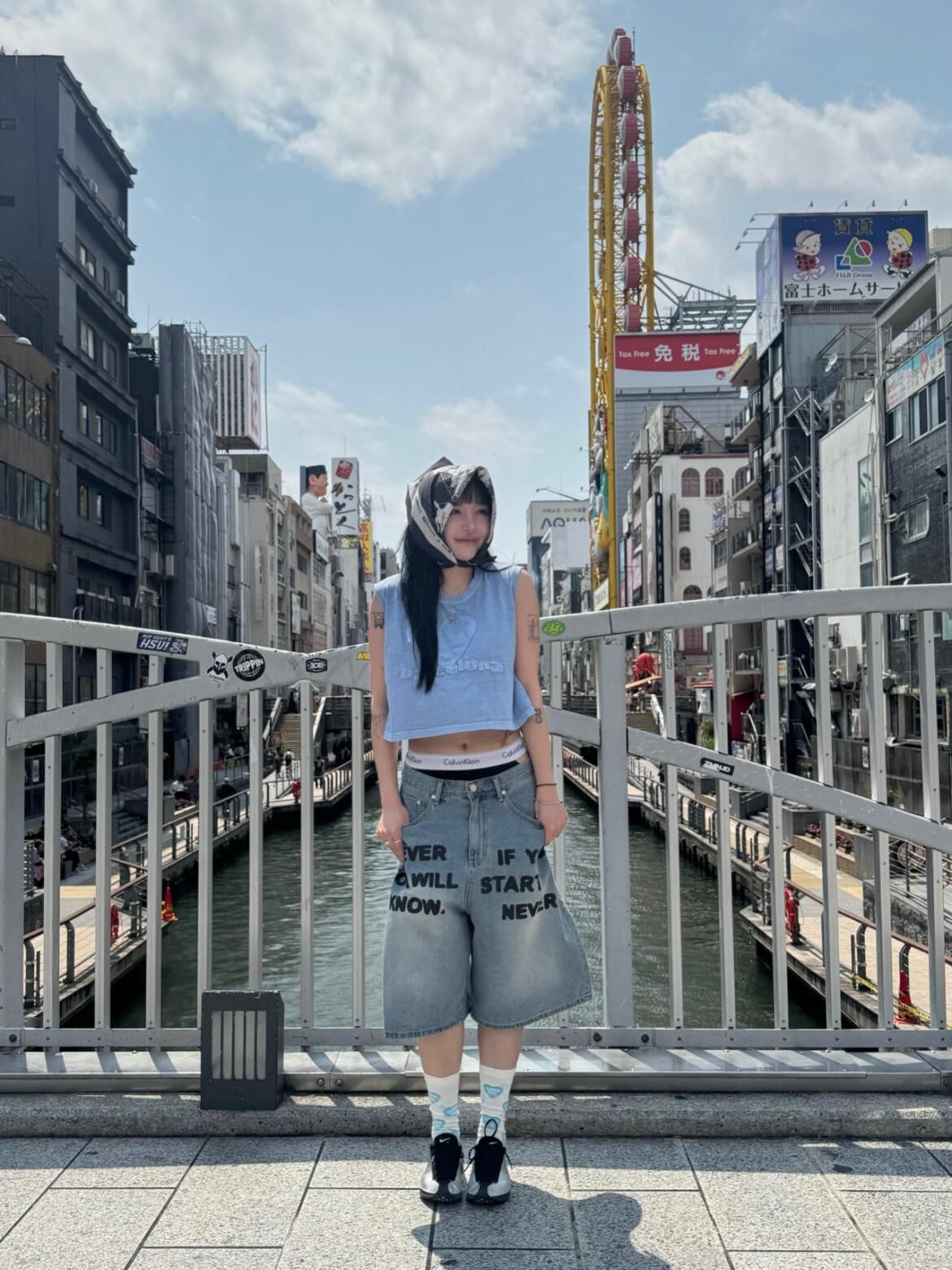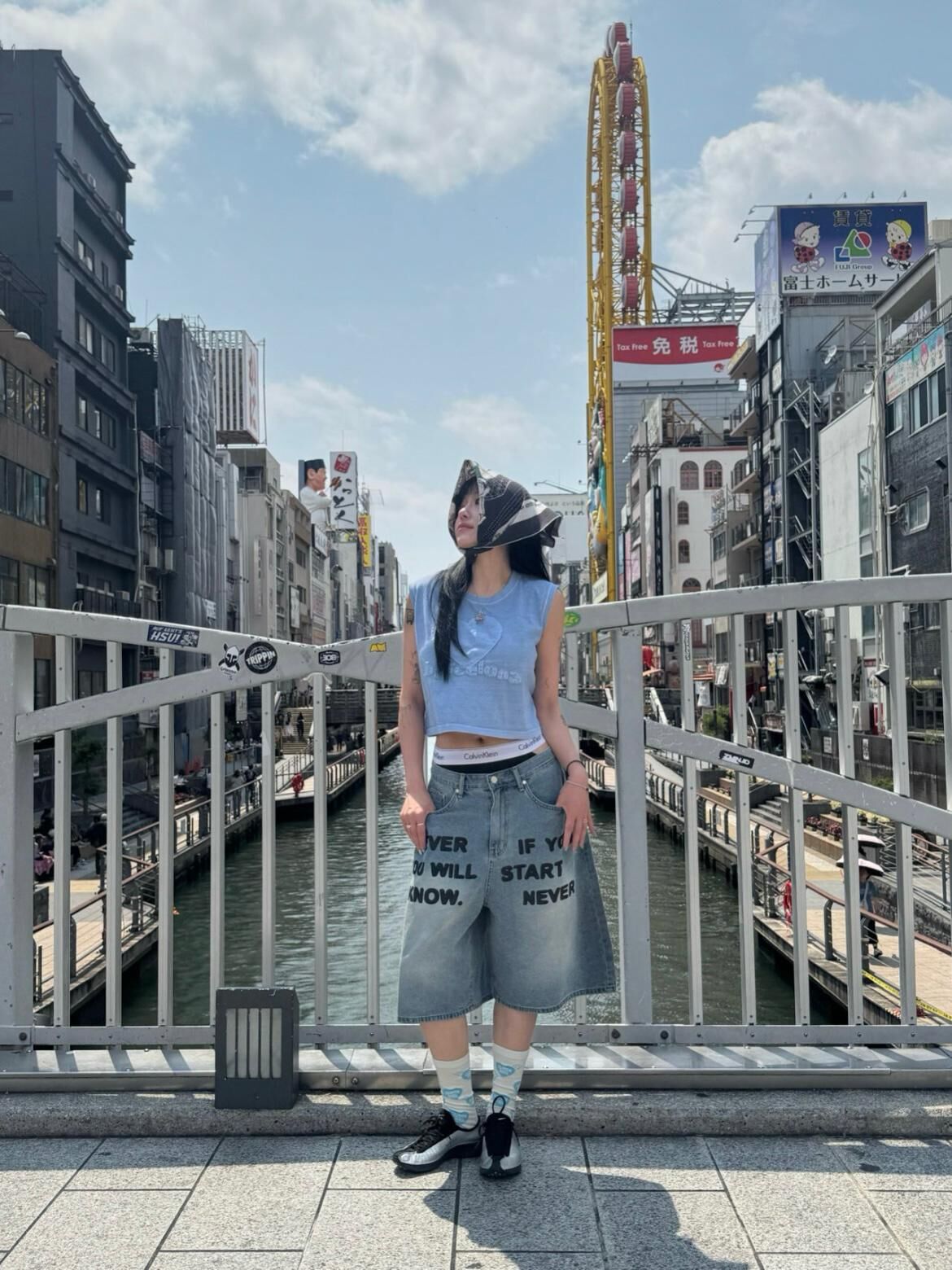 英文字牛仔短褲 Seeot-063P