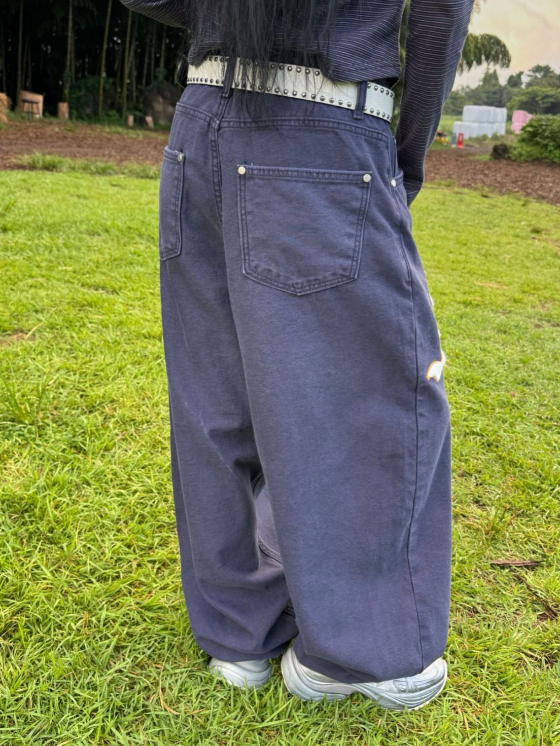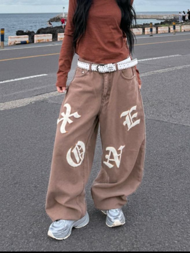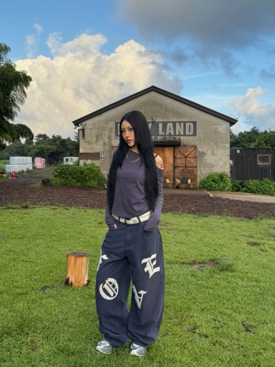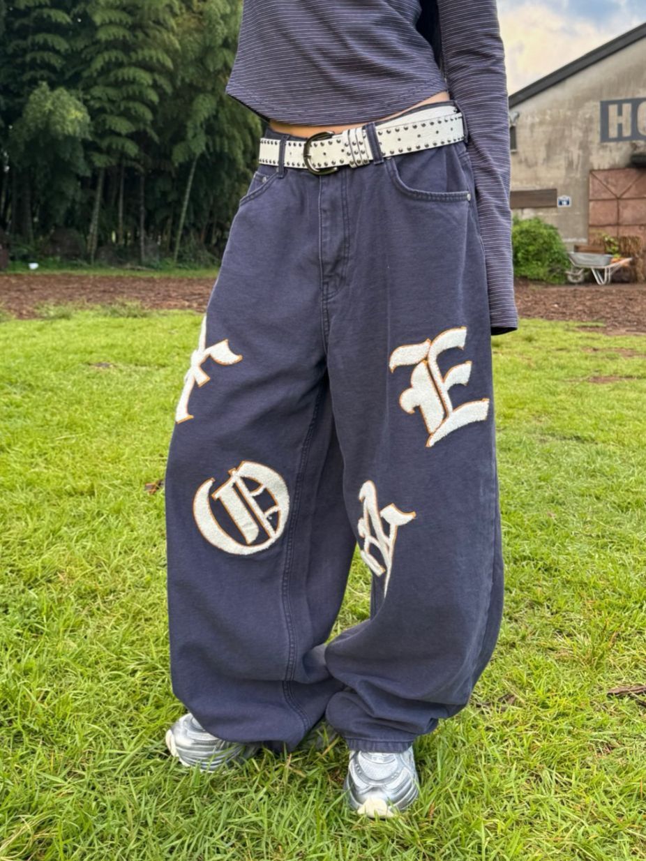 英文字鬆身牛仔褲 Seeot-076P