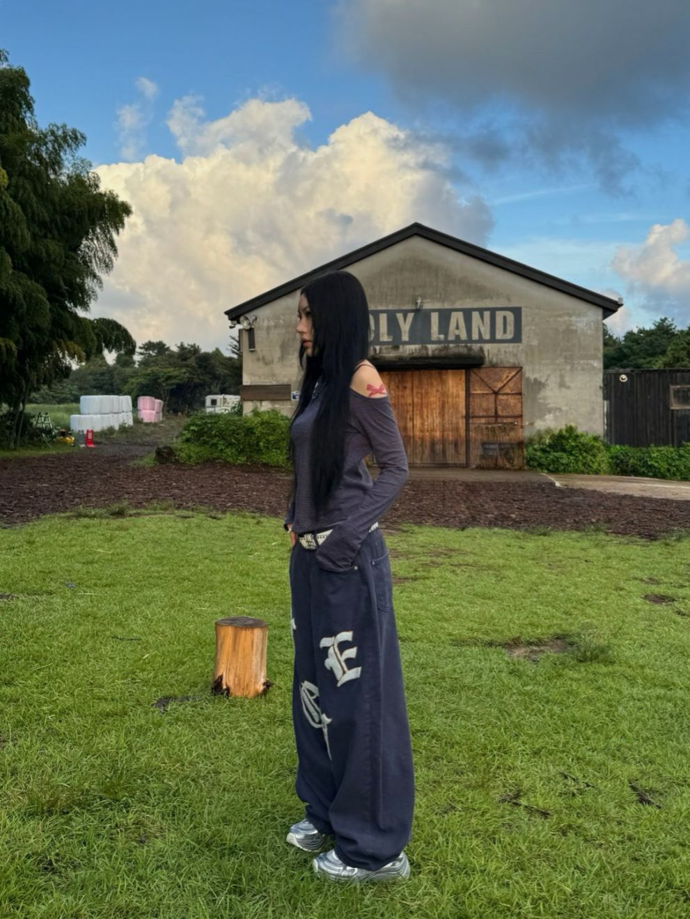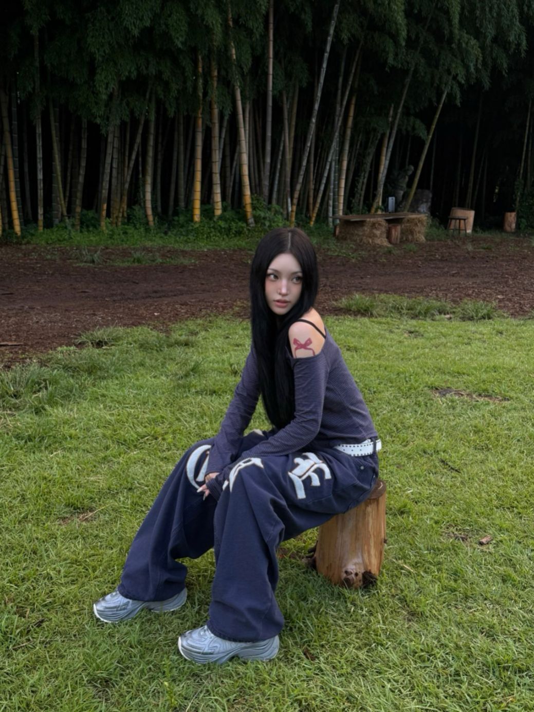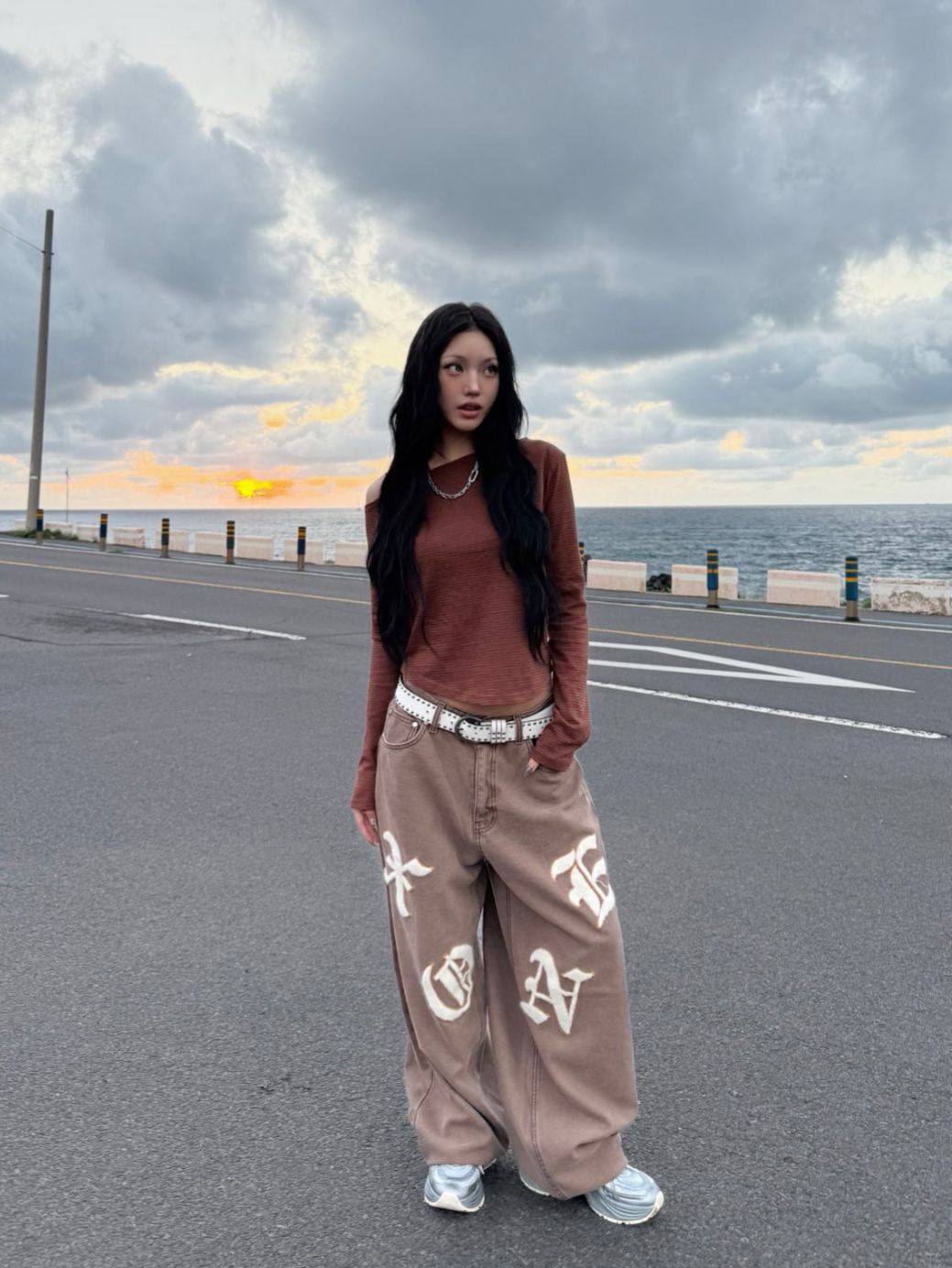英文字鬆身牛仔褲 Seeot-076P
