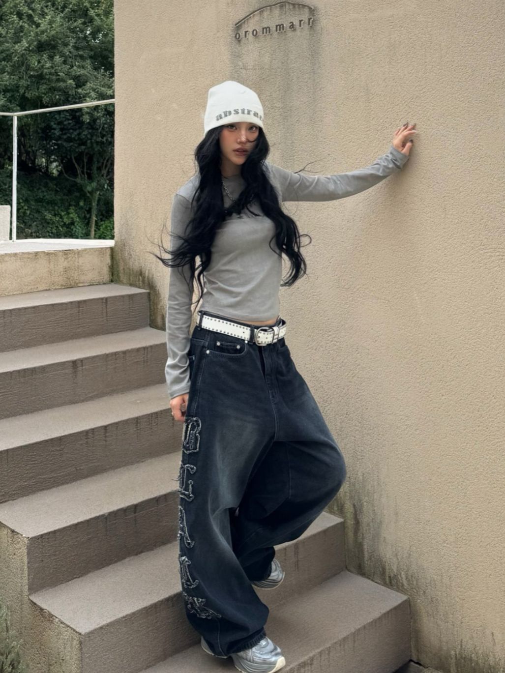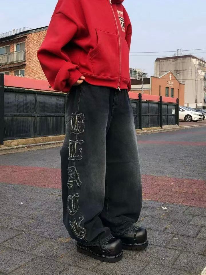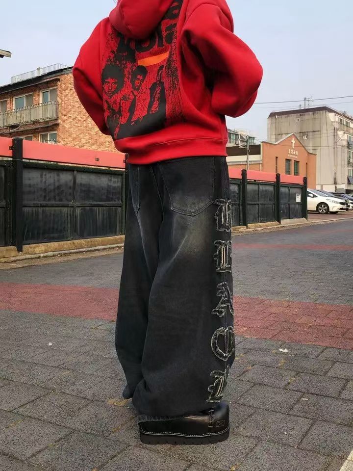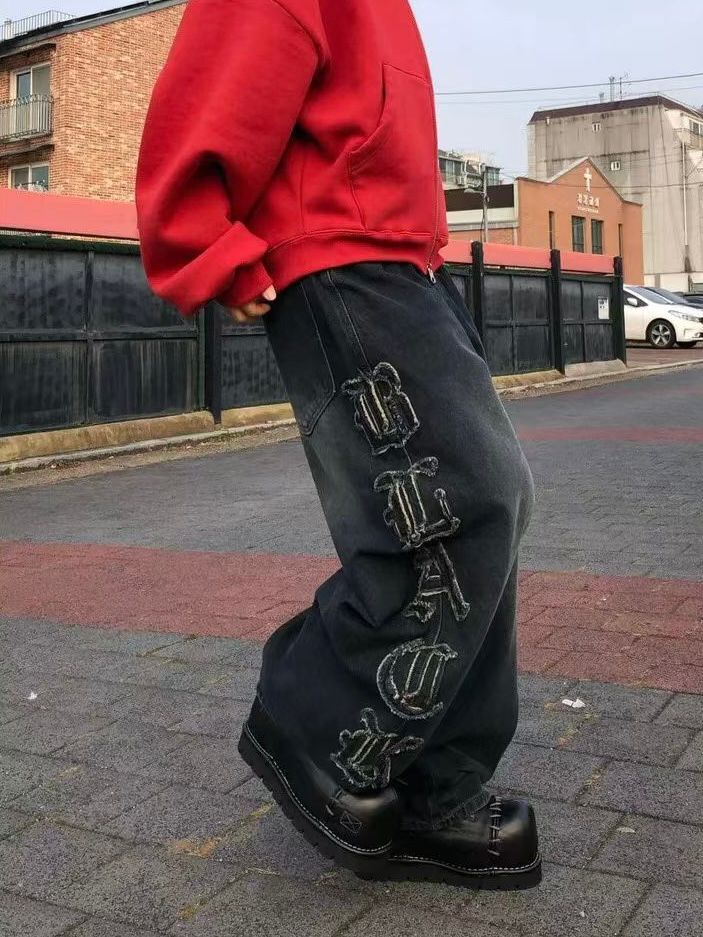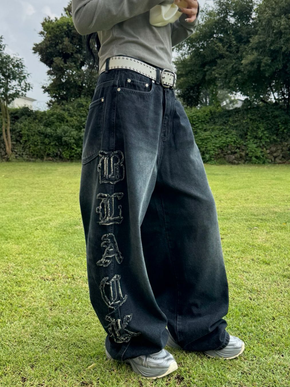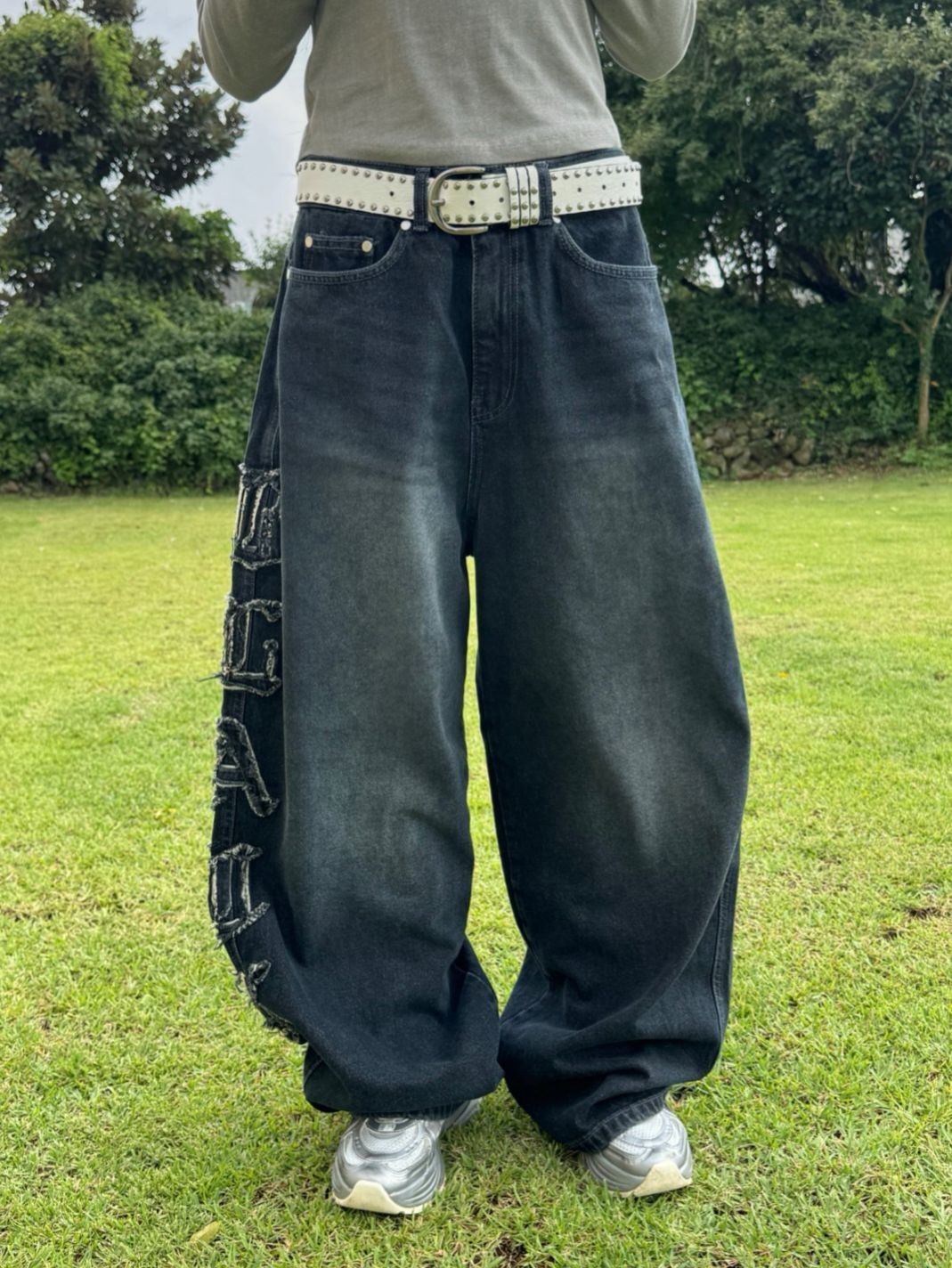 洗水英文字鬆身牛仔褲 Seeot-078P