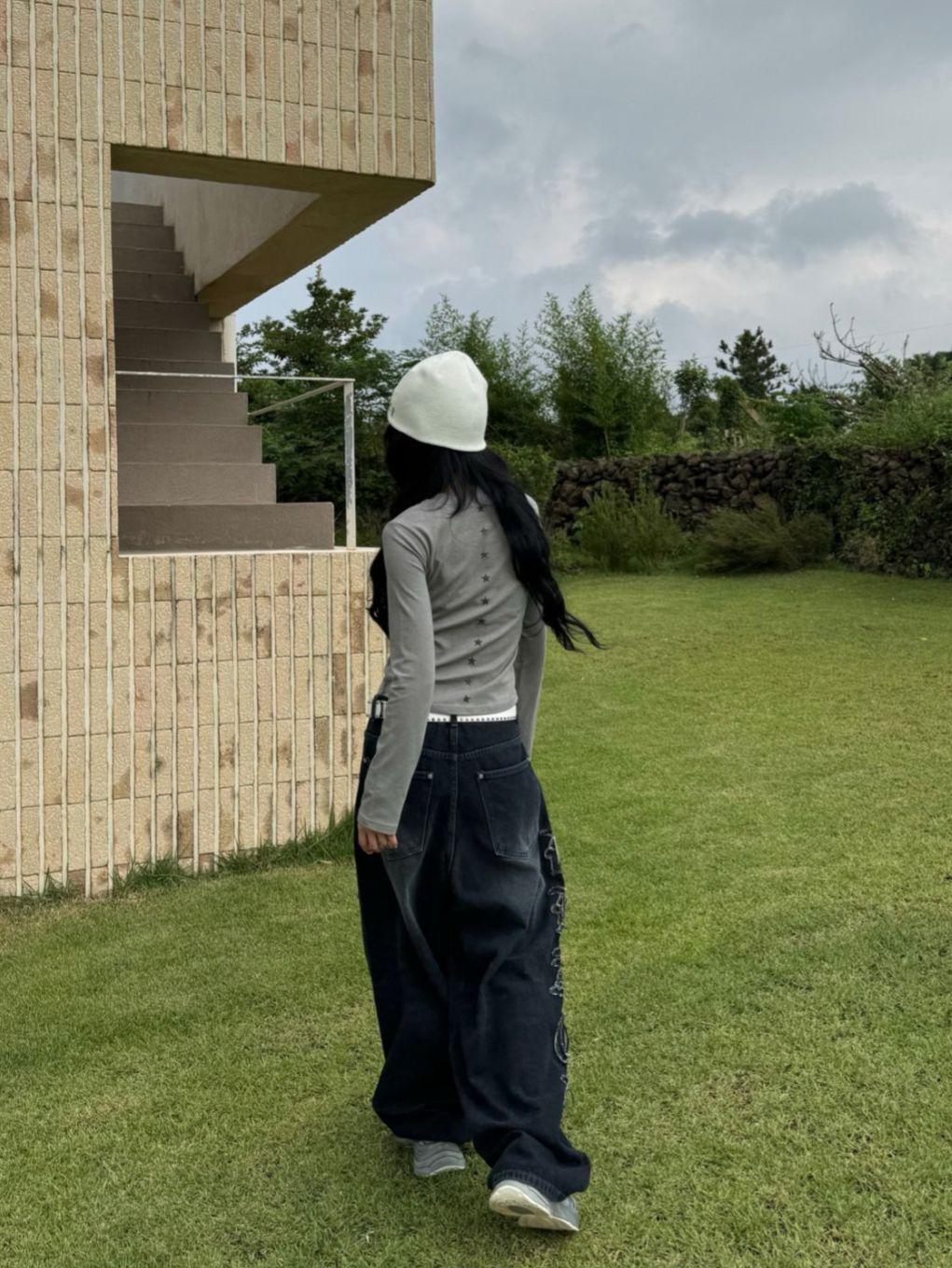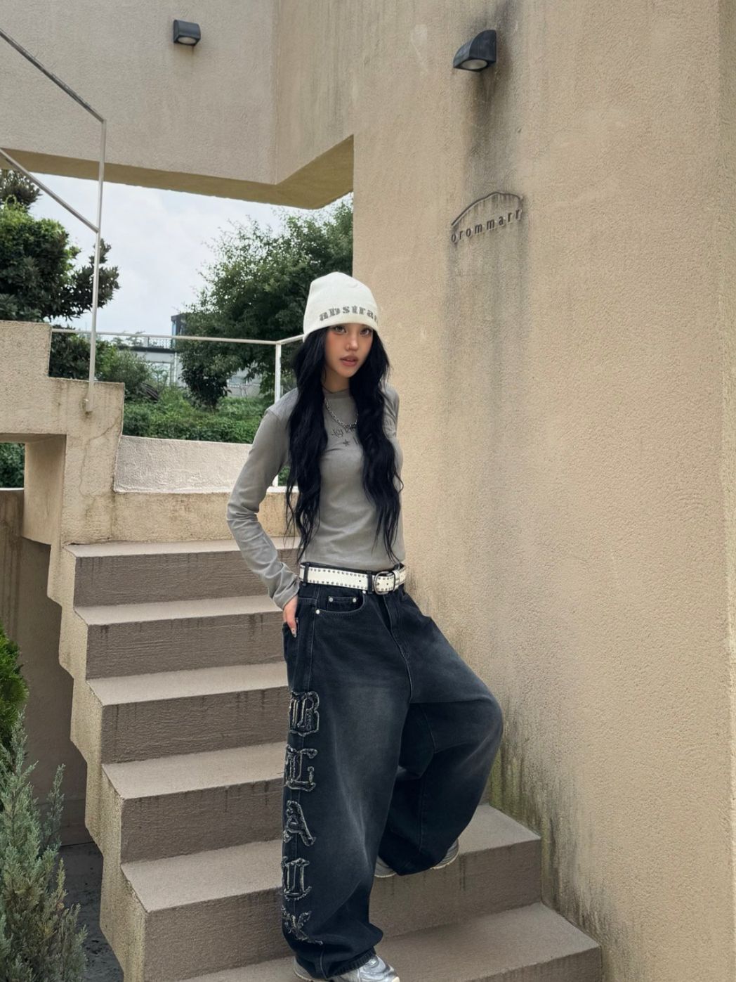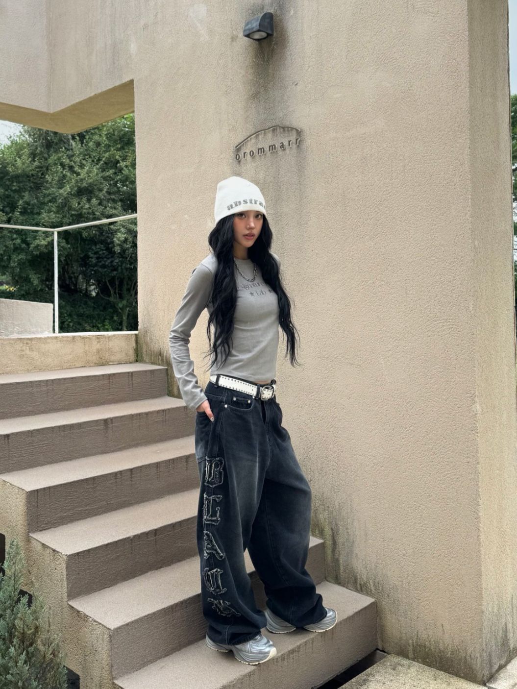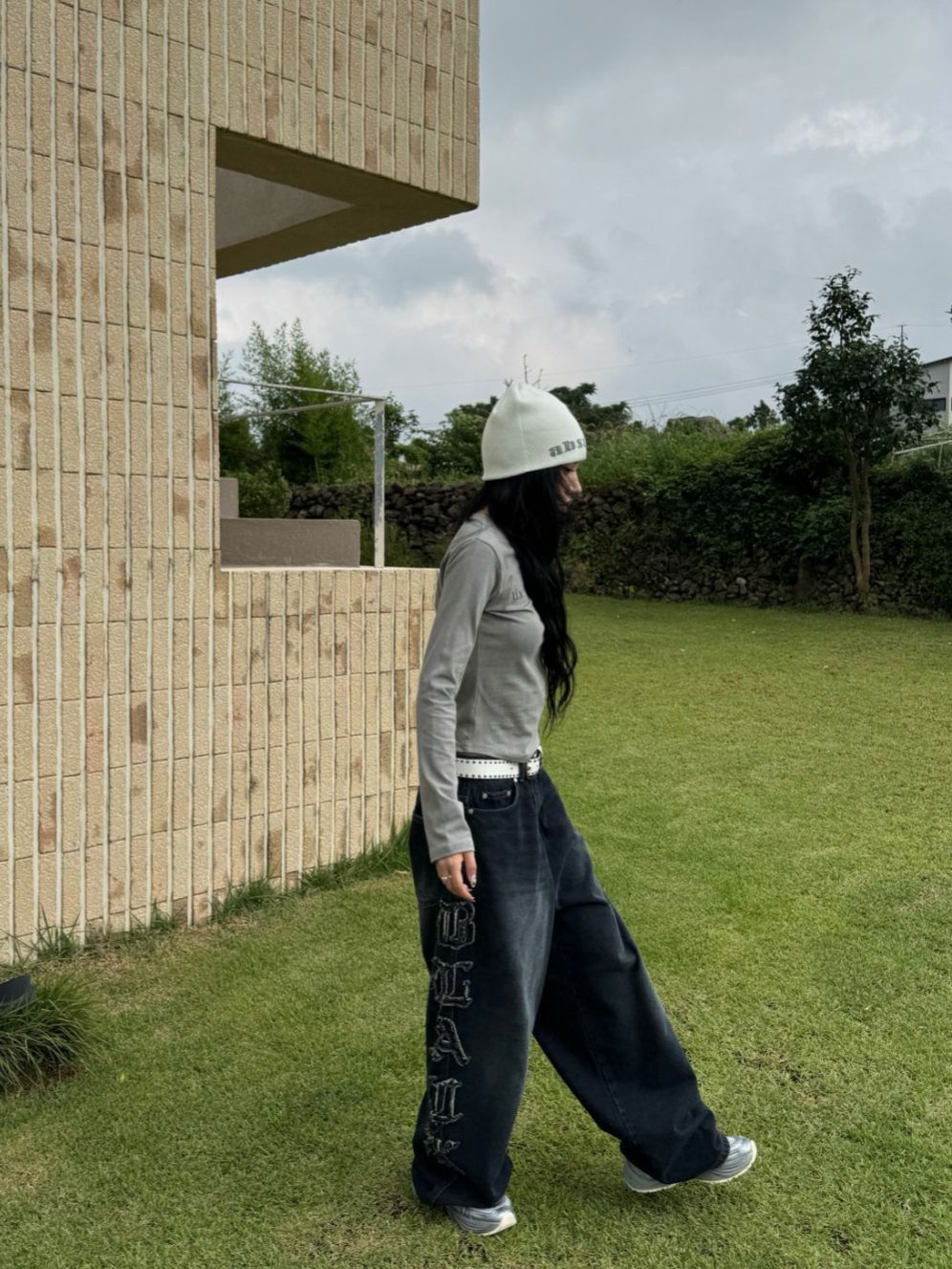 洗水英文字鬆身牛仔褲 Seeot-078P