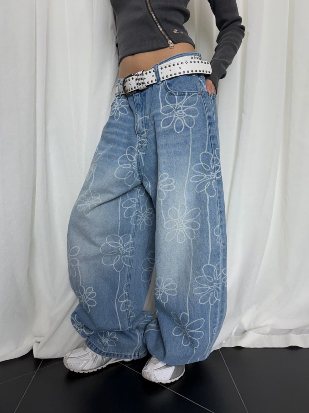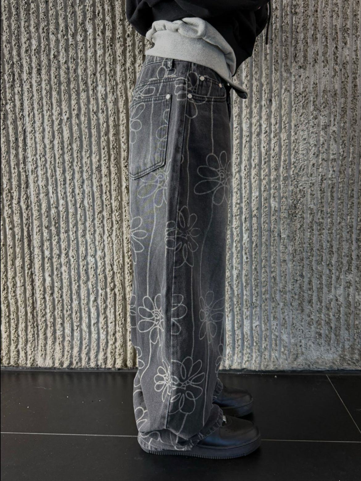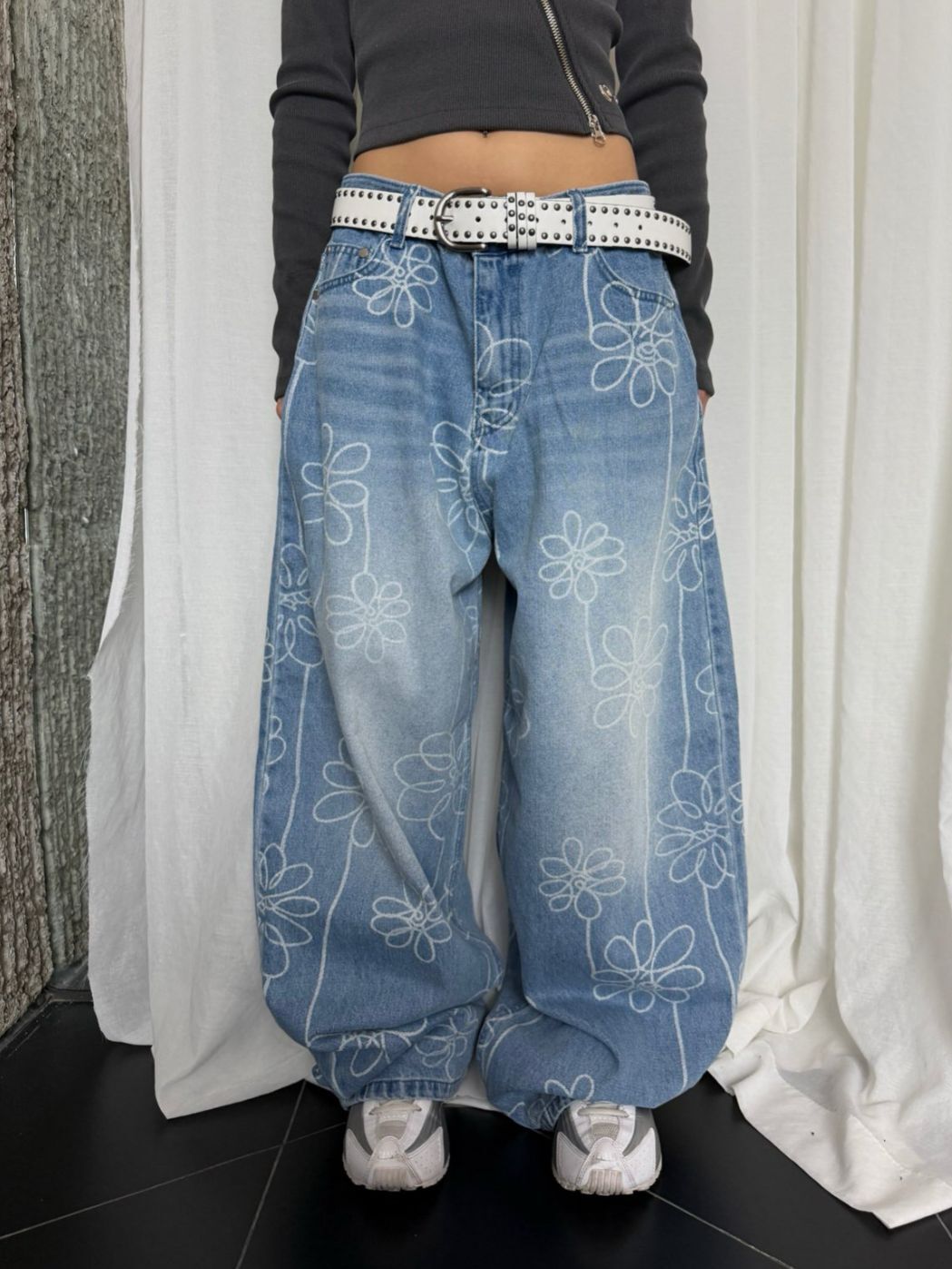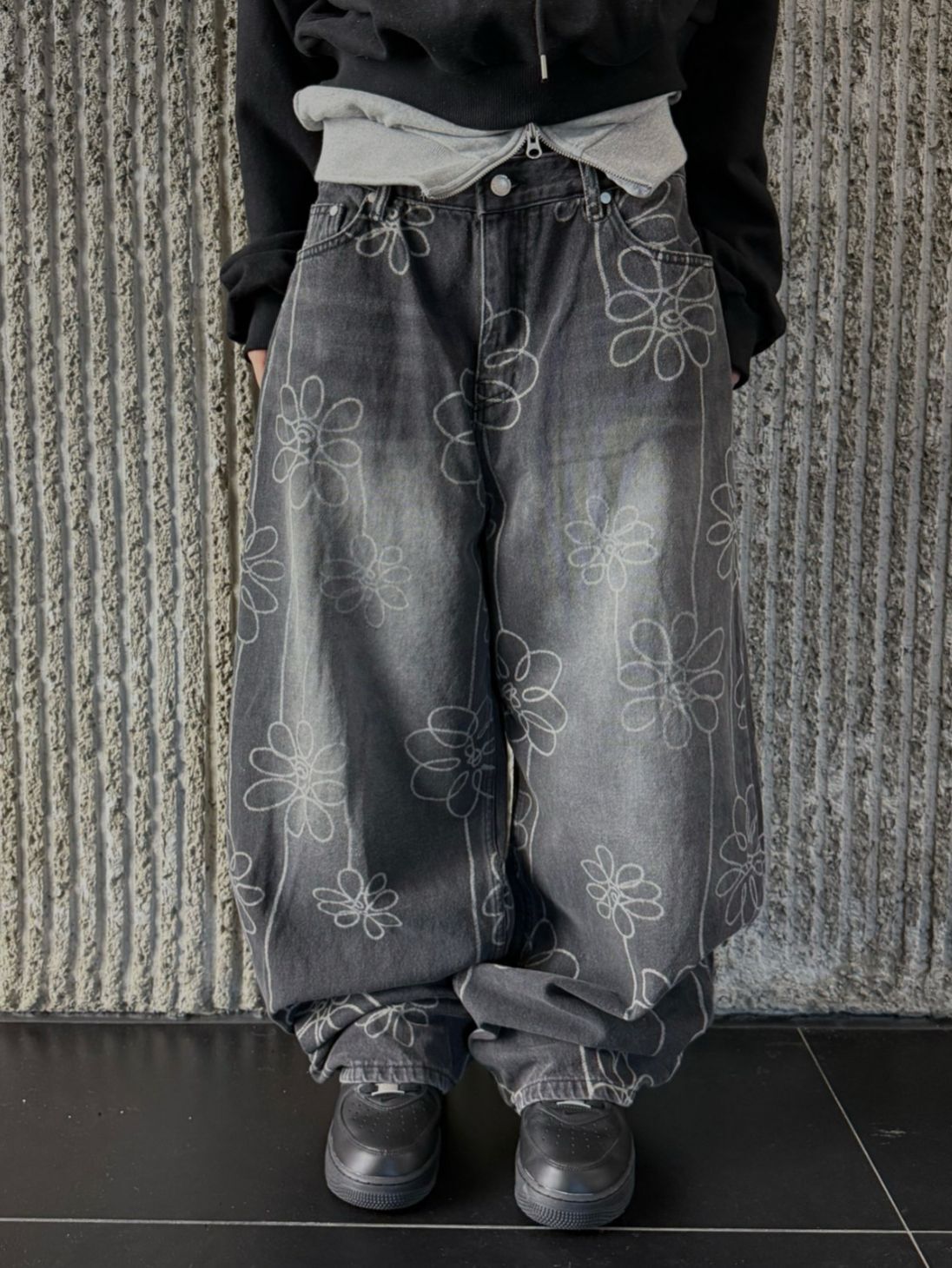 洗水花花圖案鬆身牛仔褲 Seeot-105P