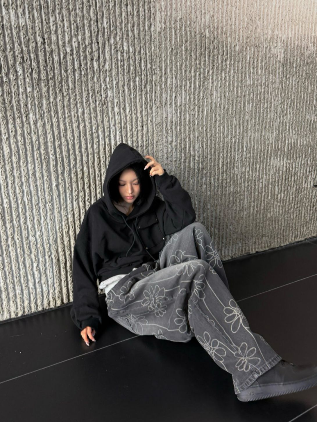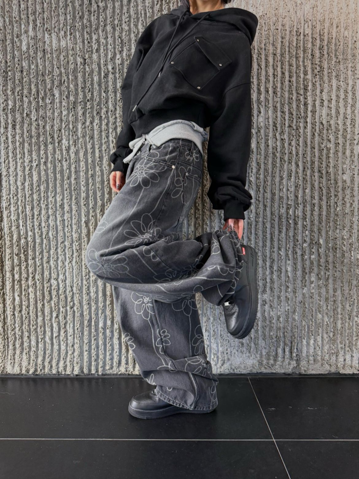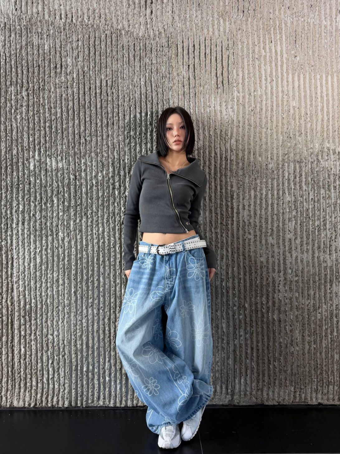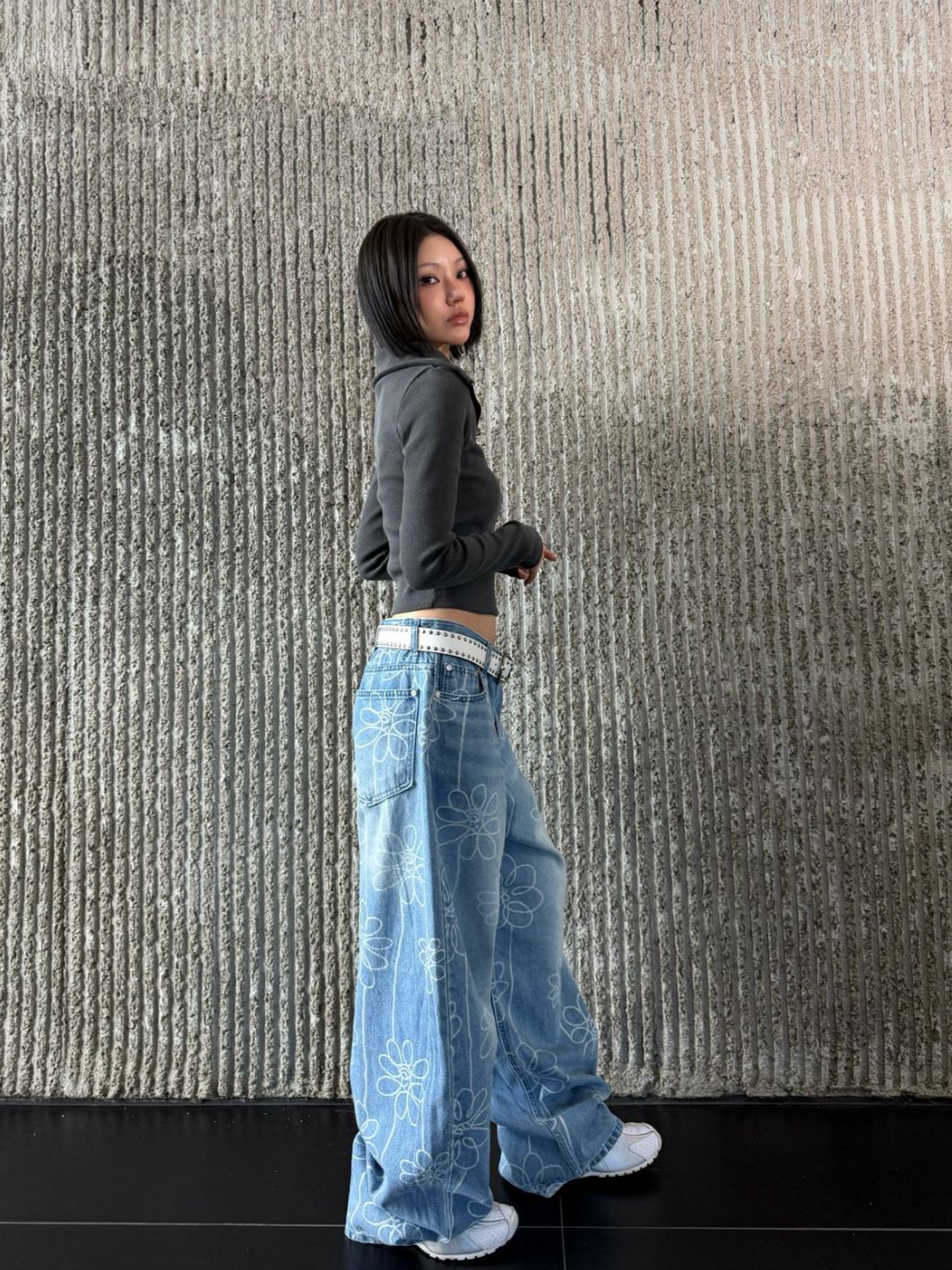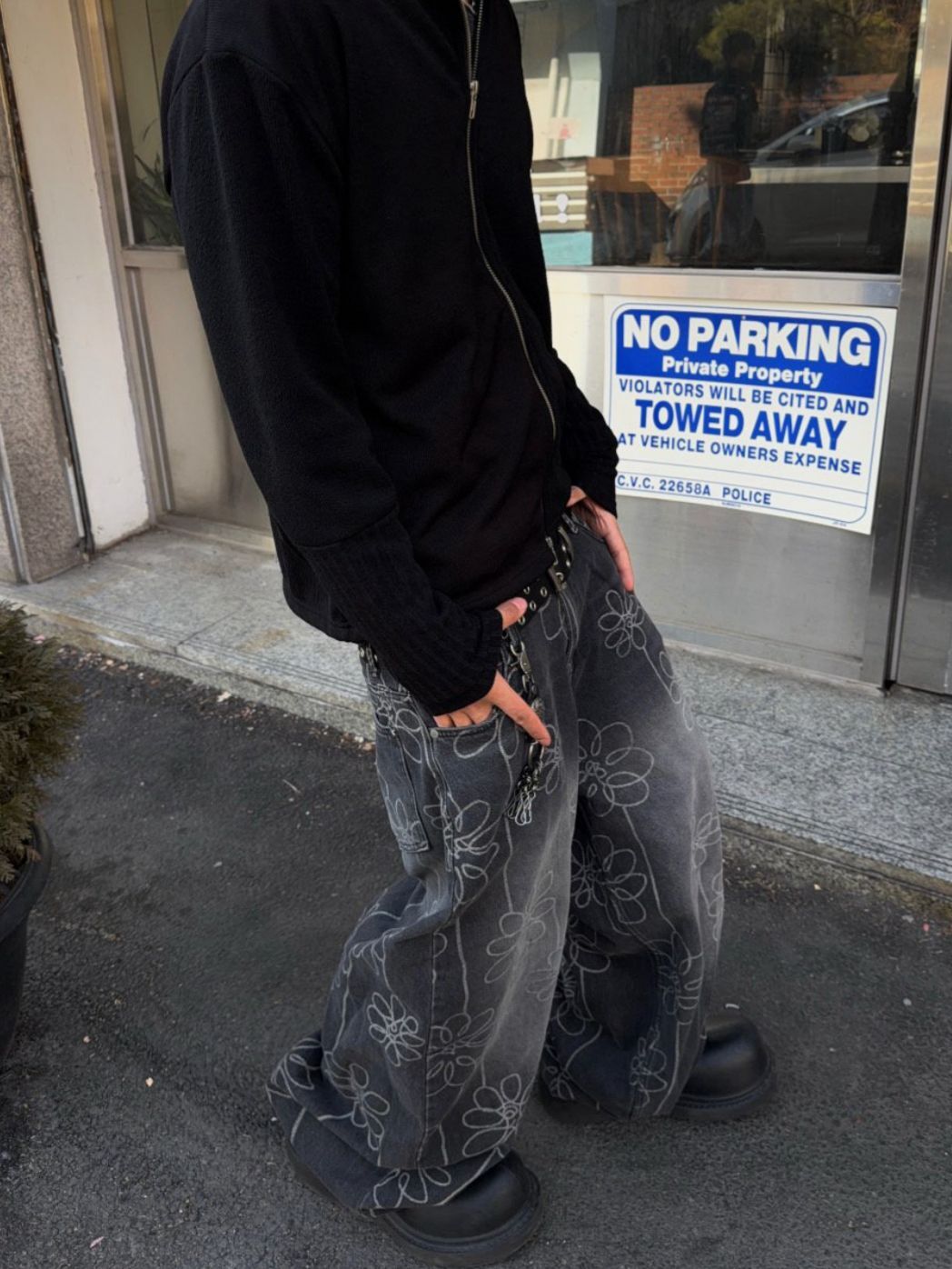 洗水花花圖案鬆身牛仔褲 Seeot-105P