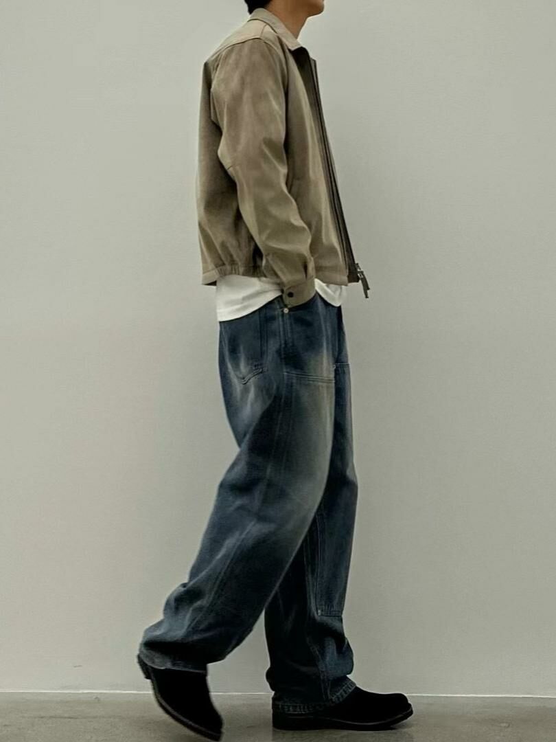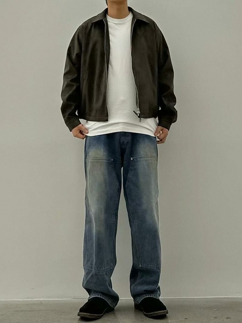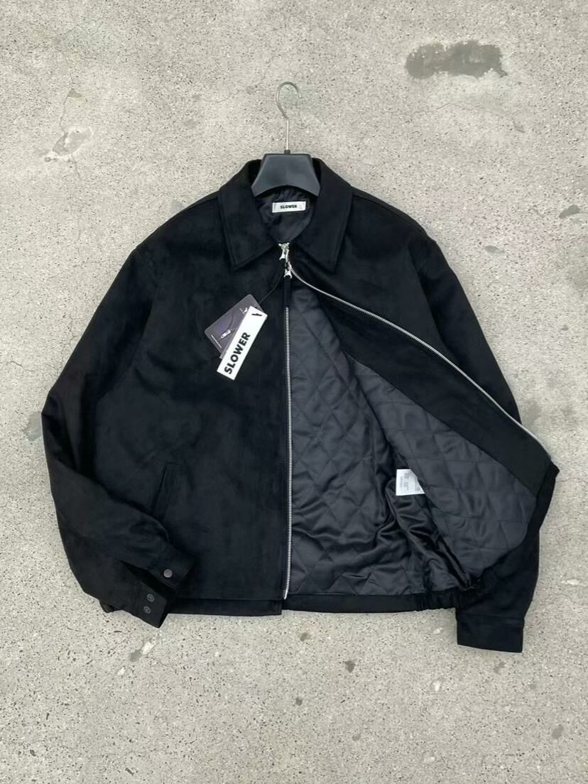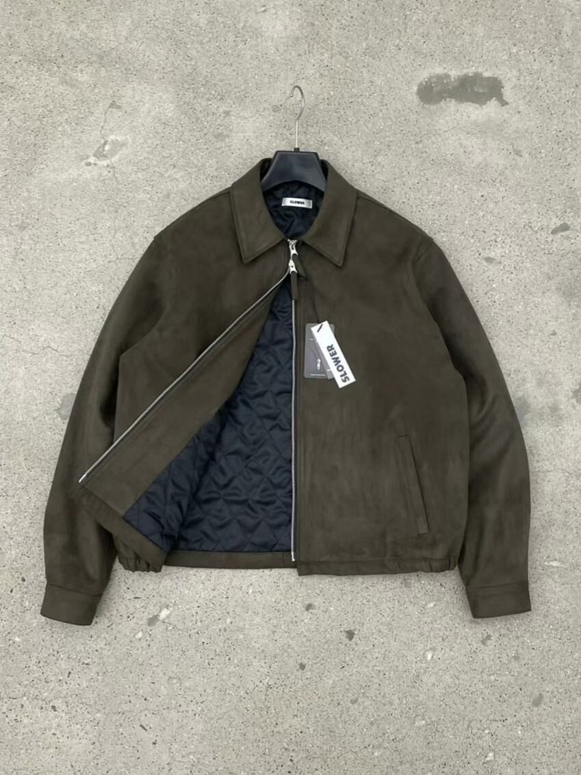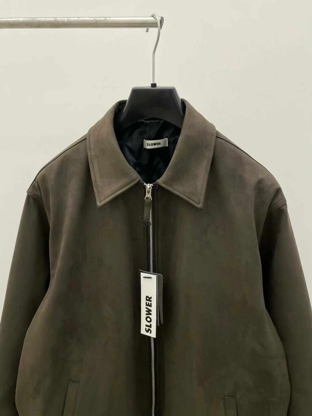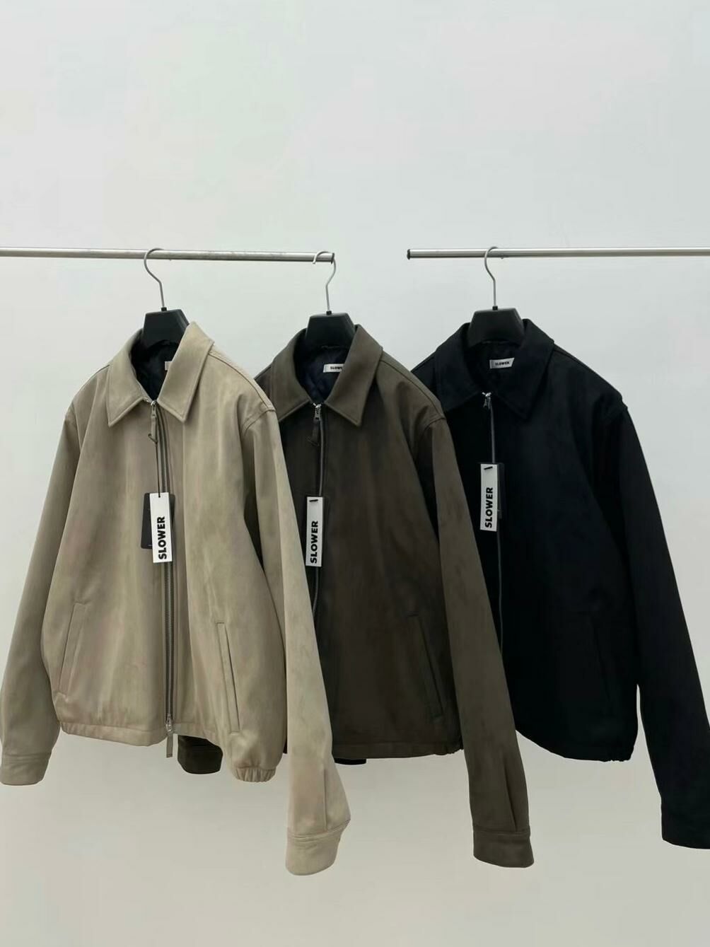 反領猄面拉鍊外套(薄夾棉) SLOWER-016JK