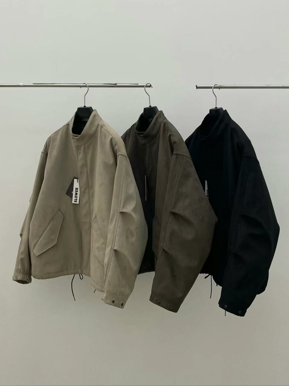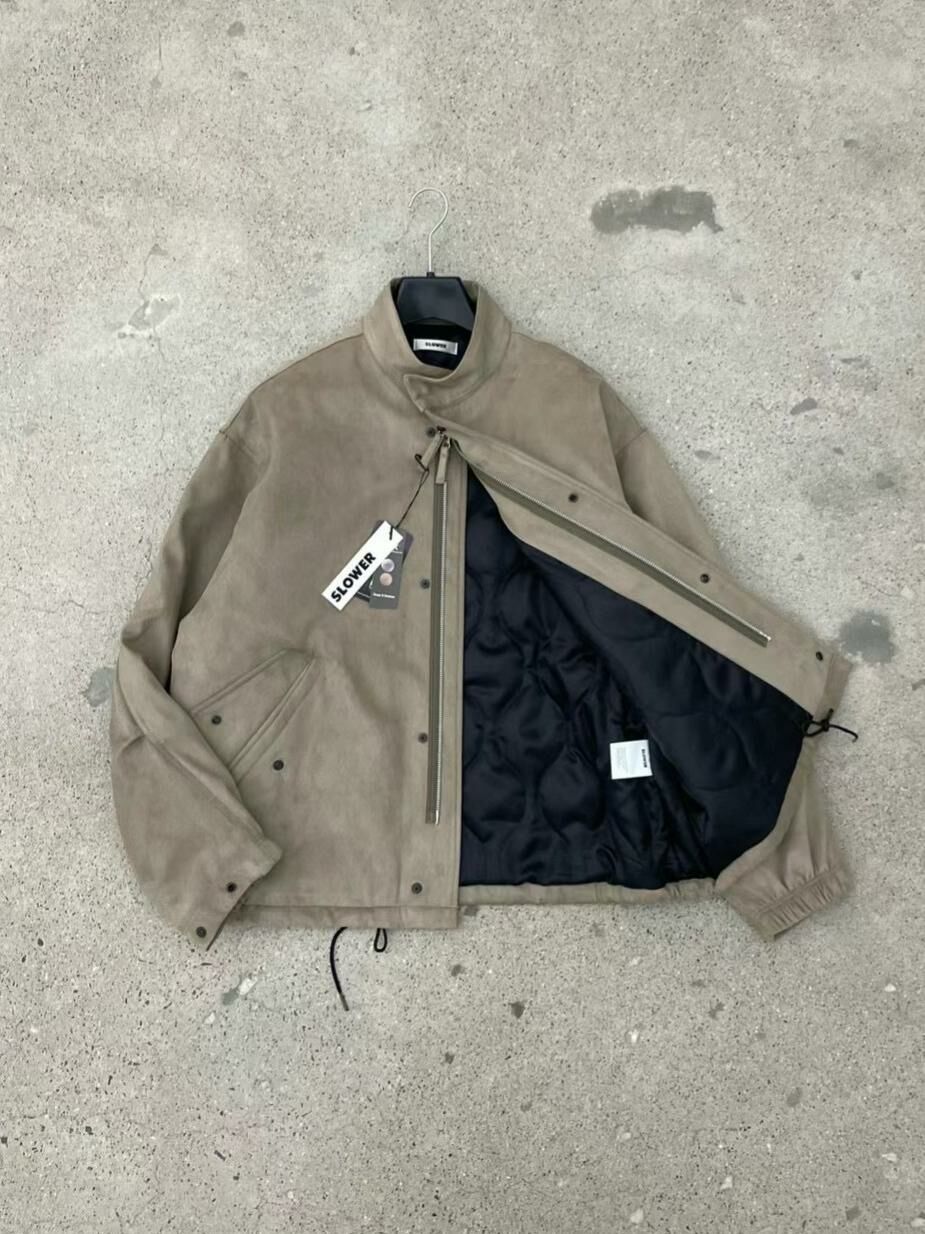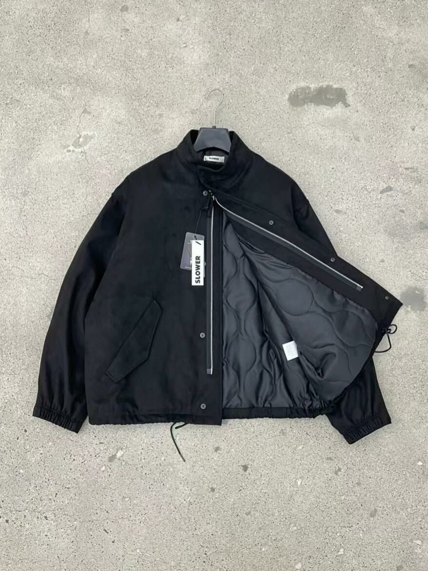 淨色企領猄面拉鍊外套(薄夾棉) SLOWER-017JK