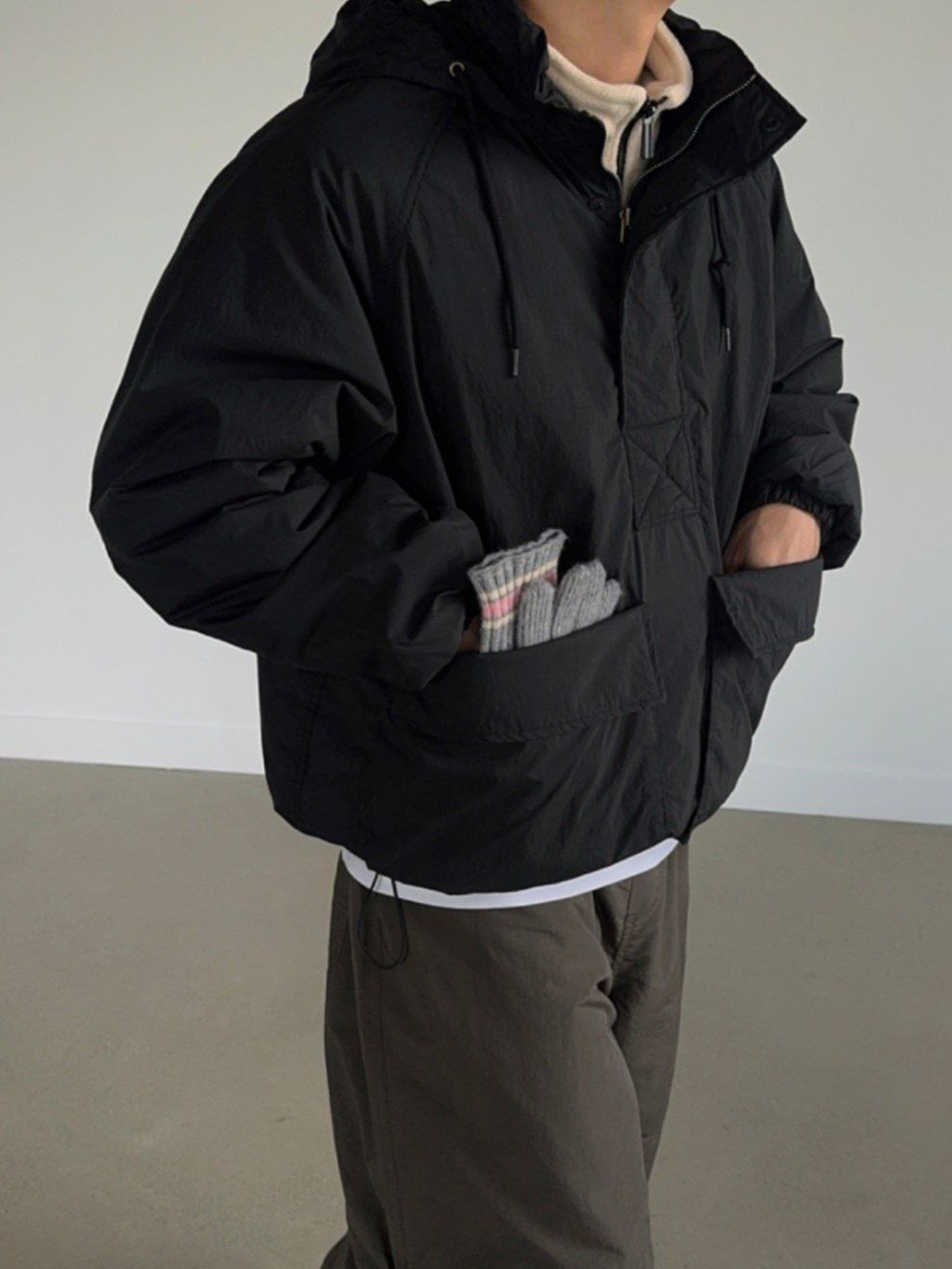 淨色連帽半拉鍊外套(薄夾棉) SPECTOR-126JK
