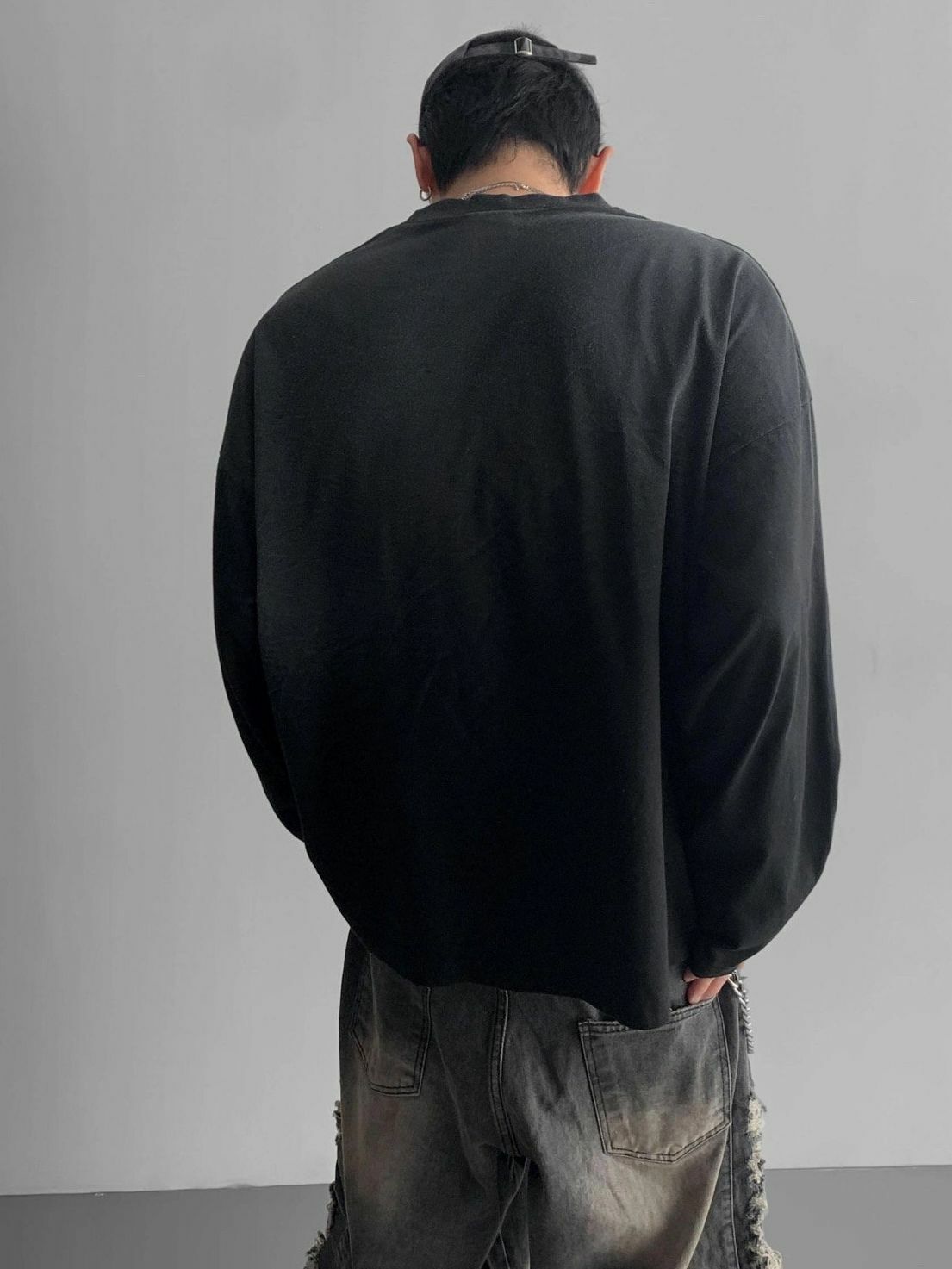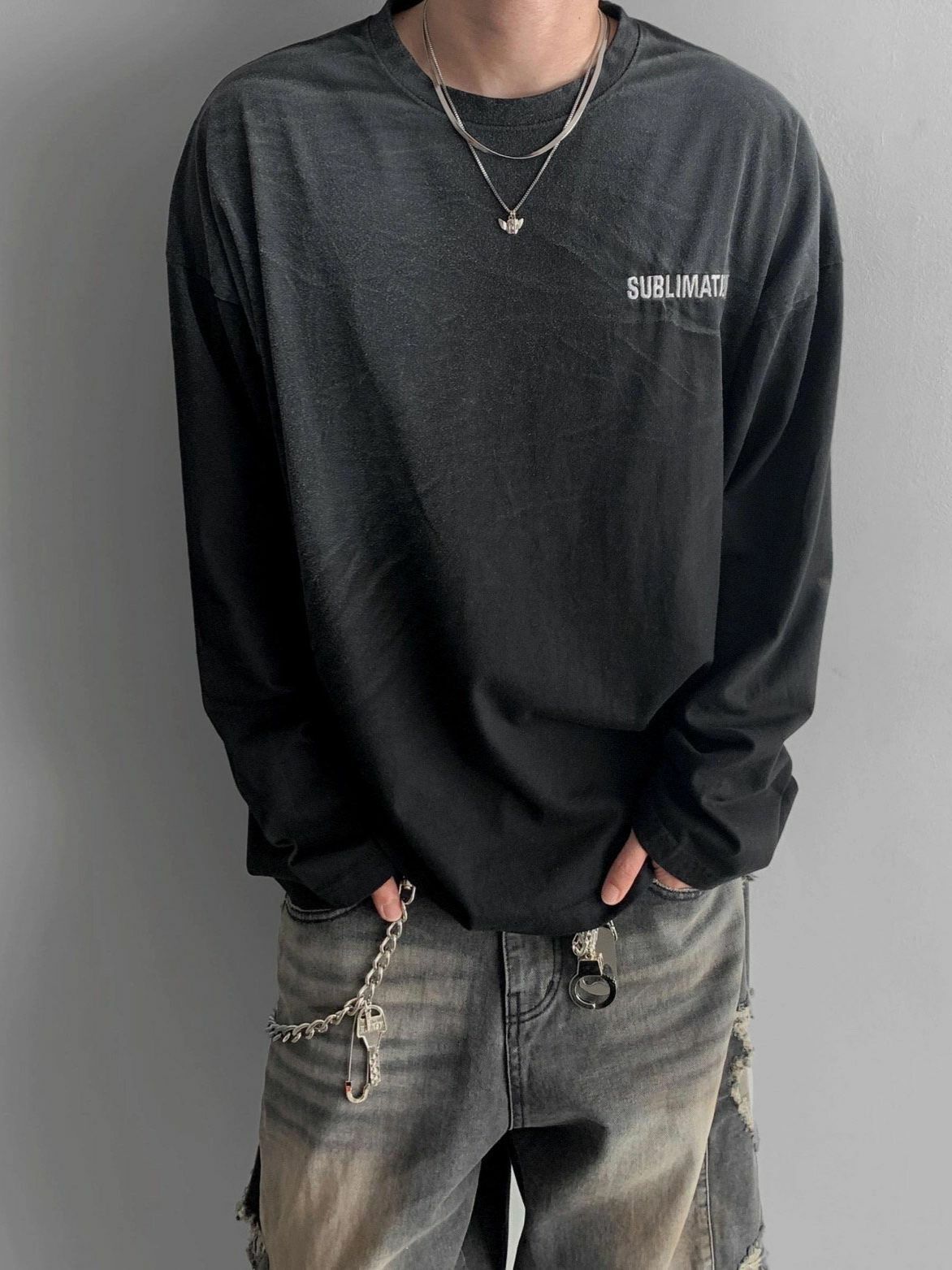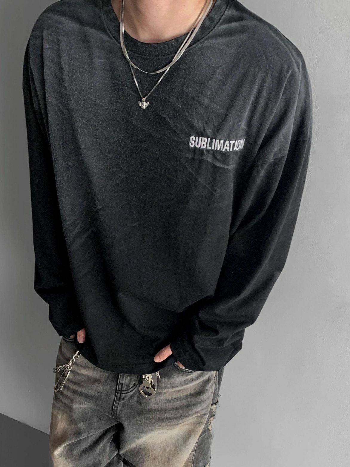 仿污英文字長袖衫 SUB-011T