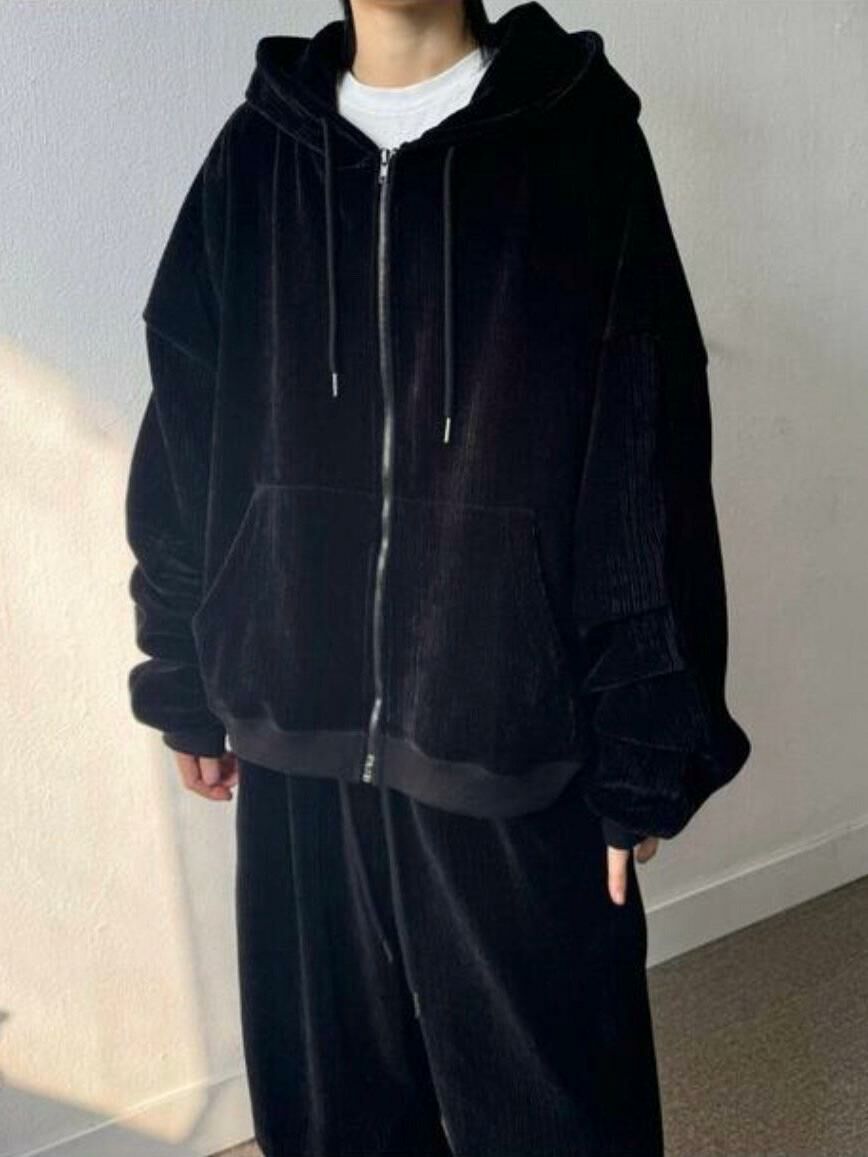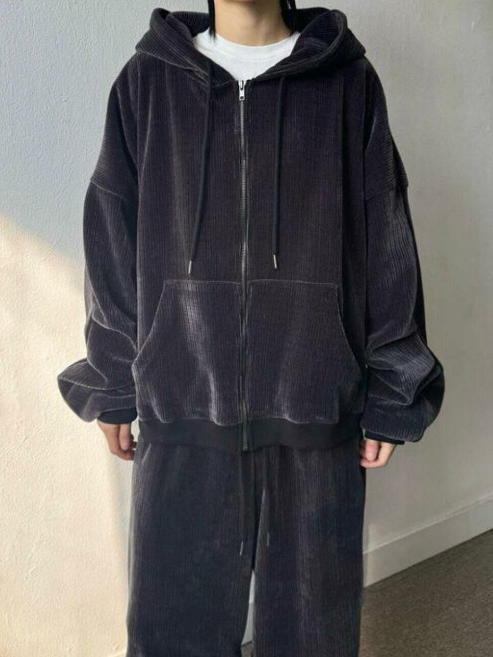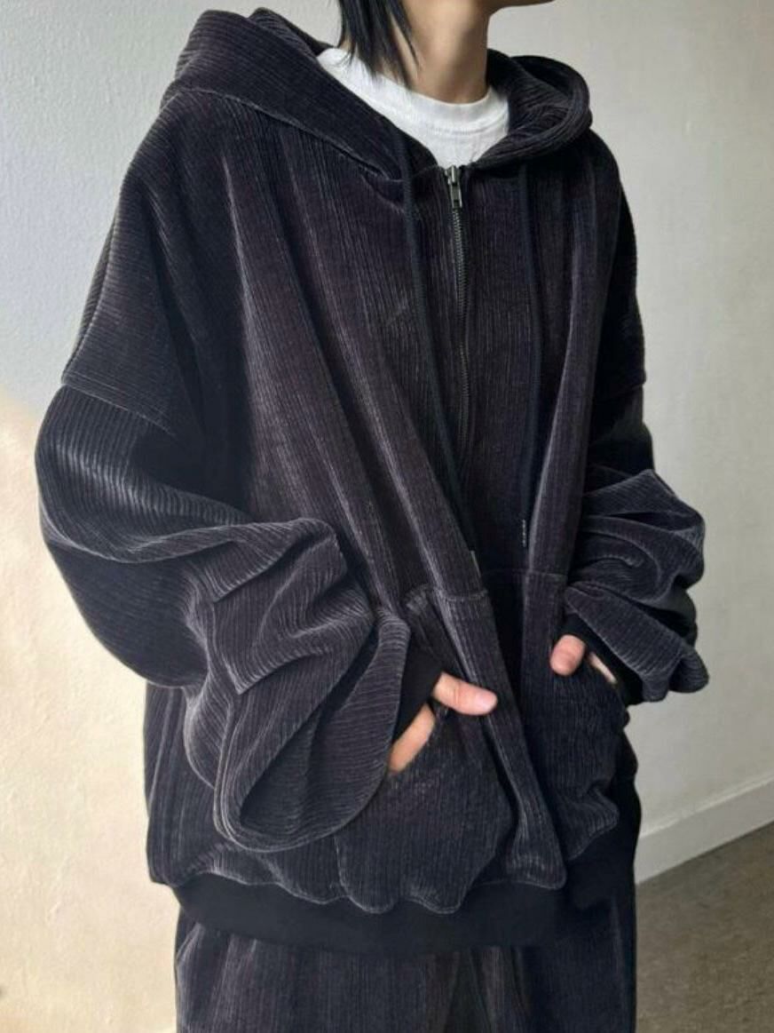 暗直紋連帽拉鍊外套 SUB-026JK