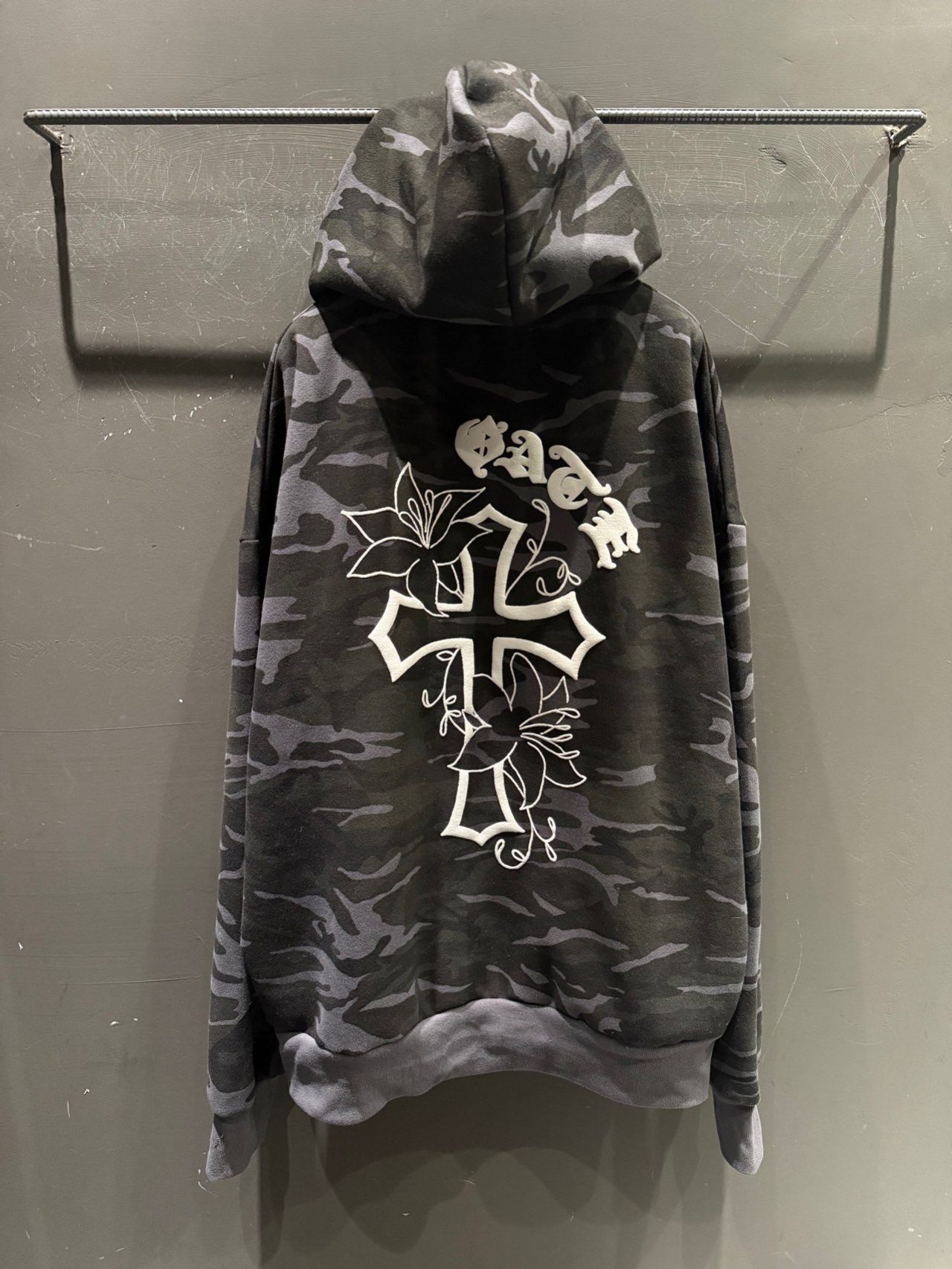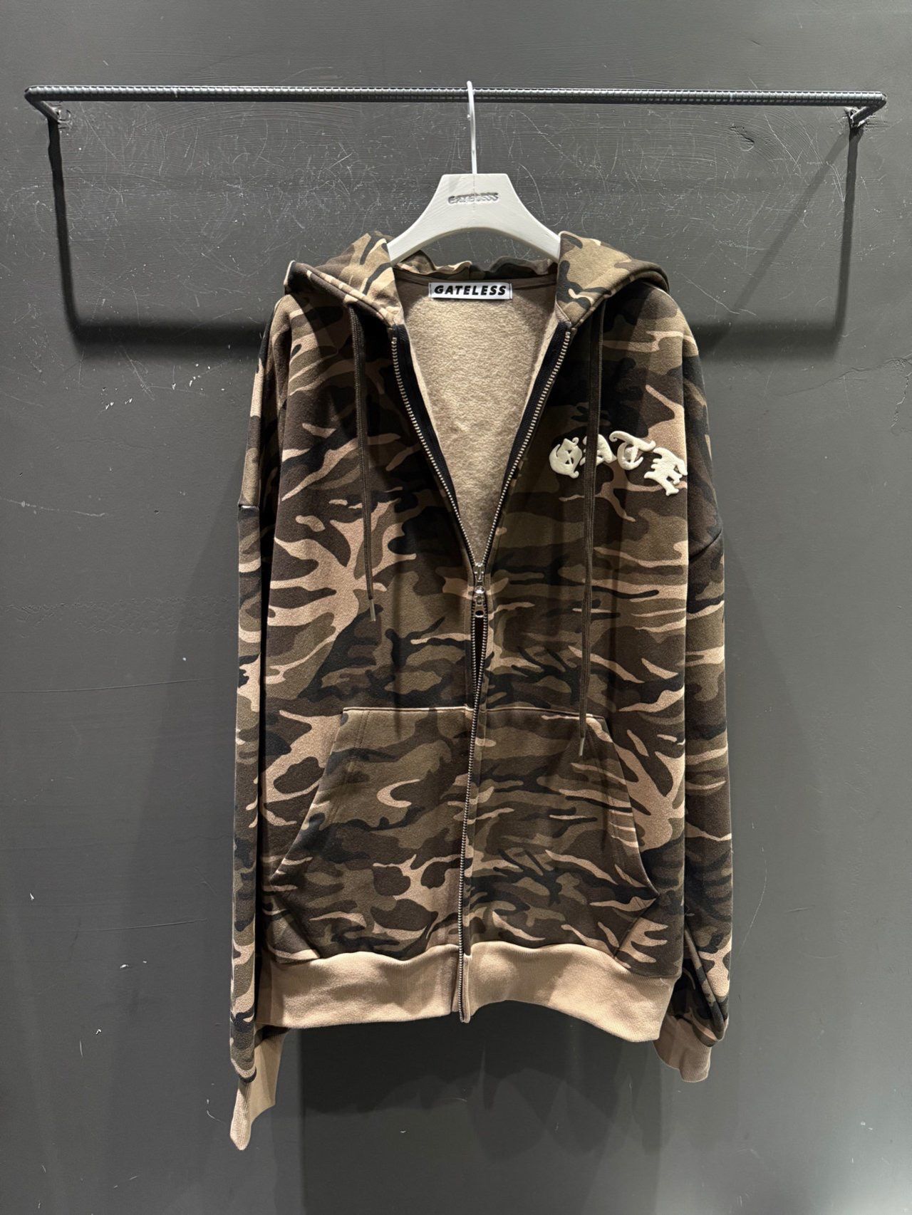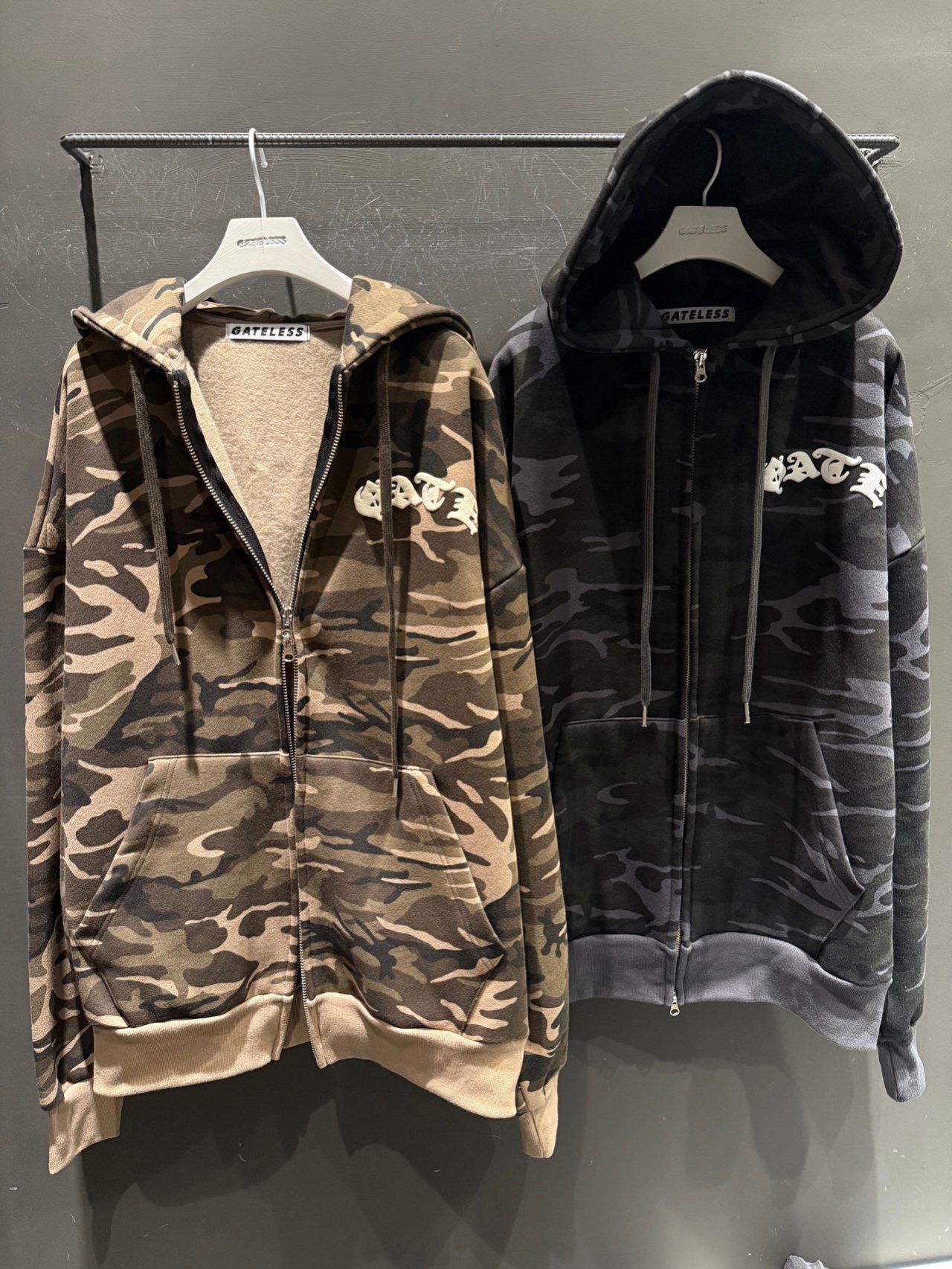 迷彩英文字連帽拉鍊外套(薄抓毛底) SUB-044JK