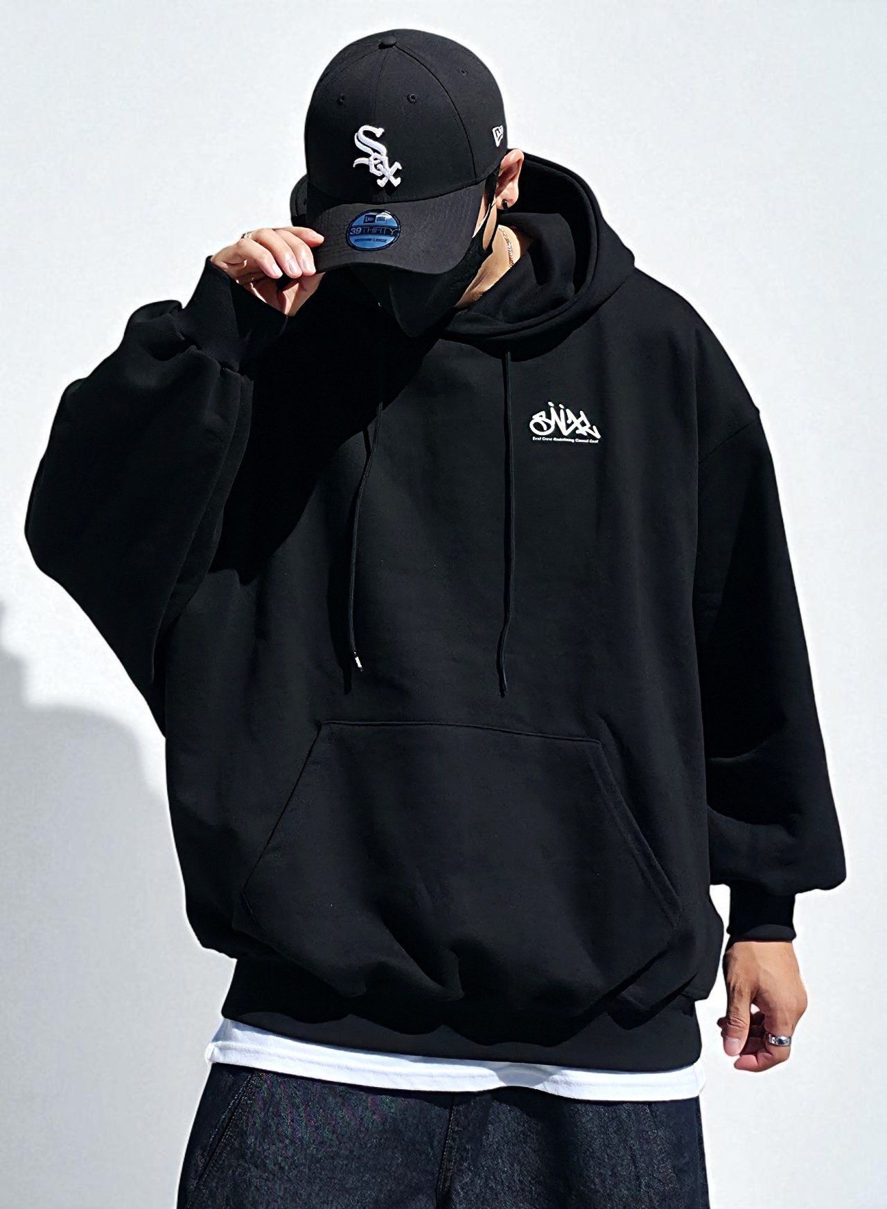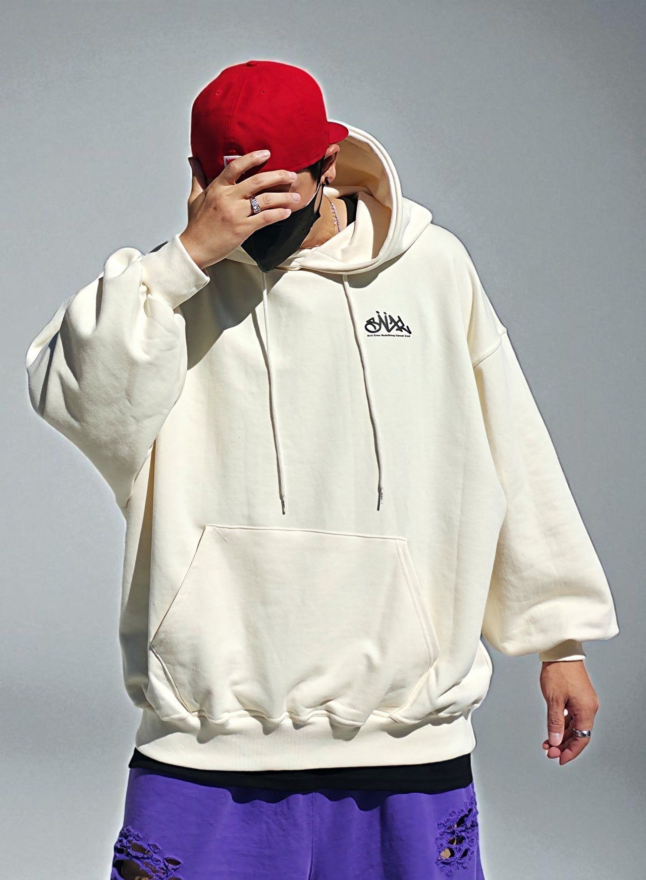 OverSize英文字圖案連帽衛衣 SVXL-083T