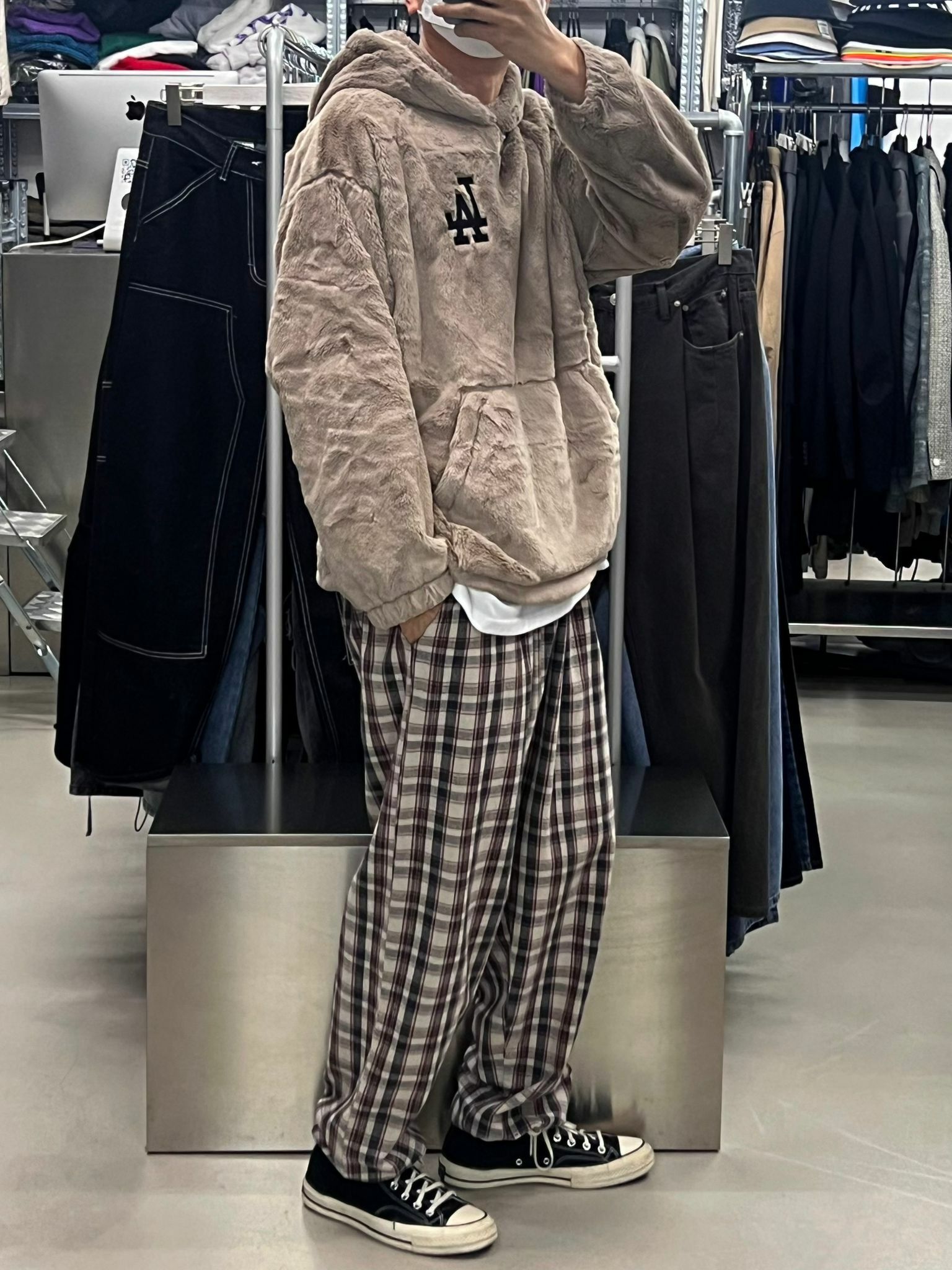 LA字連帽毛毛衛衣 T3388