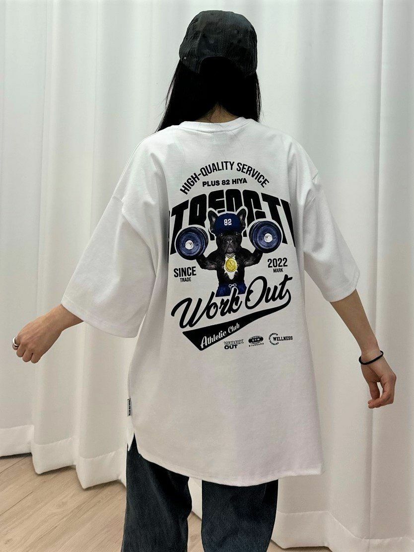 舉重狗圖案短袖Tee T4914