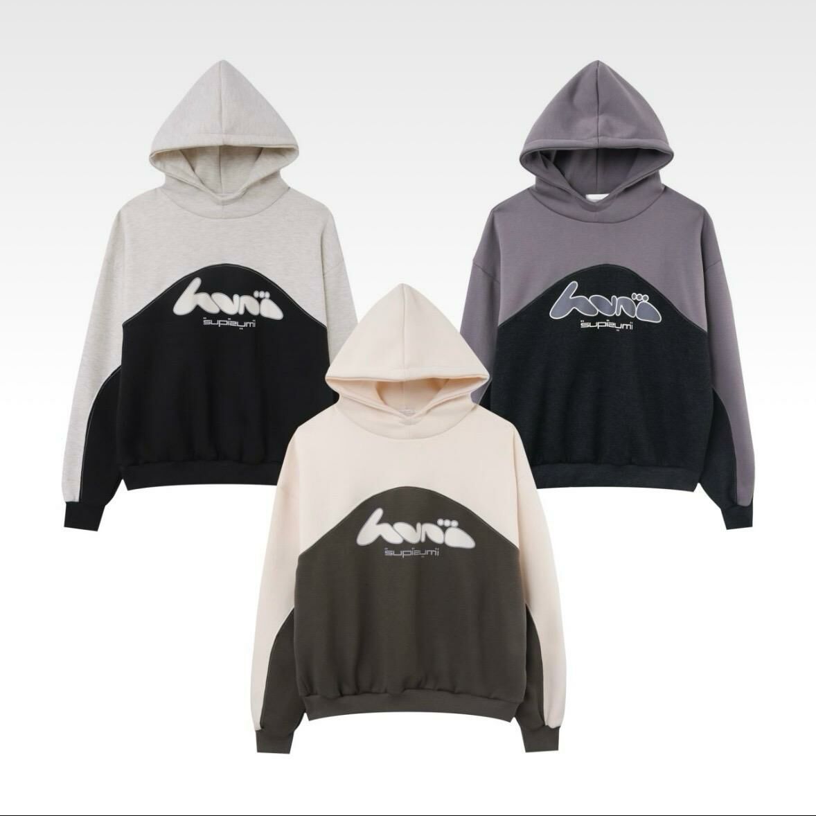 拼色英文字圖案連帽衛衣(薄抓毛底) T5289