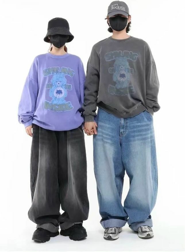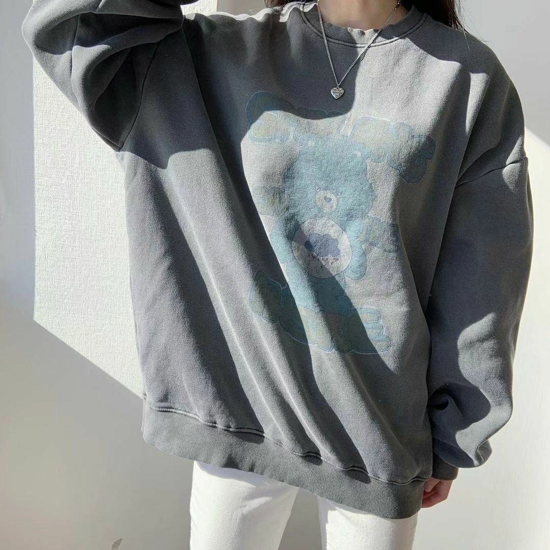 洗水熊仔英文字衛衣(薄抓毛底) T5290