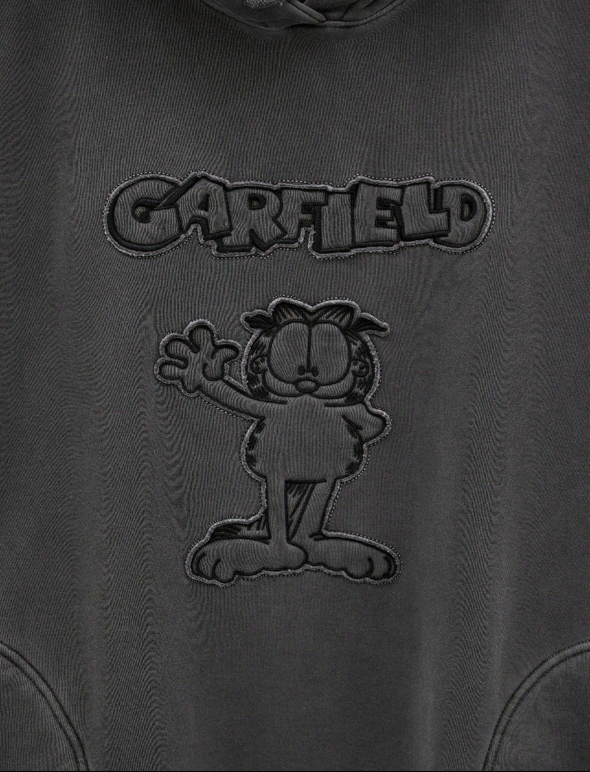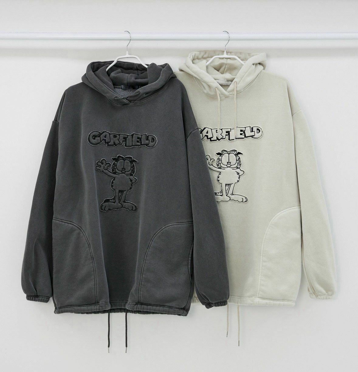 洗水加菲貓圖案連帽衛衣(薄抓毛底) T5291