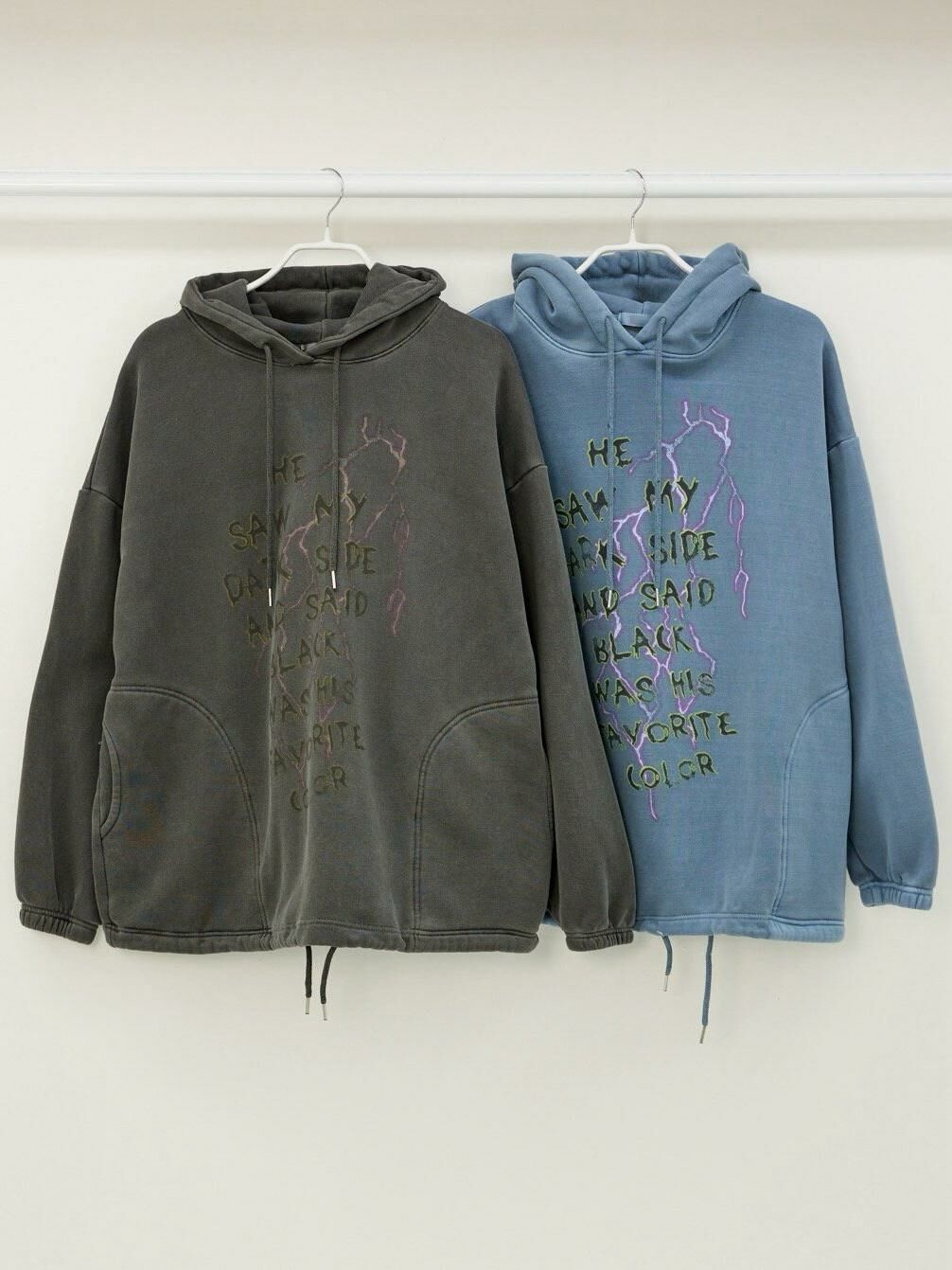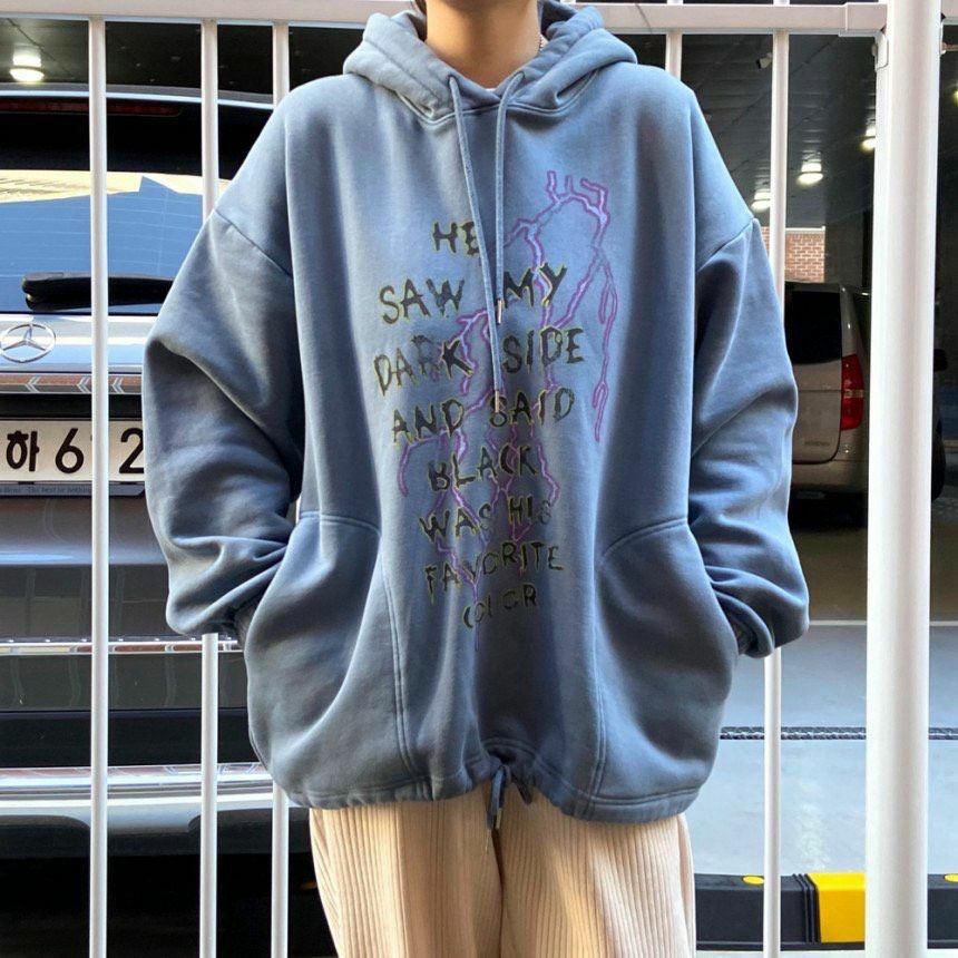 洗水英文字閃電連帽衛衣(薄抓毛底) T5292