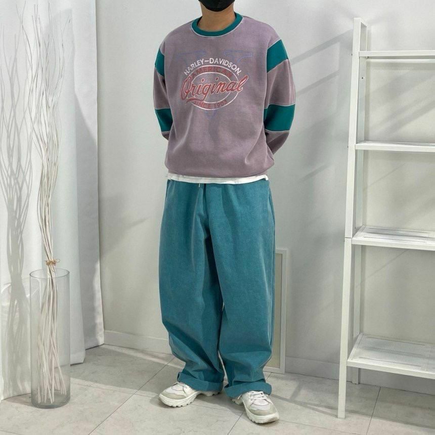 洗水拼色英文字衛衣(薄抓毛底) T5293