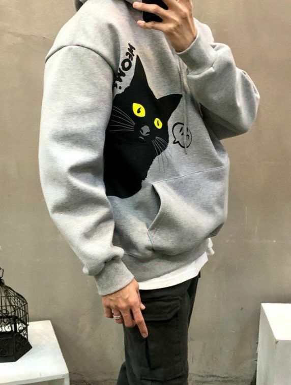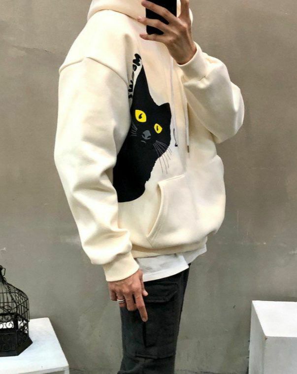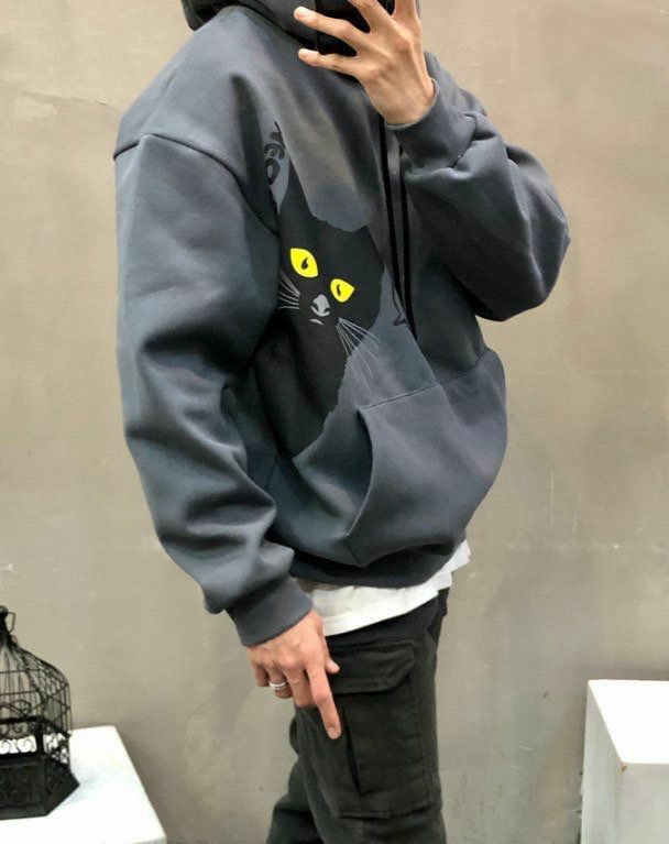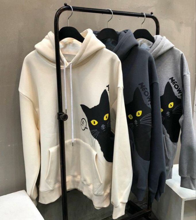 黑貓圖案連帽衛衣(薄抓毛底) T5300