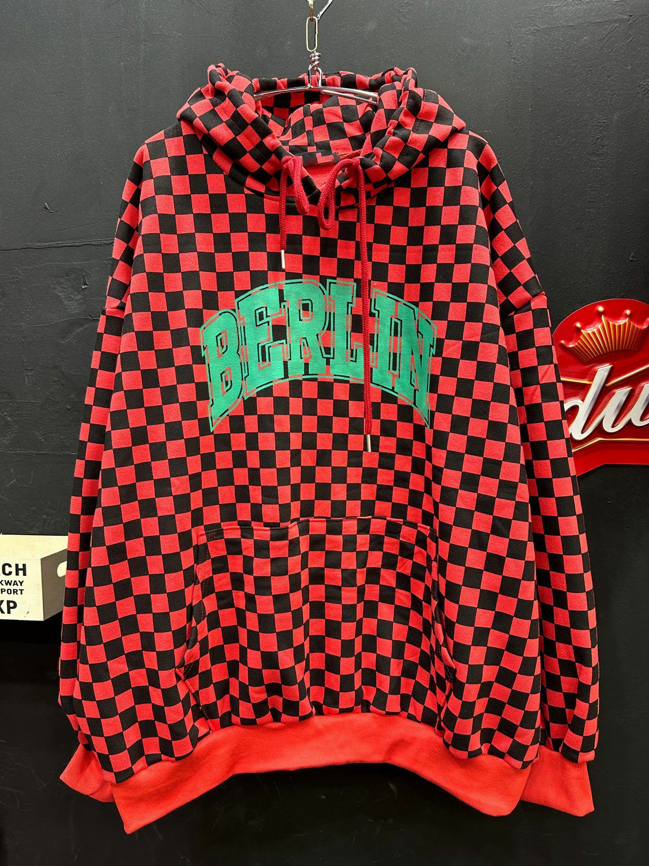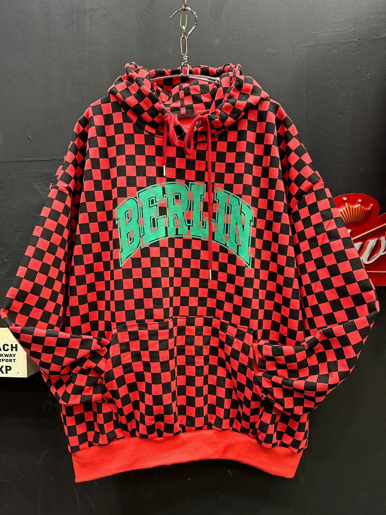 格仔英文字連帽衛衣(薄抓毛底) T5311