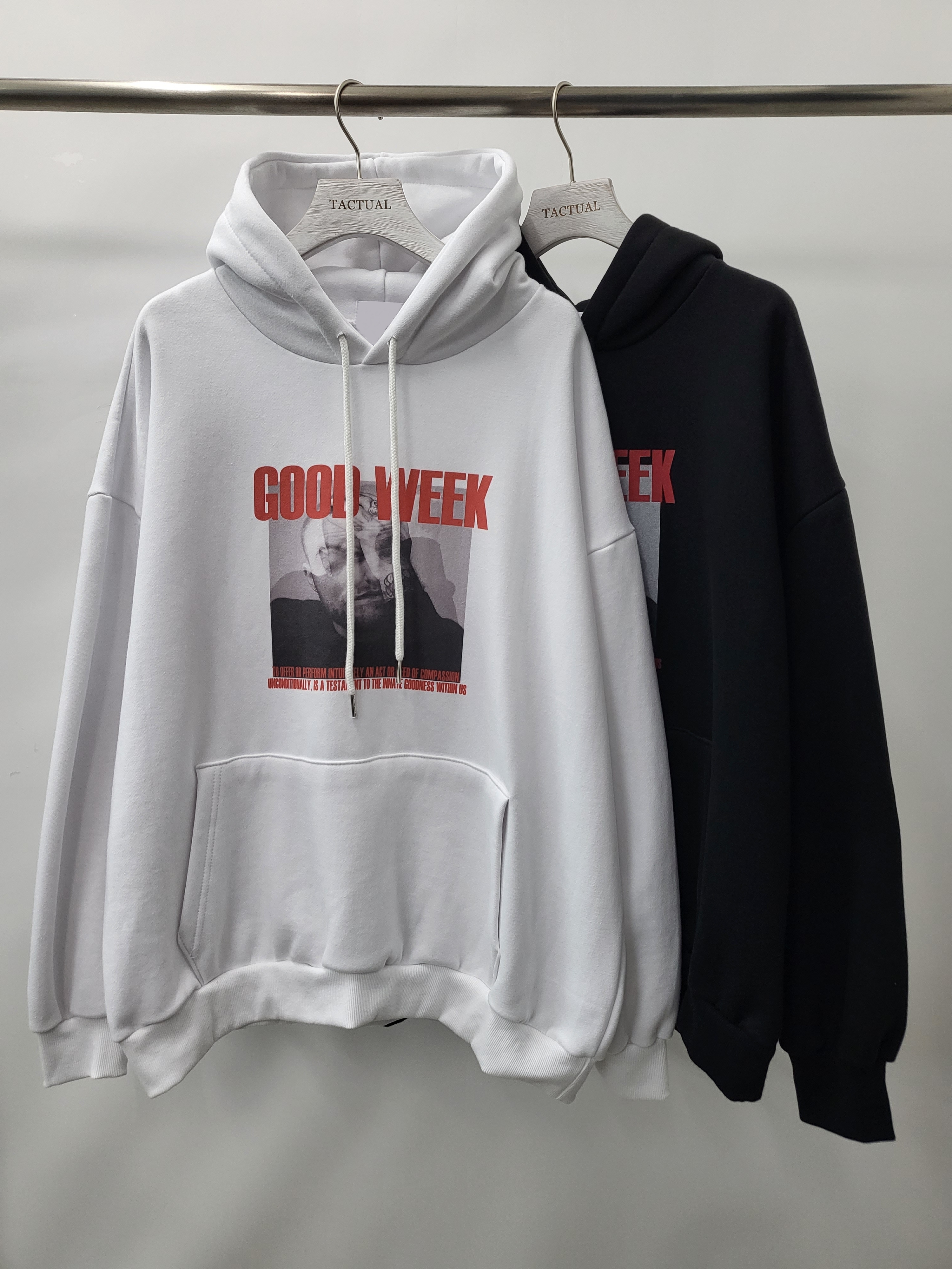 英文字圖案連帽衛衣(薄抓毛底) T5318