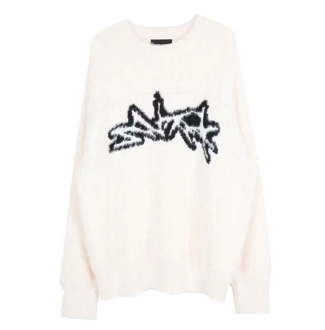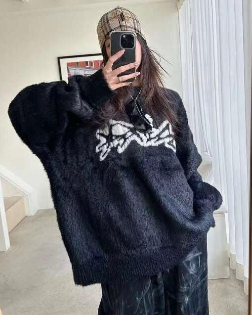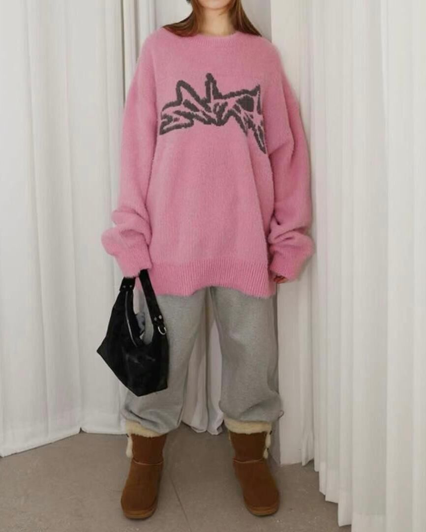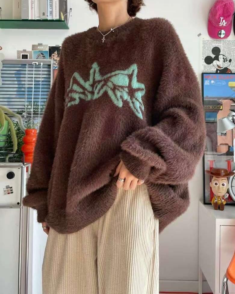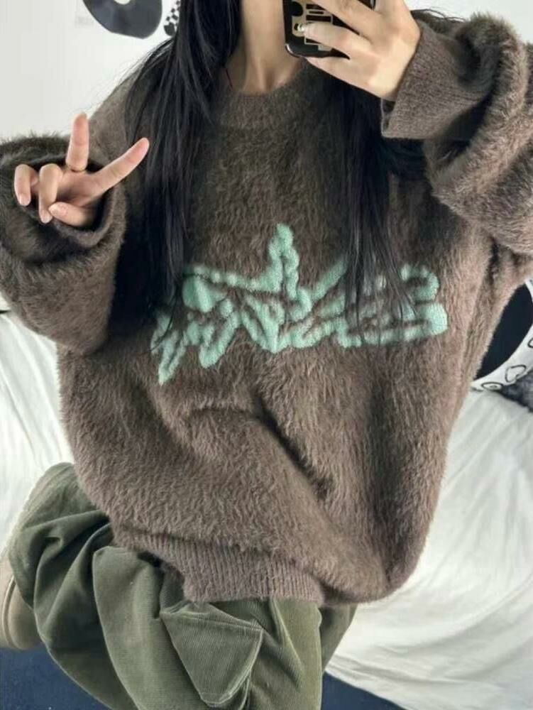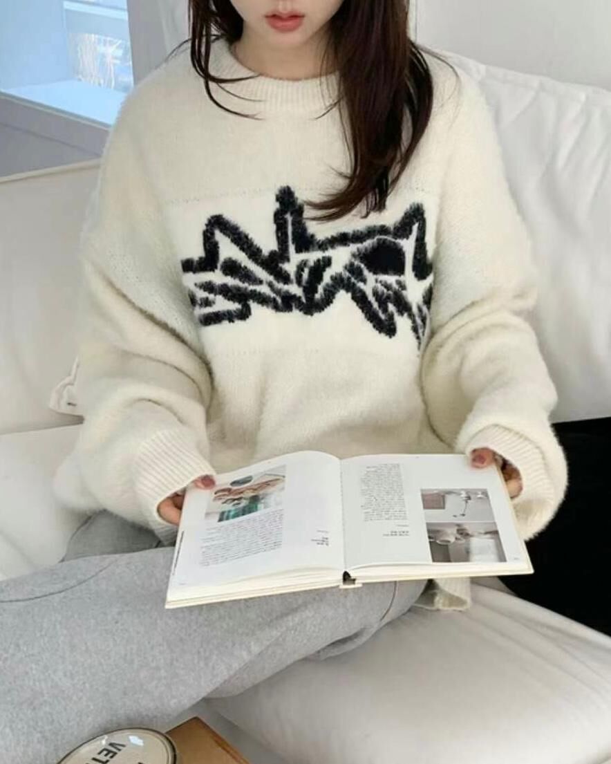 圓領圖案毛毛針織衫 T5322
