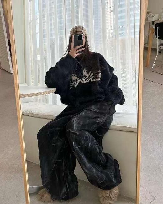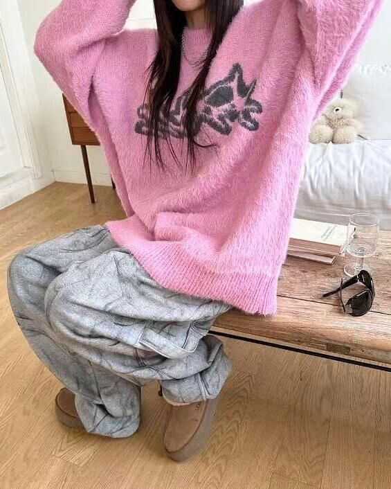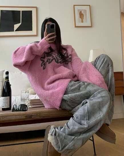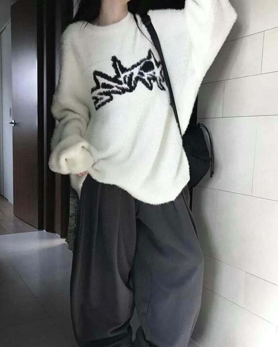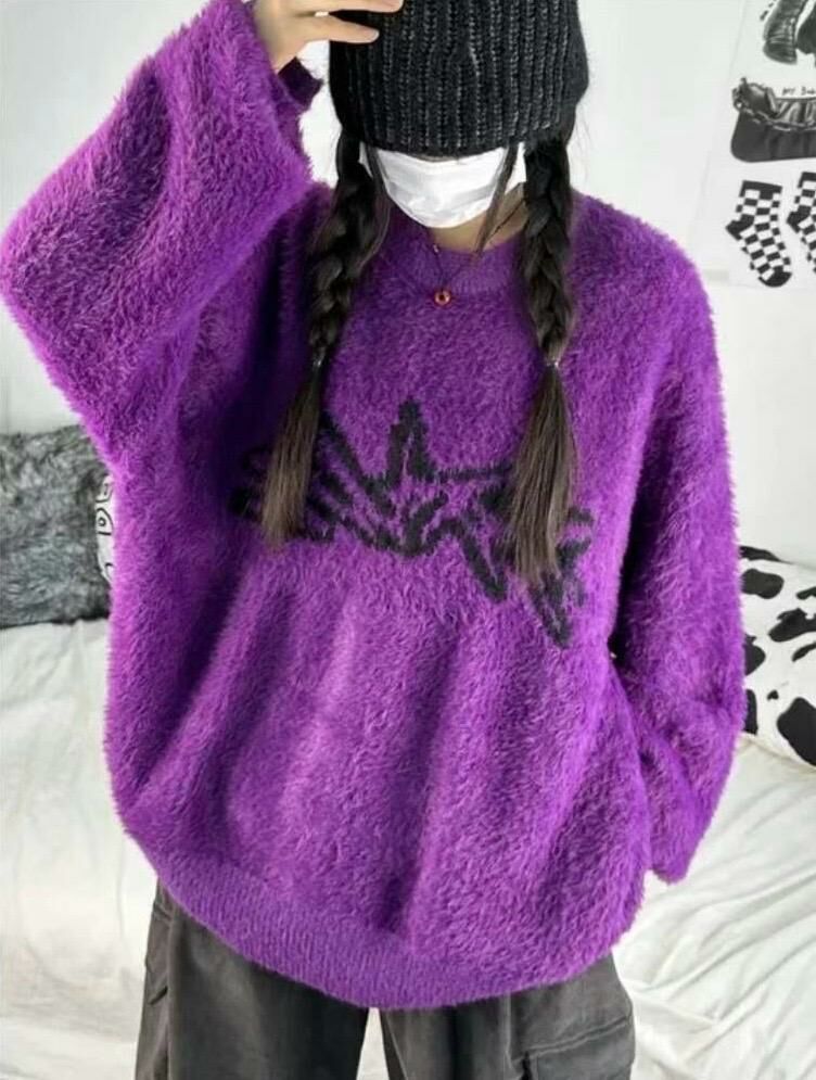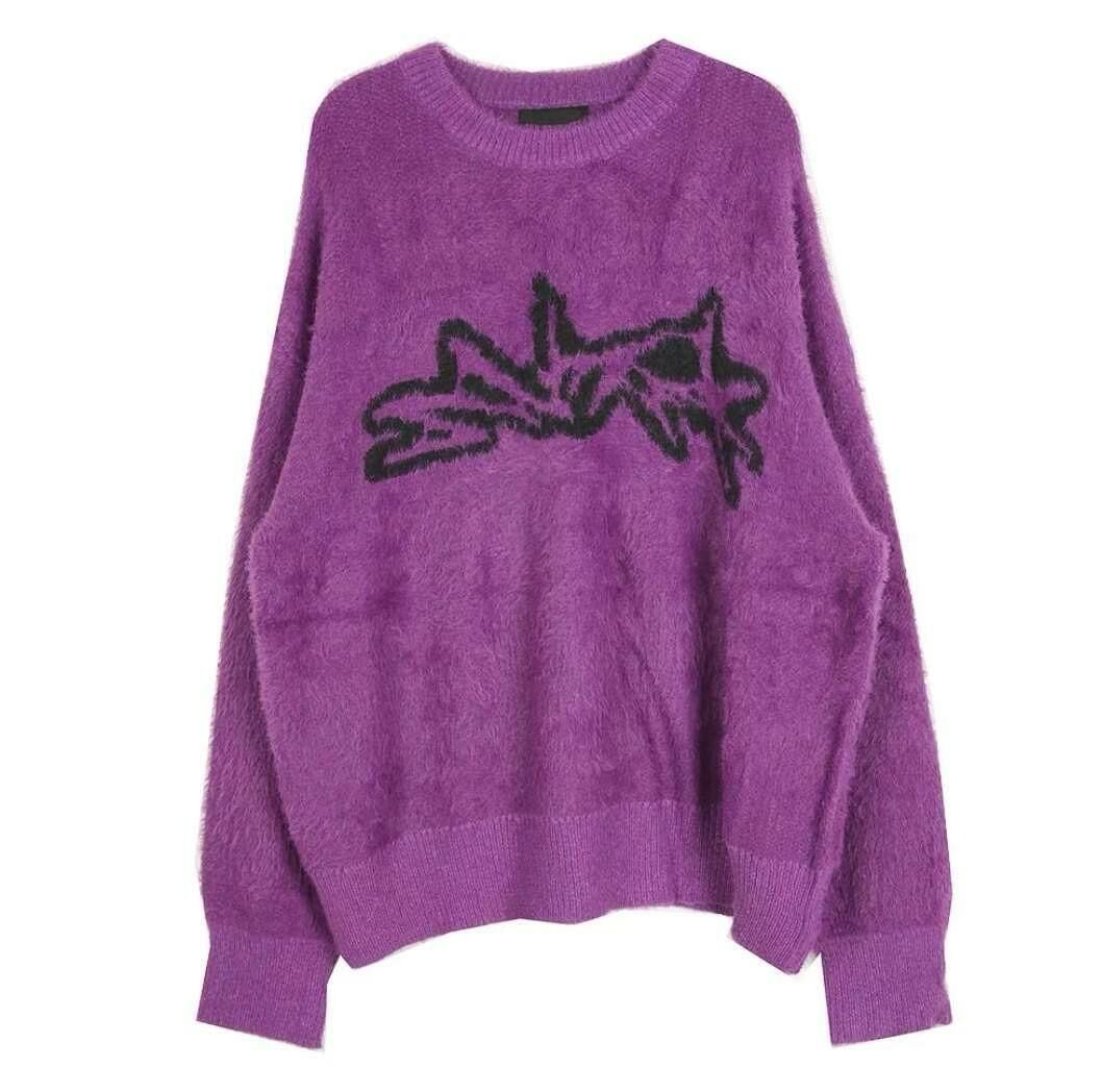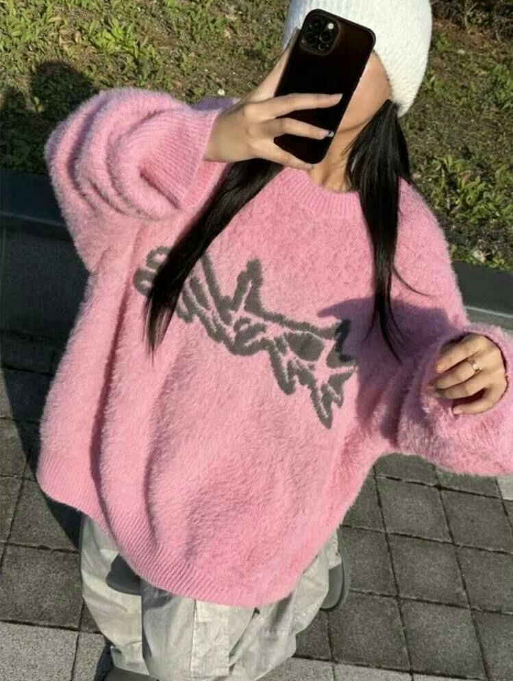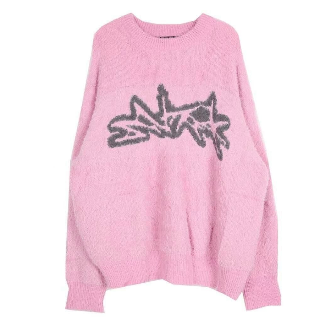 圓領圖案毛毛針織衫 T5322