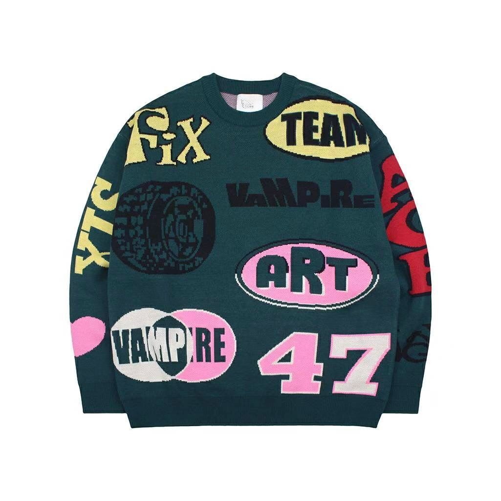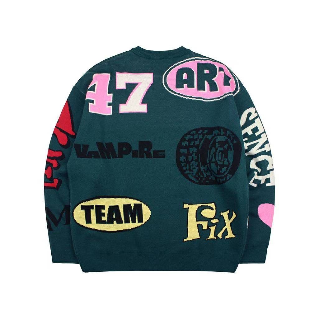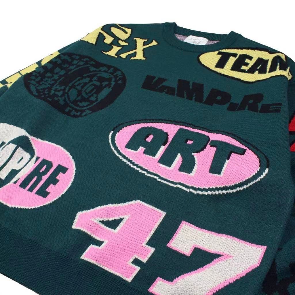 圓領英文字針織衫 T5805