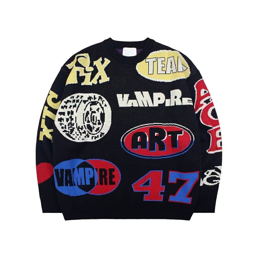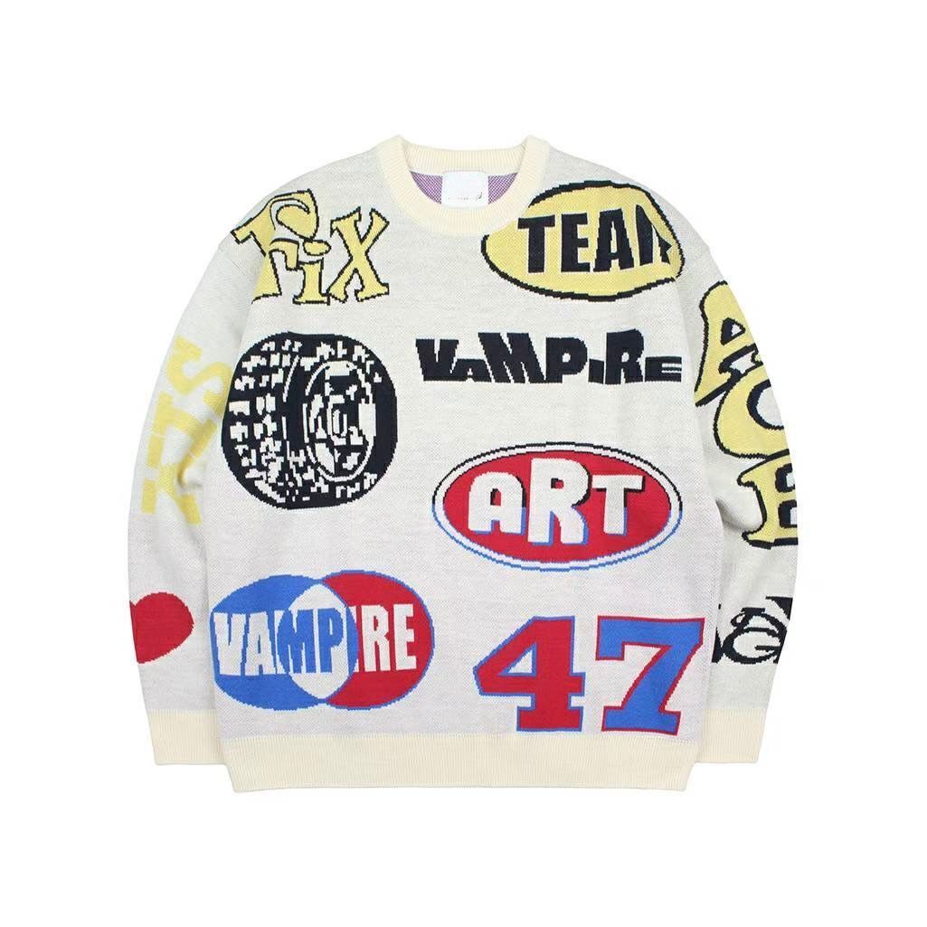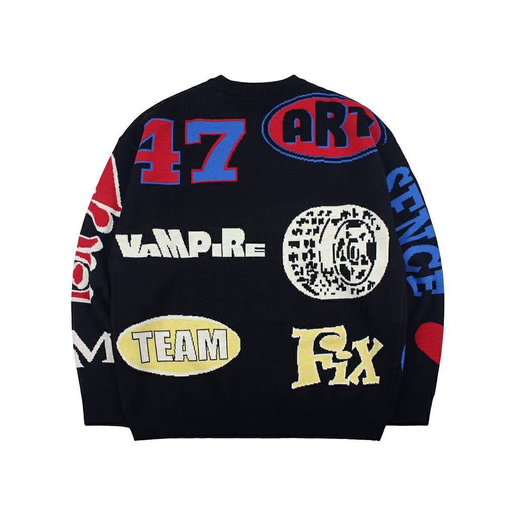 圓領英文字針織衫 T5805