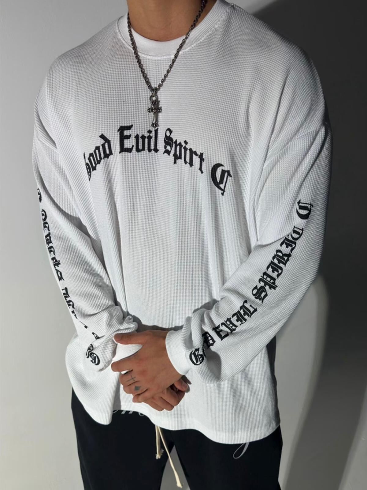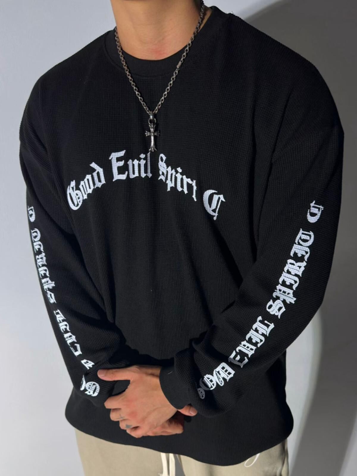 OverSize暗紋英文字長袖衫 T5817