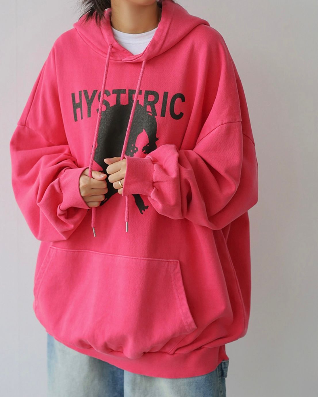 OverSize洗水英文字圖案連帽衛衣 T5843