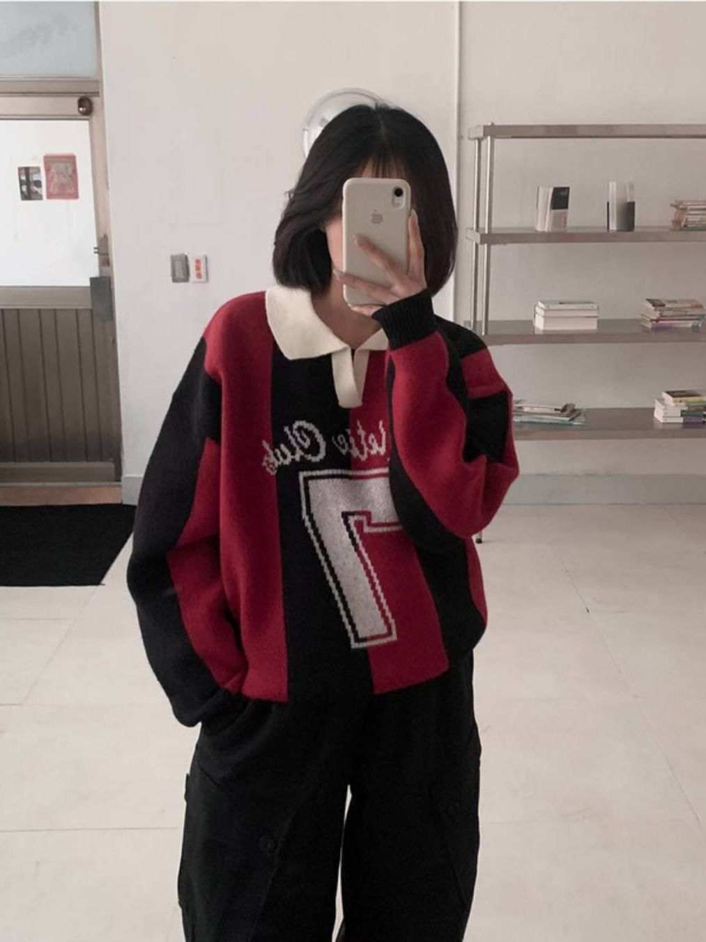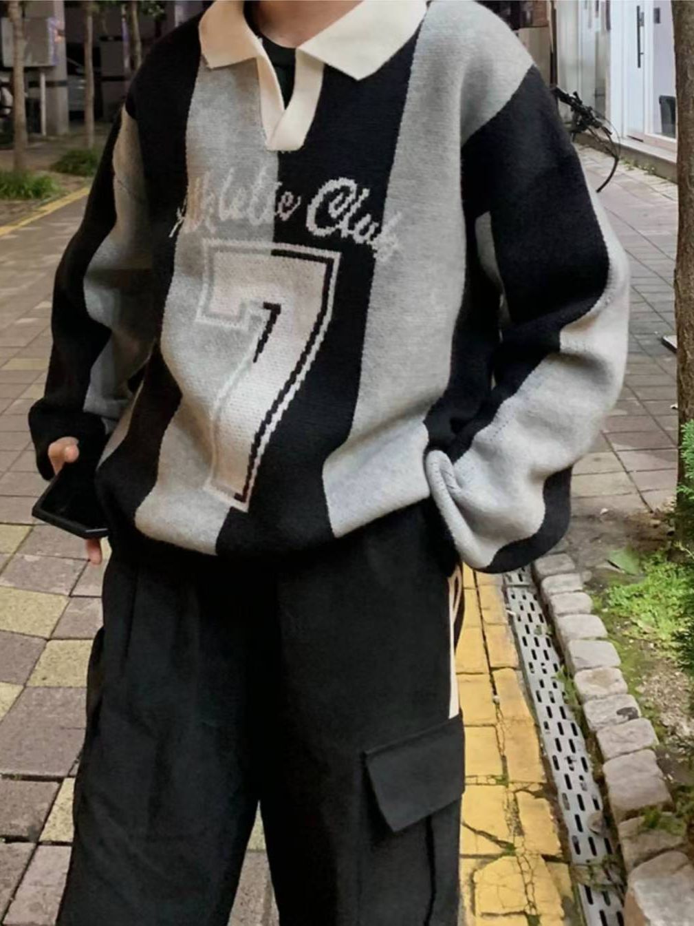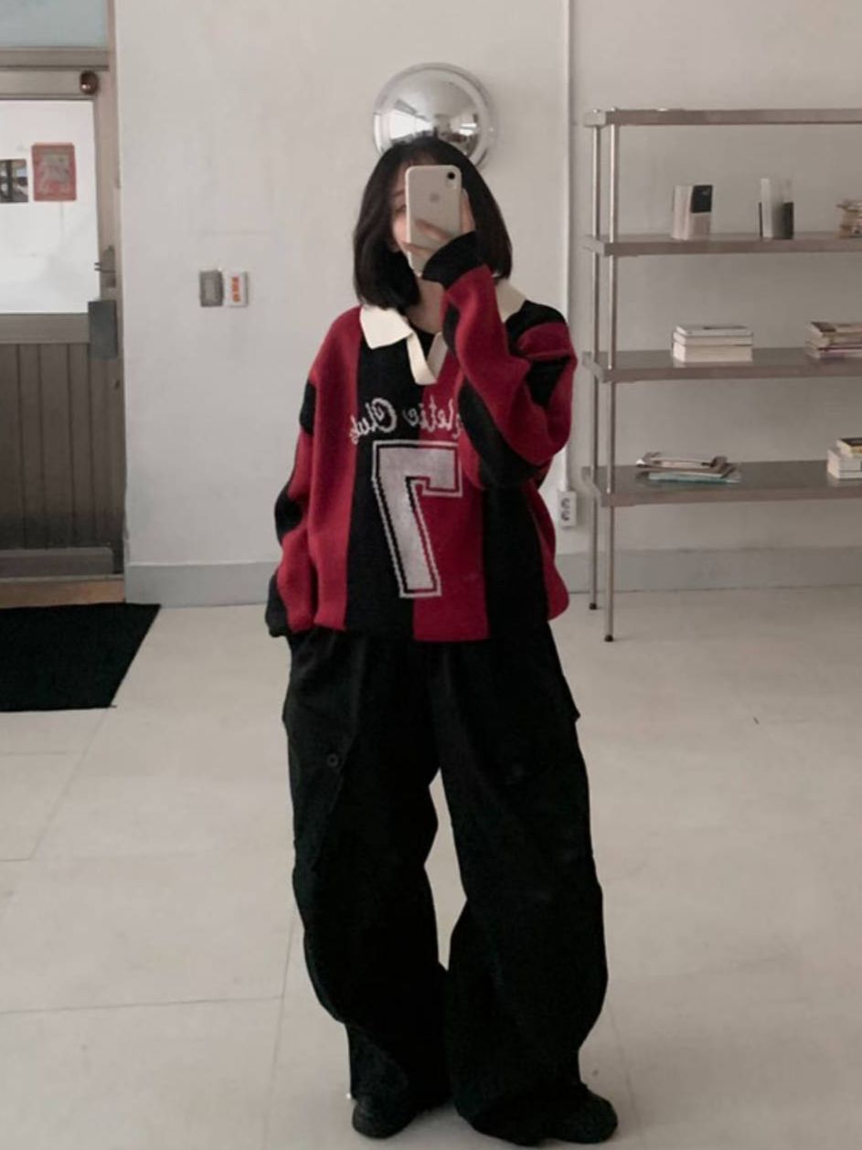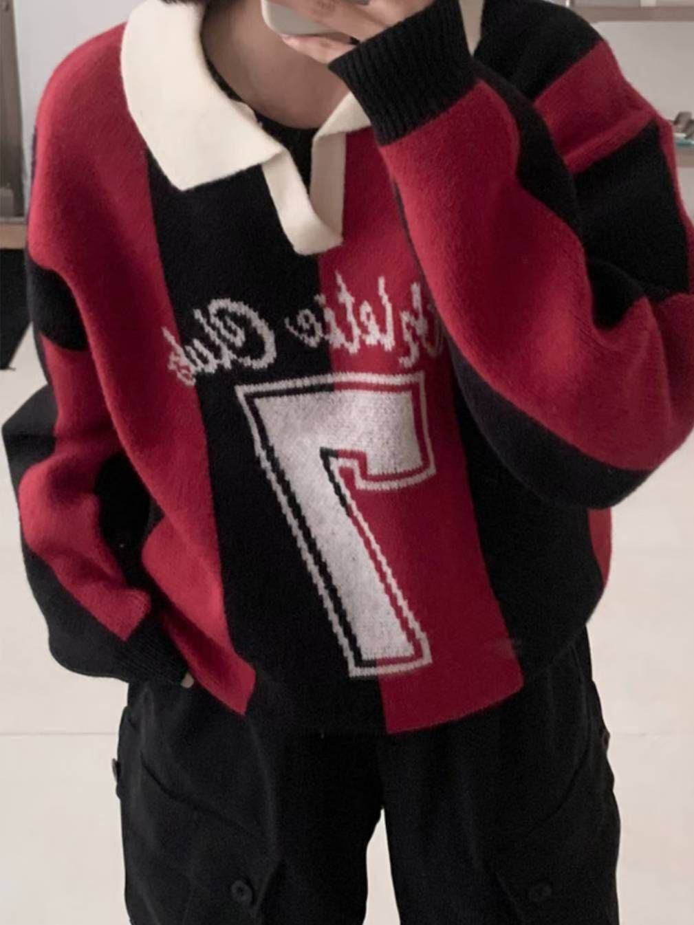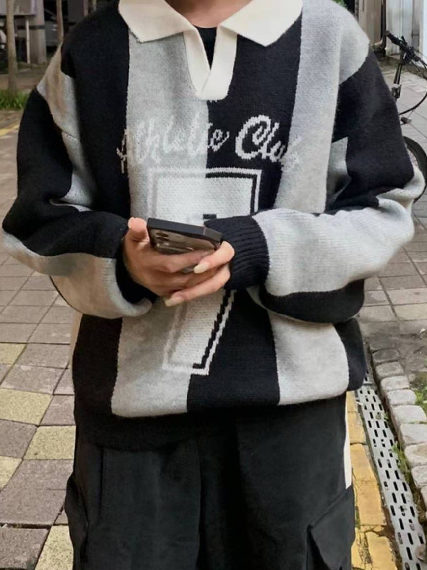 反領英文字針織衫 T5857