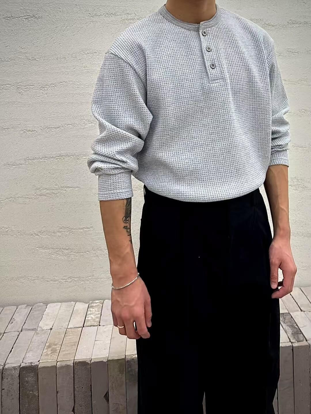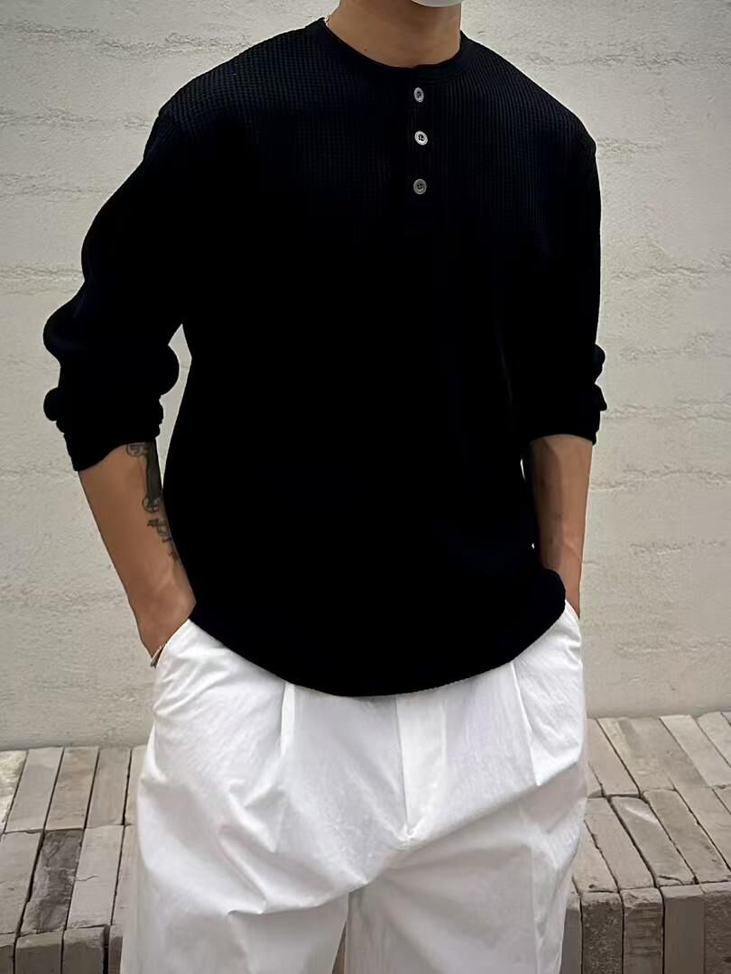 淨色半開胸長袖衫 T5870