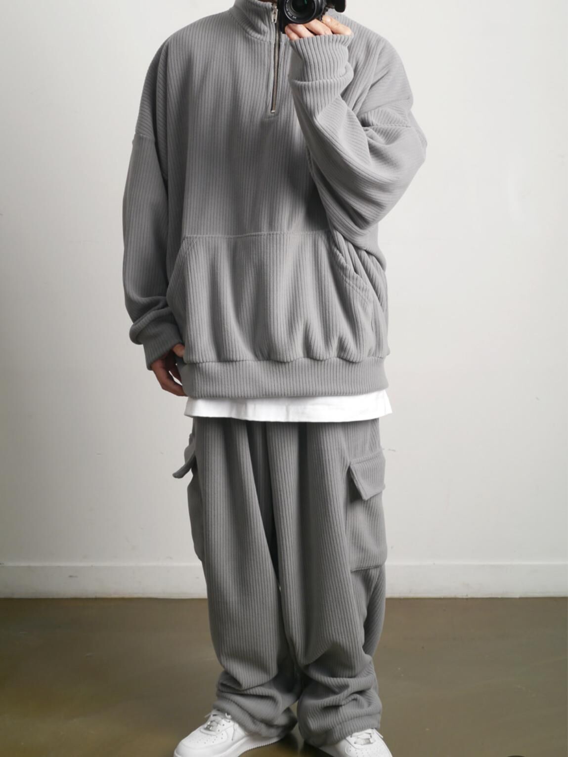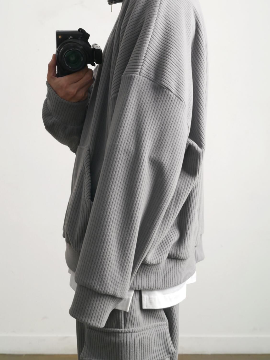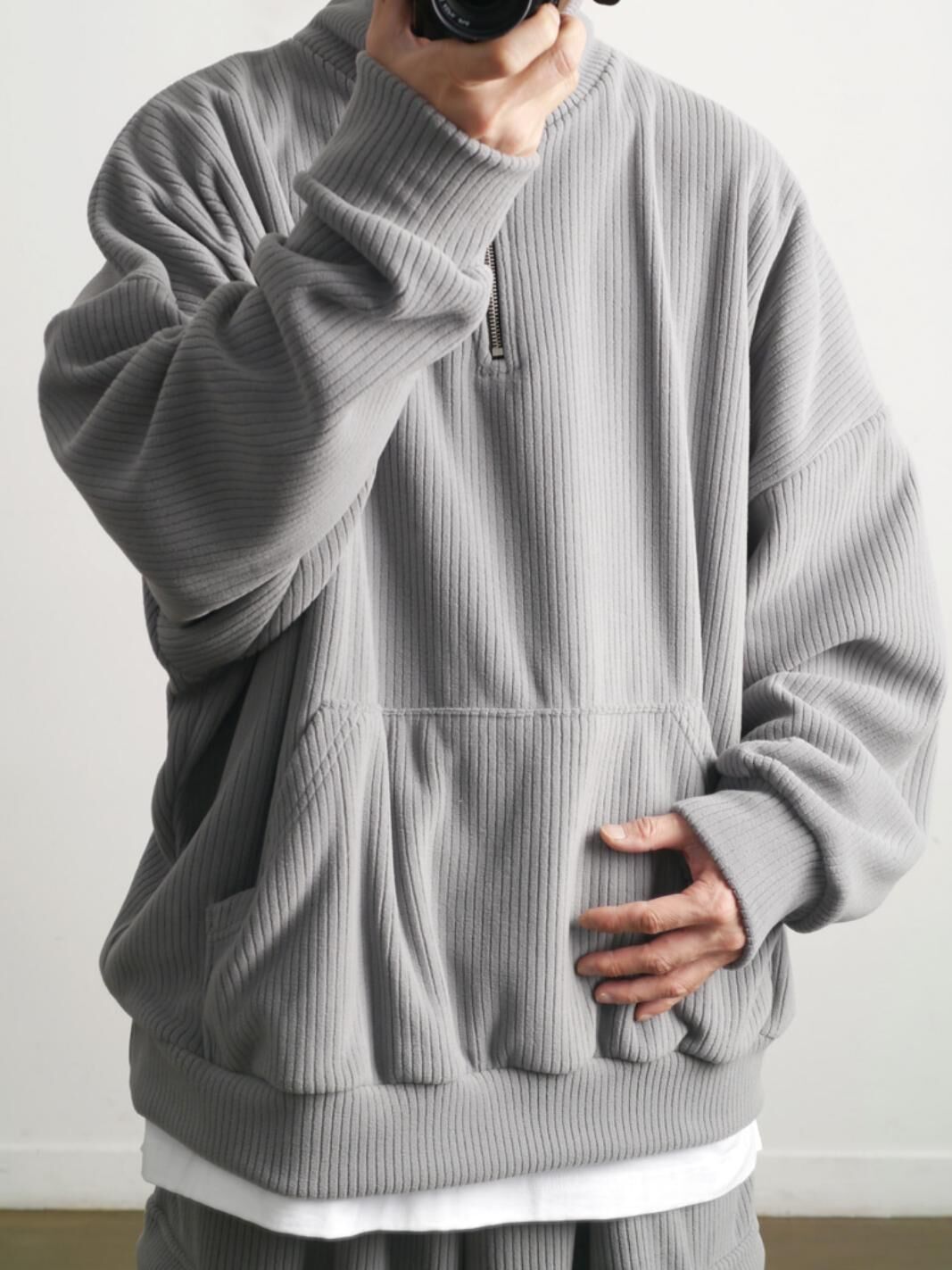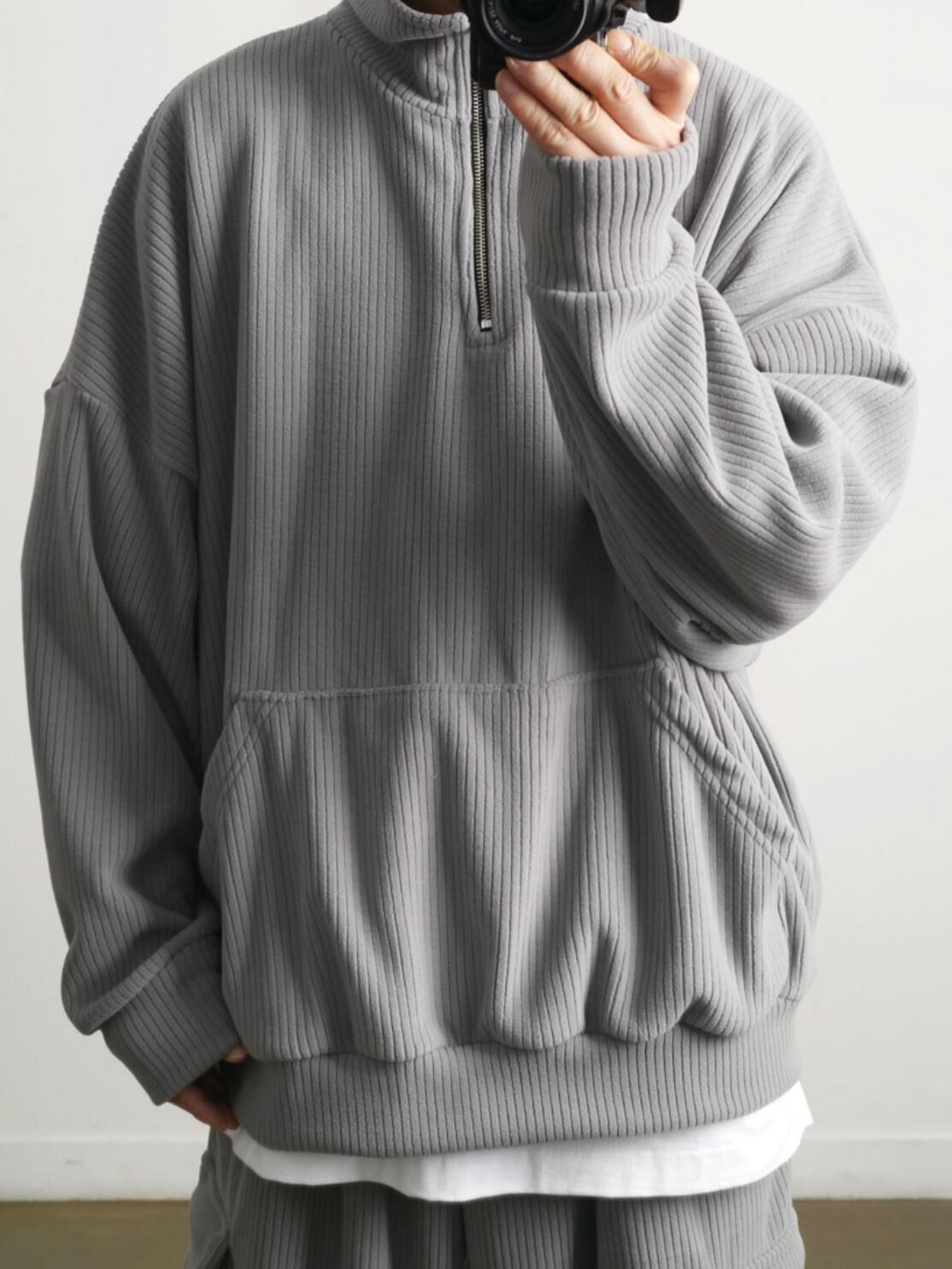 暗直紋半拉鍊高領衛衣(抓毛) T5898