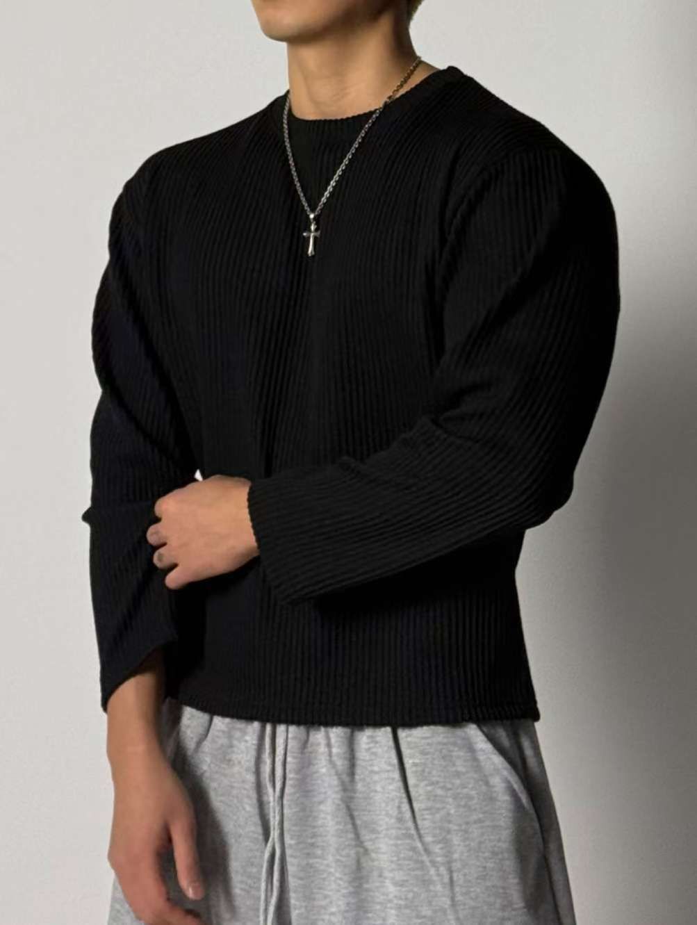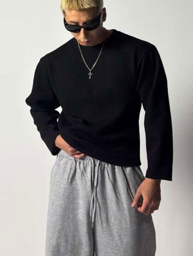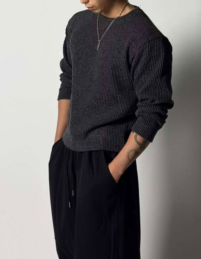 暗直紋針織長袖衫 T5916