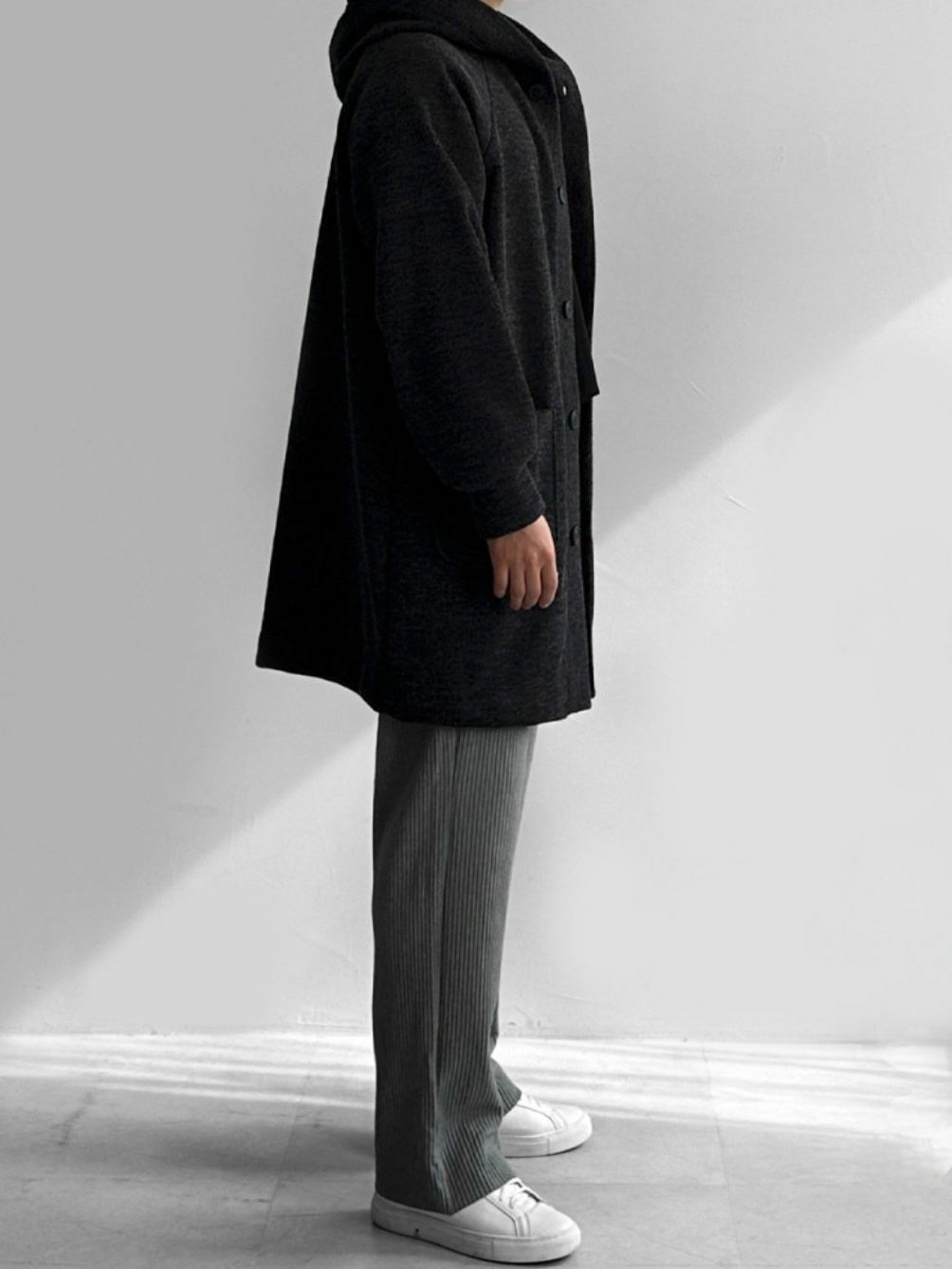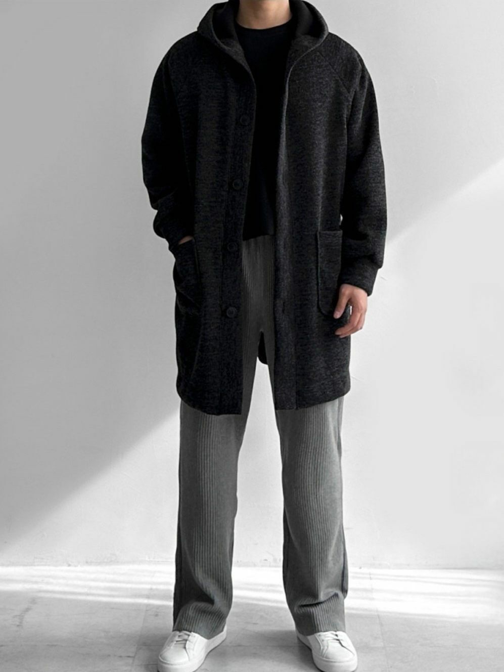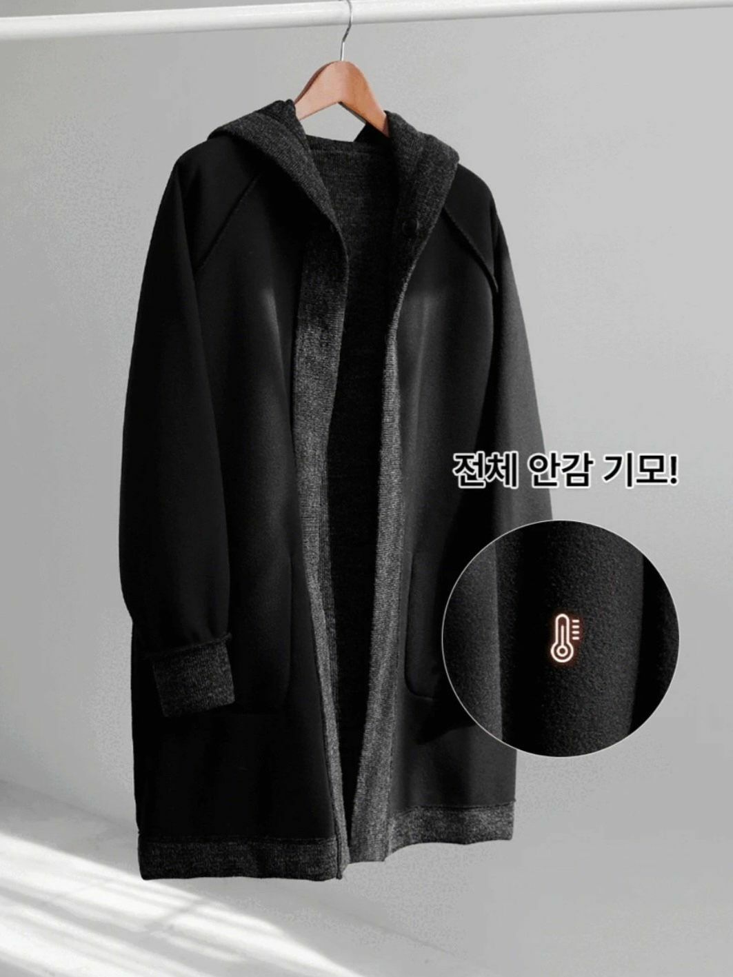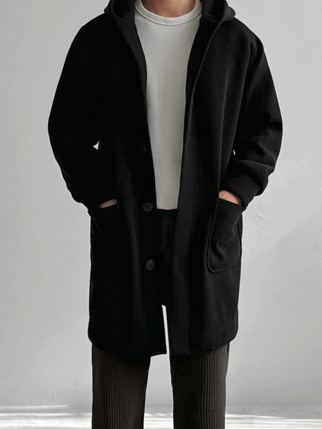 淨色連帽中長褸(薄抓毛底) TAC-0054JK