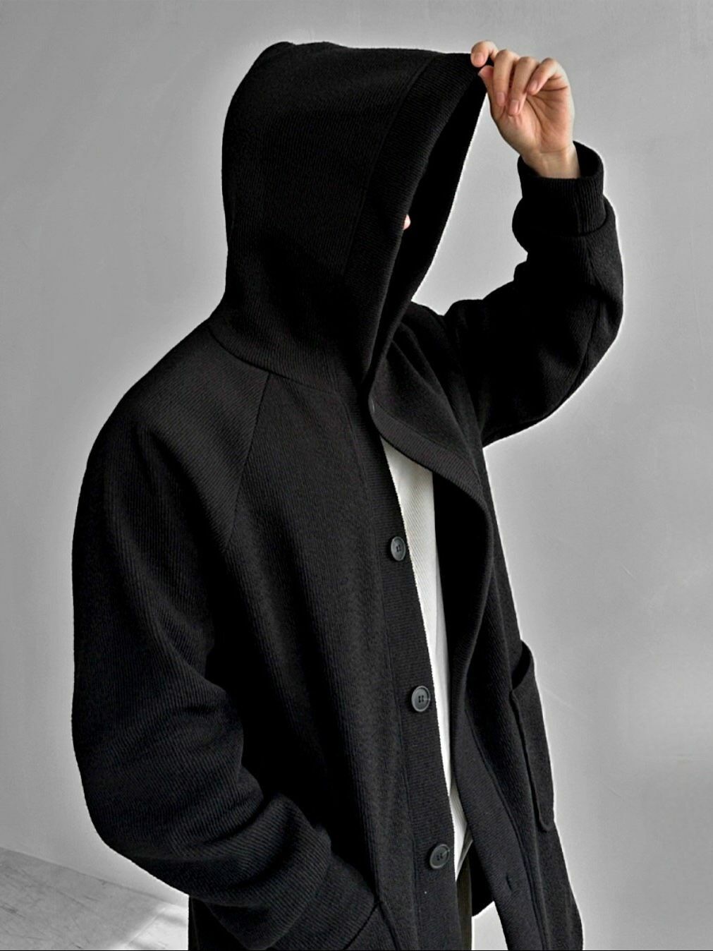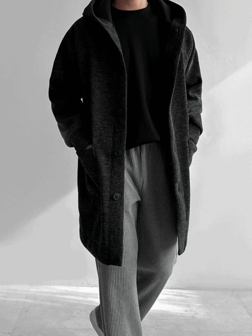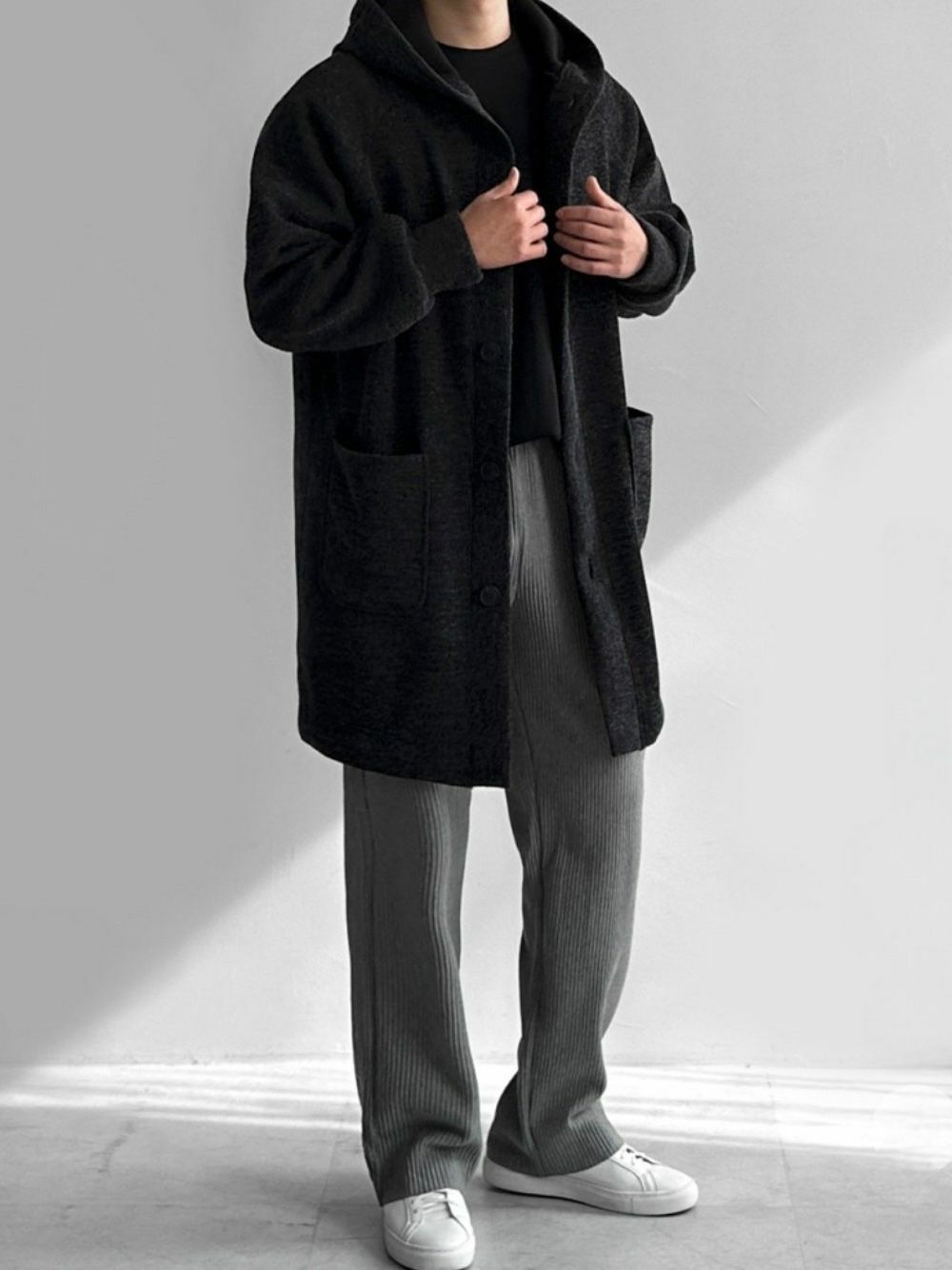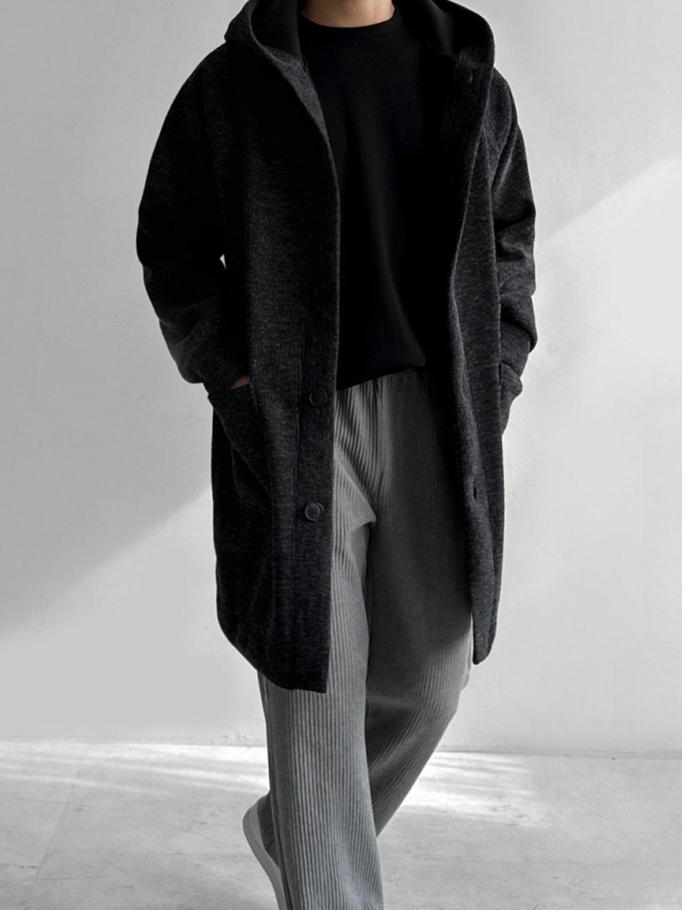 淨色連帽中長褸(薄抓毛底) TAC-0054JK