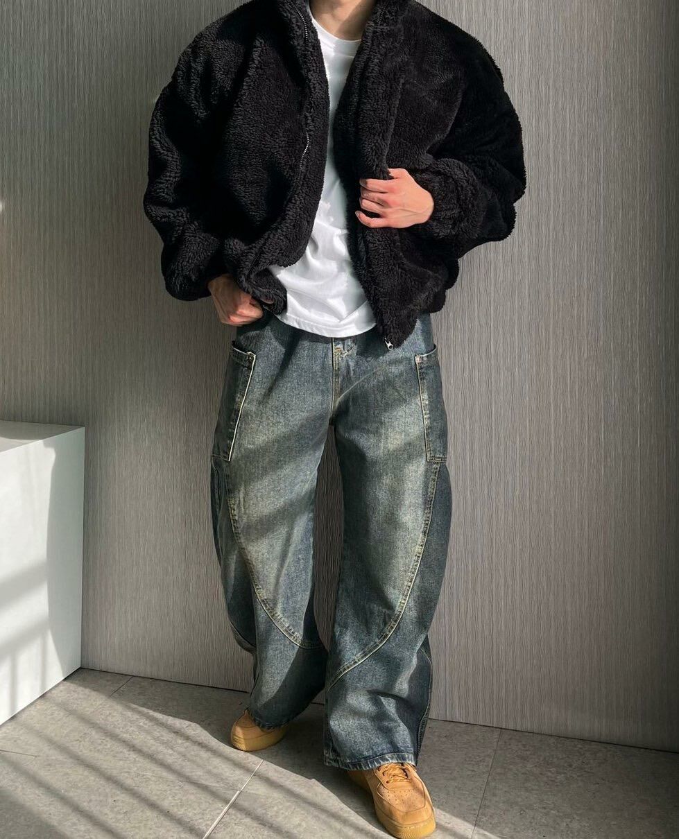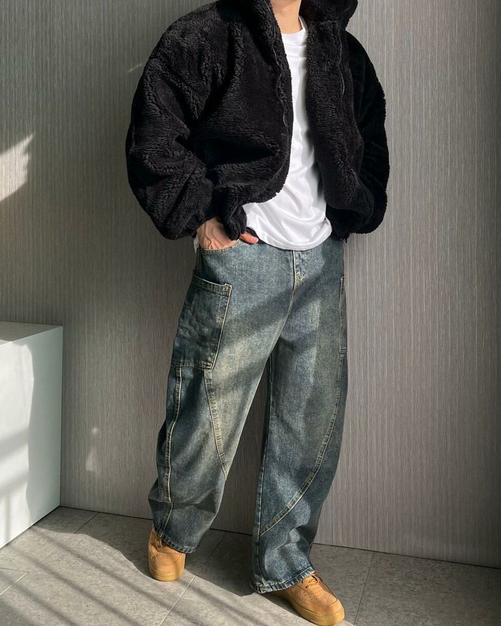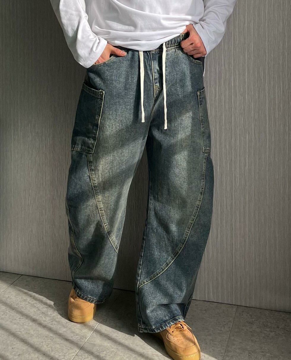 洗水工裝鬆身牛仔褲 TAC-0090J